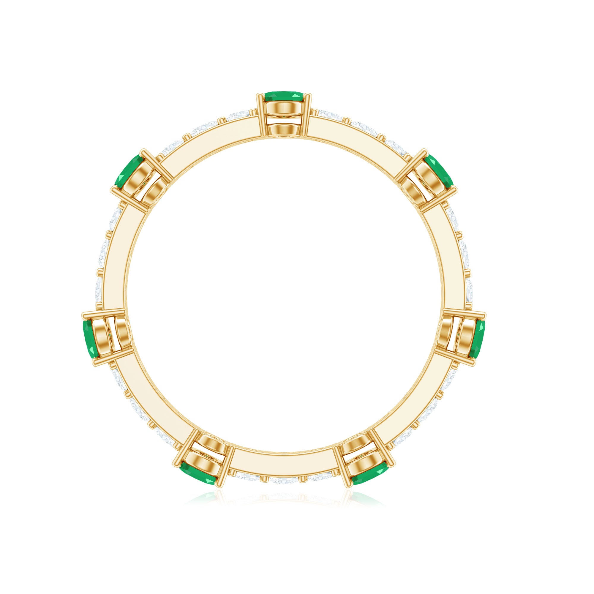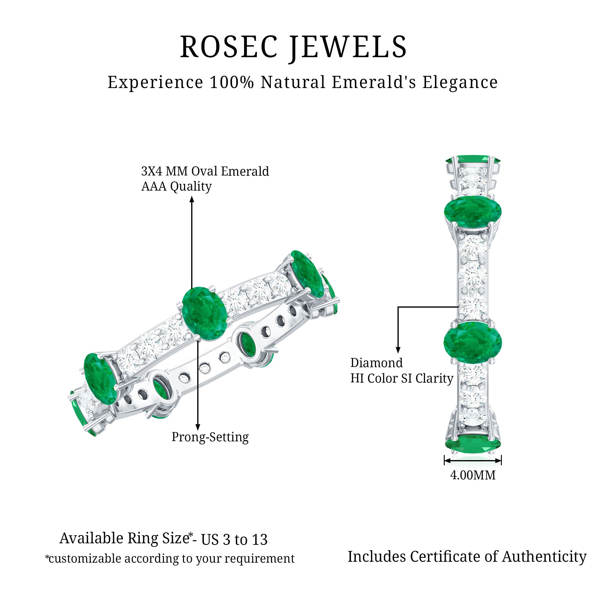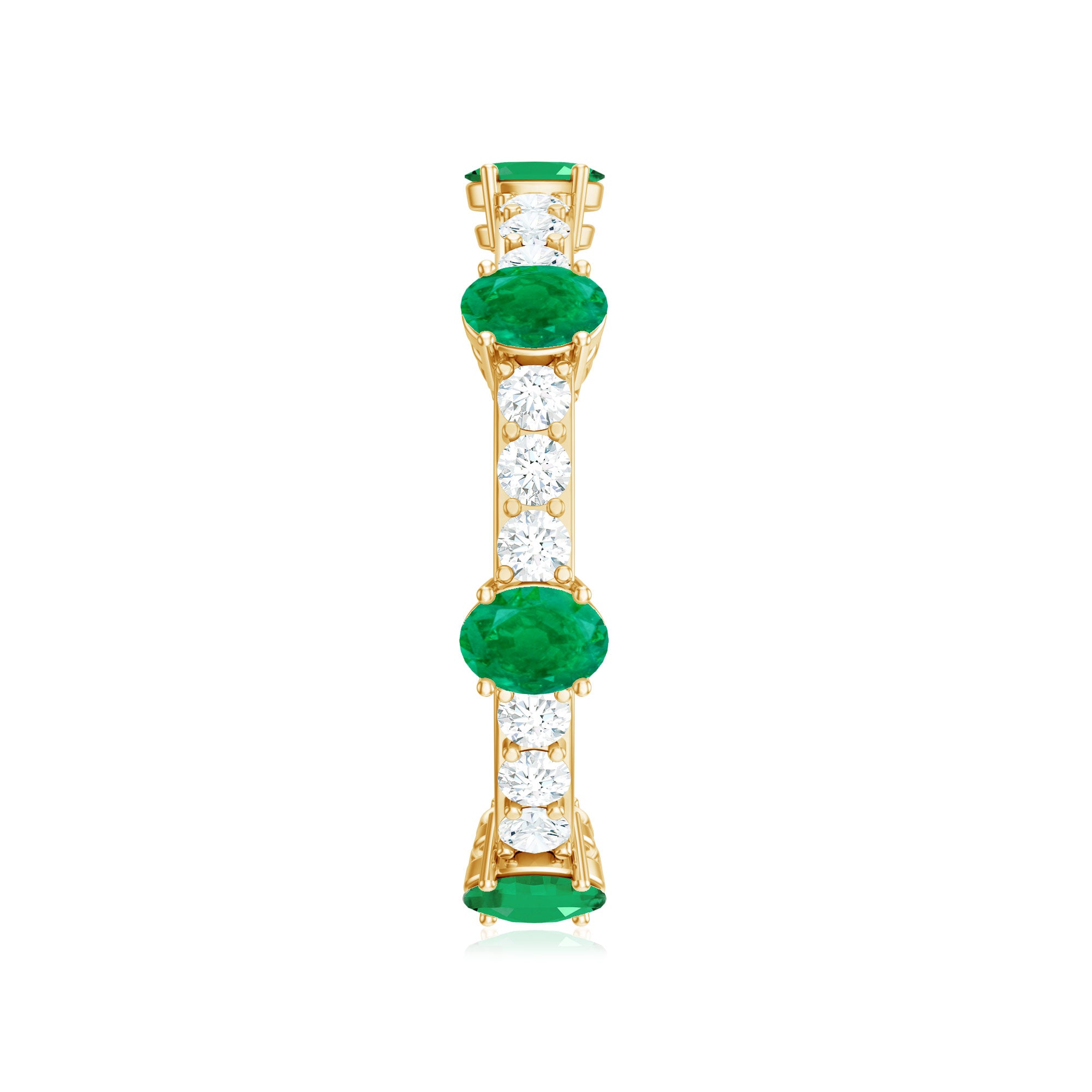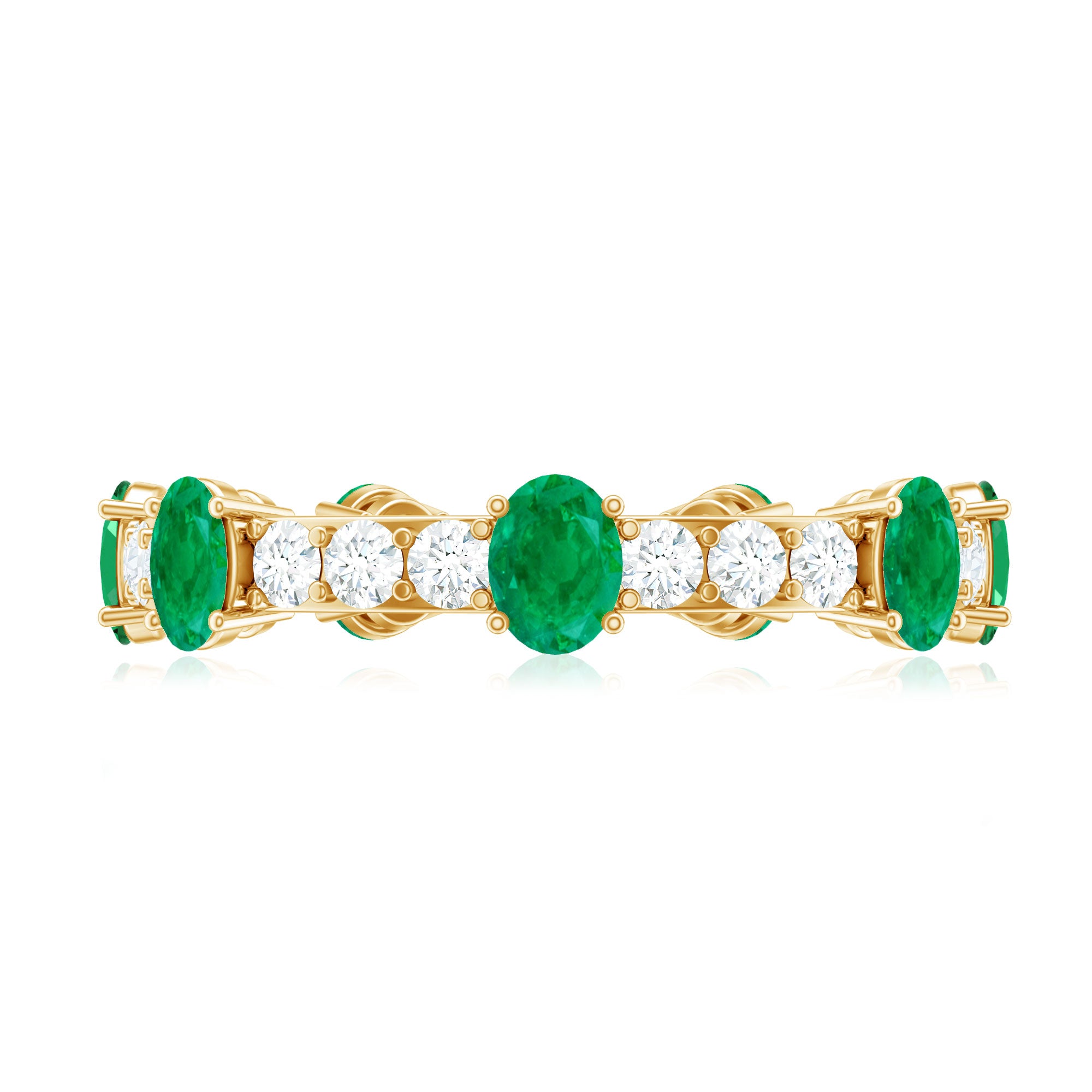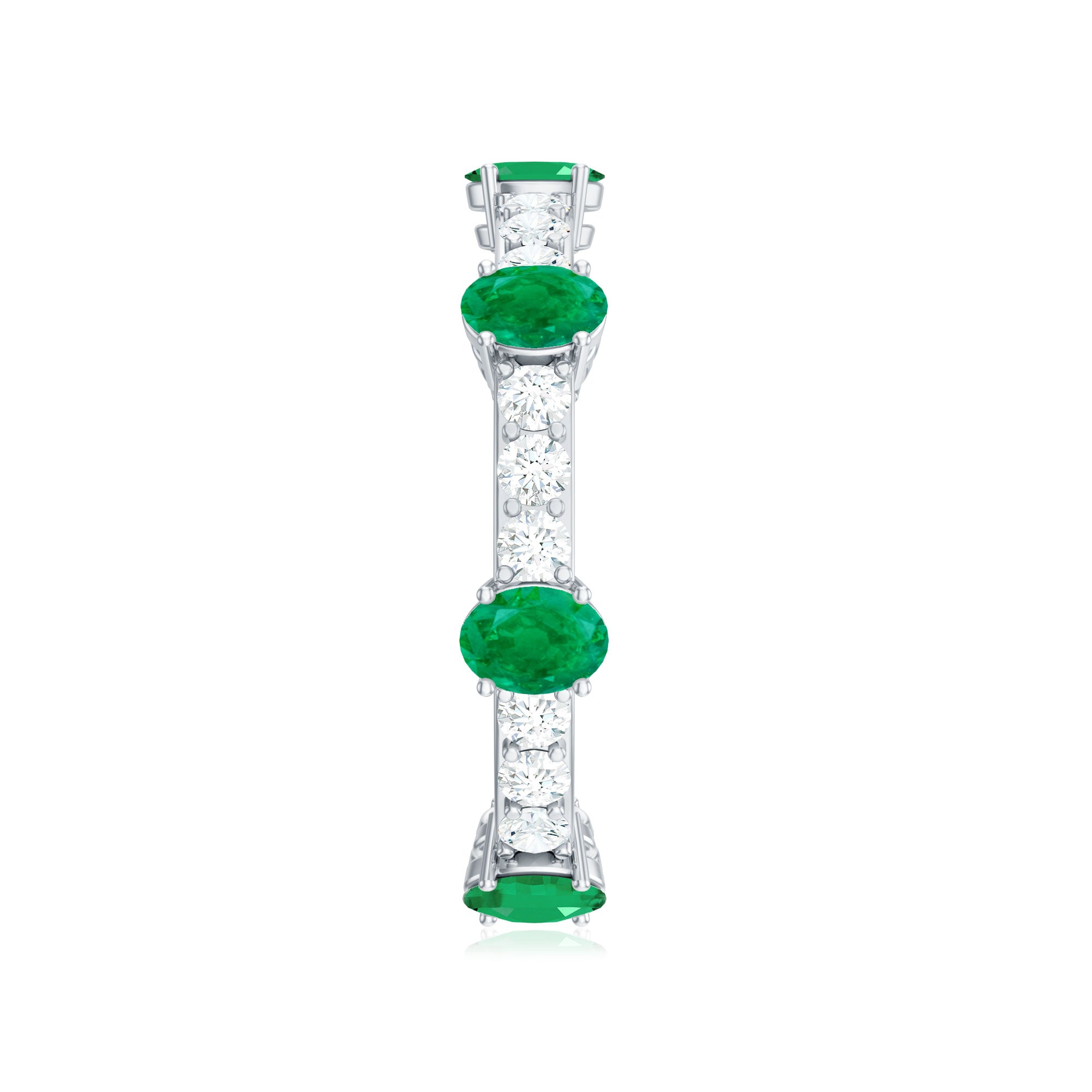 Celebrate love that grows richer with time with this Full Eternity Ring, a stunning symbol of devotion and enduring passion. Each perfectly shaped 3X4 mm Oval Emerald radiates a deep, mesmerizing green hue that draws attention. Alternating with dazzling Diamond stones that sparkle with every movement, this Wedding Anniversary Ring forms an unbroken circle, a timeless representation of infinite commitment and shared memories. The elegant design balances modern sophistication with classic romance, making this Emerald Eternity Ring the perfect gift to honor anniversaries, milestones or simply to remind someone special of the bond you share. Presented in a signature jewelry box and available in multiple sizes, this Oval Emerald Ring is designed to be cherished for a lifetime. The harmony between the vibrant Emerald and dazzling Diamond stones creates a captivating dance of color and light, reflecting the unique journey of love. This Emerald Diamond Ring is a promise renewed with every glance and a radiant reminder that true love is eternal.