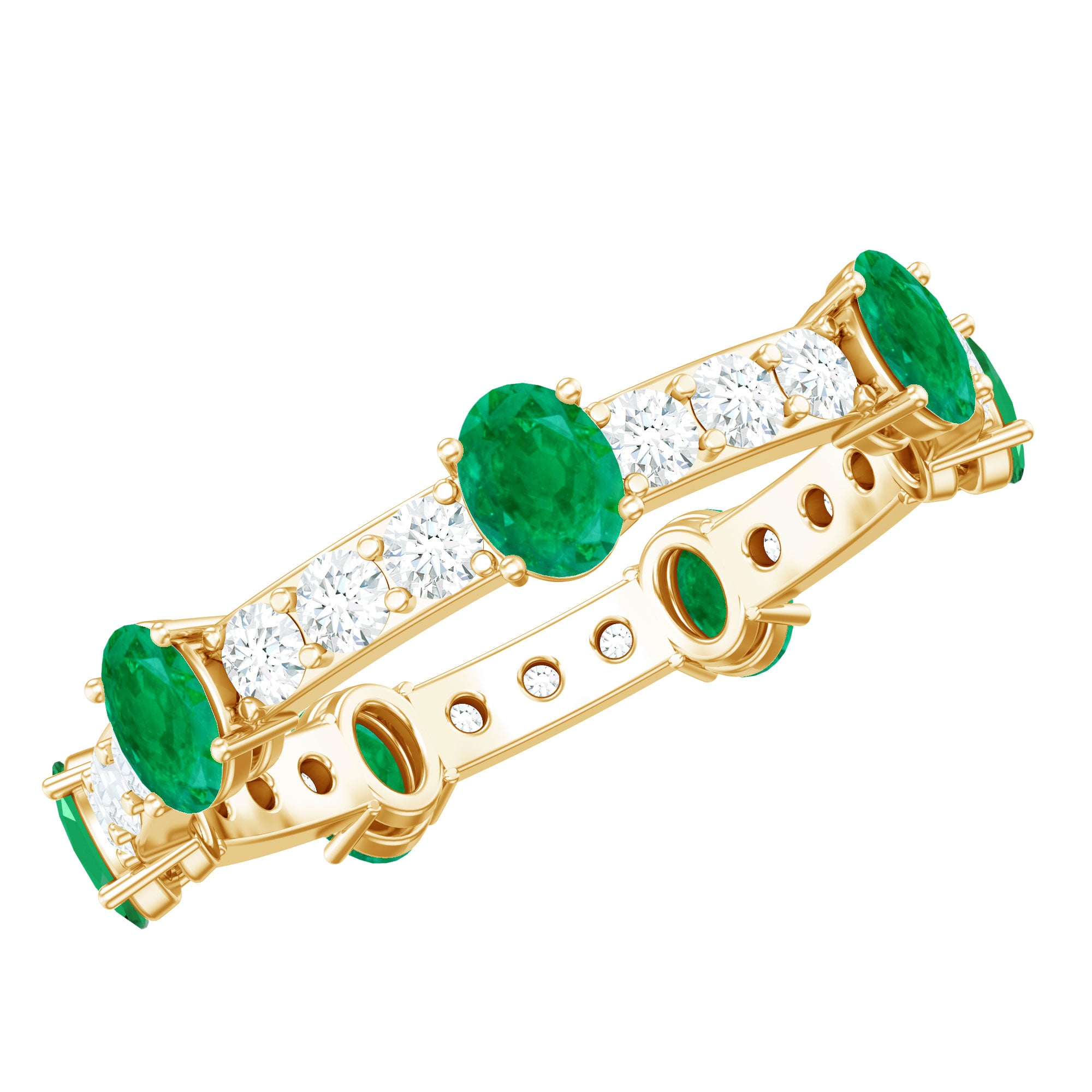 Natural Oval Emerald Diamond Eternity Marriage Anniversary Ring