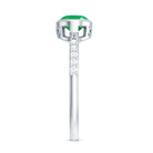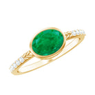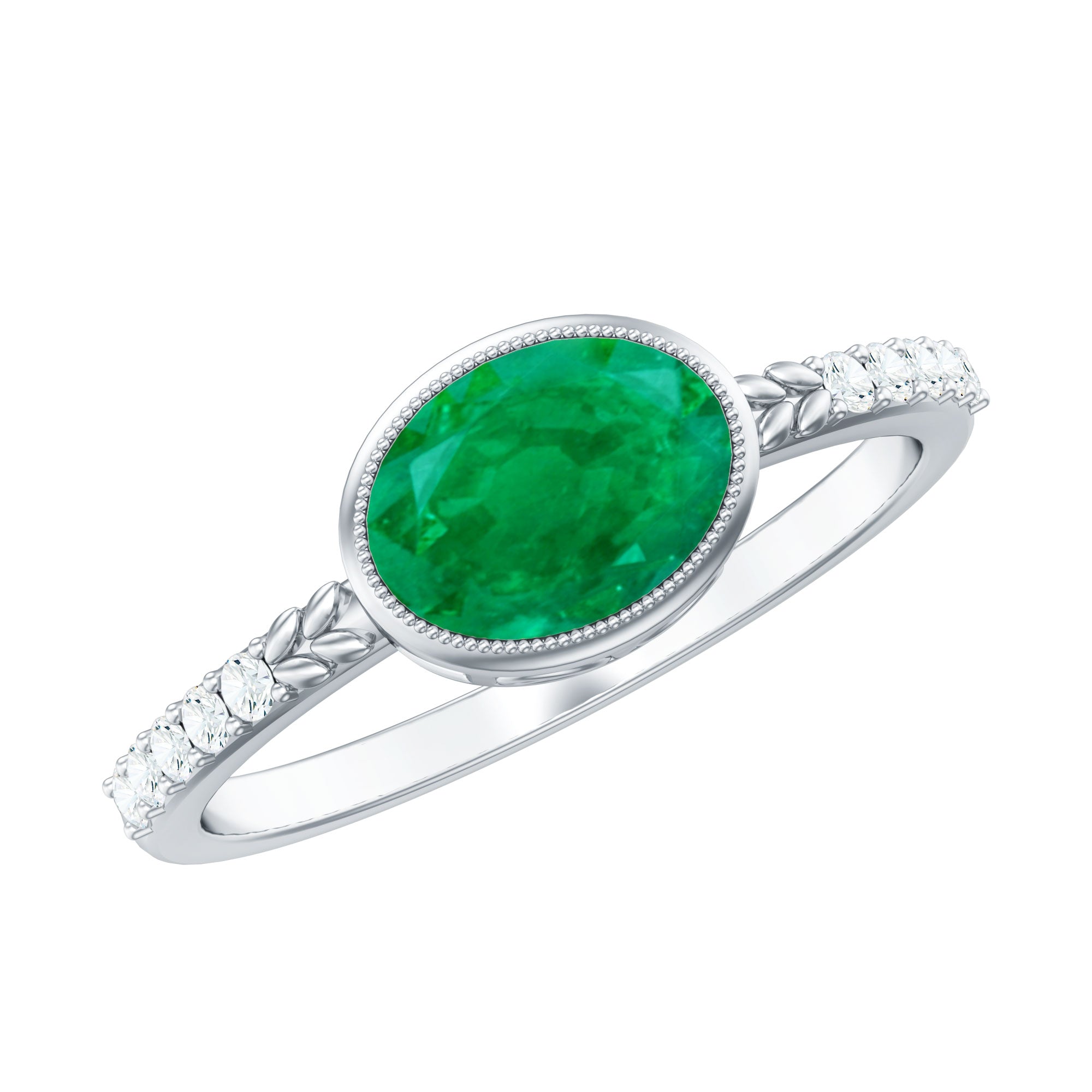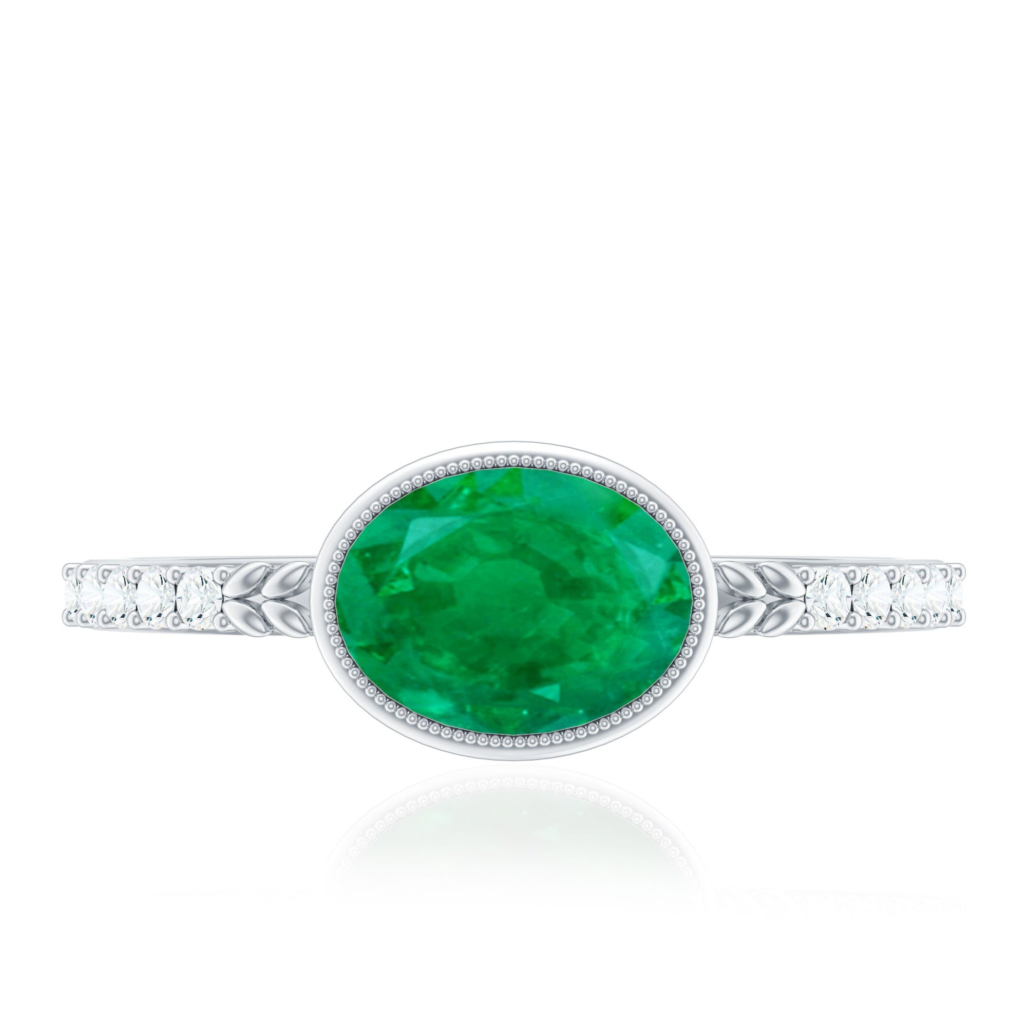 Natural Oval Shape Emerald East West Engagement Ring with Diamond