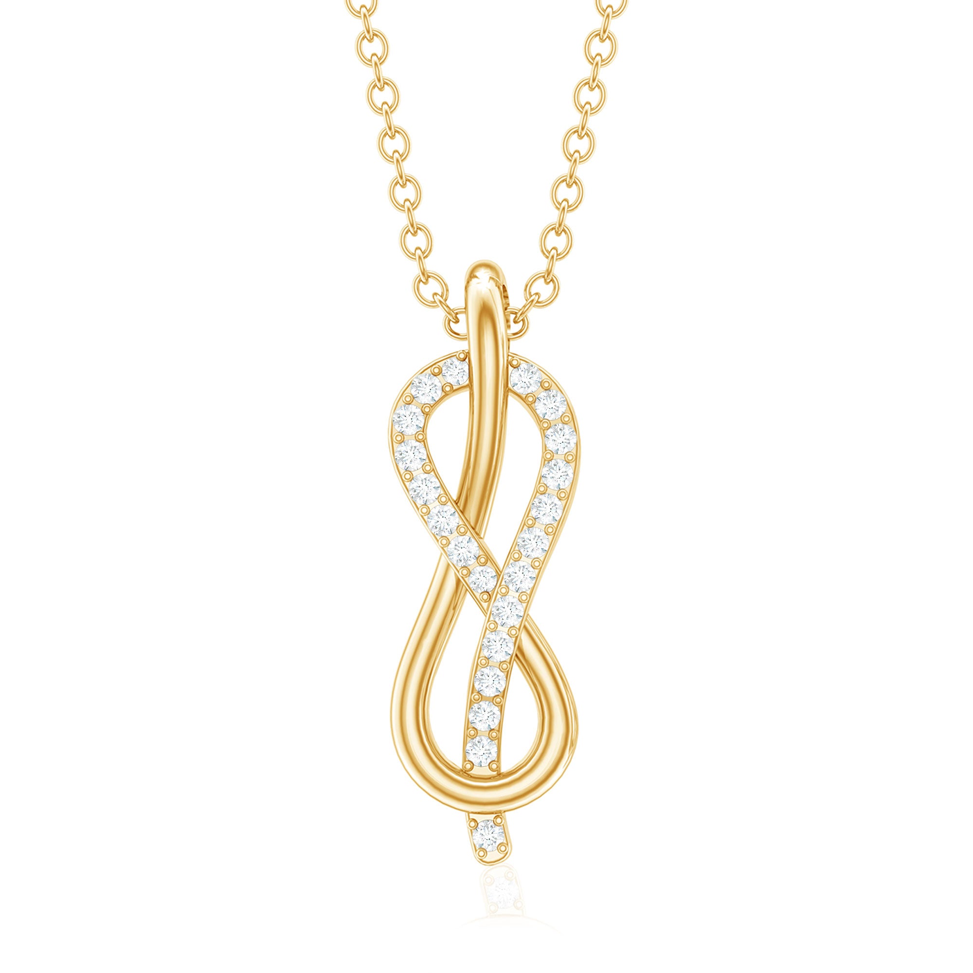 A unique and rich look is the prime feature of this Diamond Infinity Necklace. The Pendant with Chain is adorned with tiny Round Diamonds studded beautifully on Infinity Pattern in Pave Setting. This Minimalist Diamond Pendant Necklace dazzles with the infinite beauty and beholds the timeless essence of love. Make your lady fall in love again with this Knot Pendant as it depicts the symphony of romance and elegance. This Infinity Knot Necklace is a perfect present for a special day such as anniversaries or birthdays, valentines, proposal.