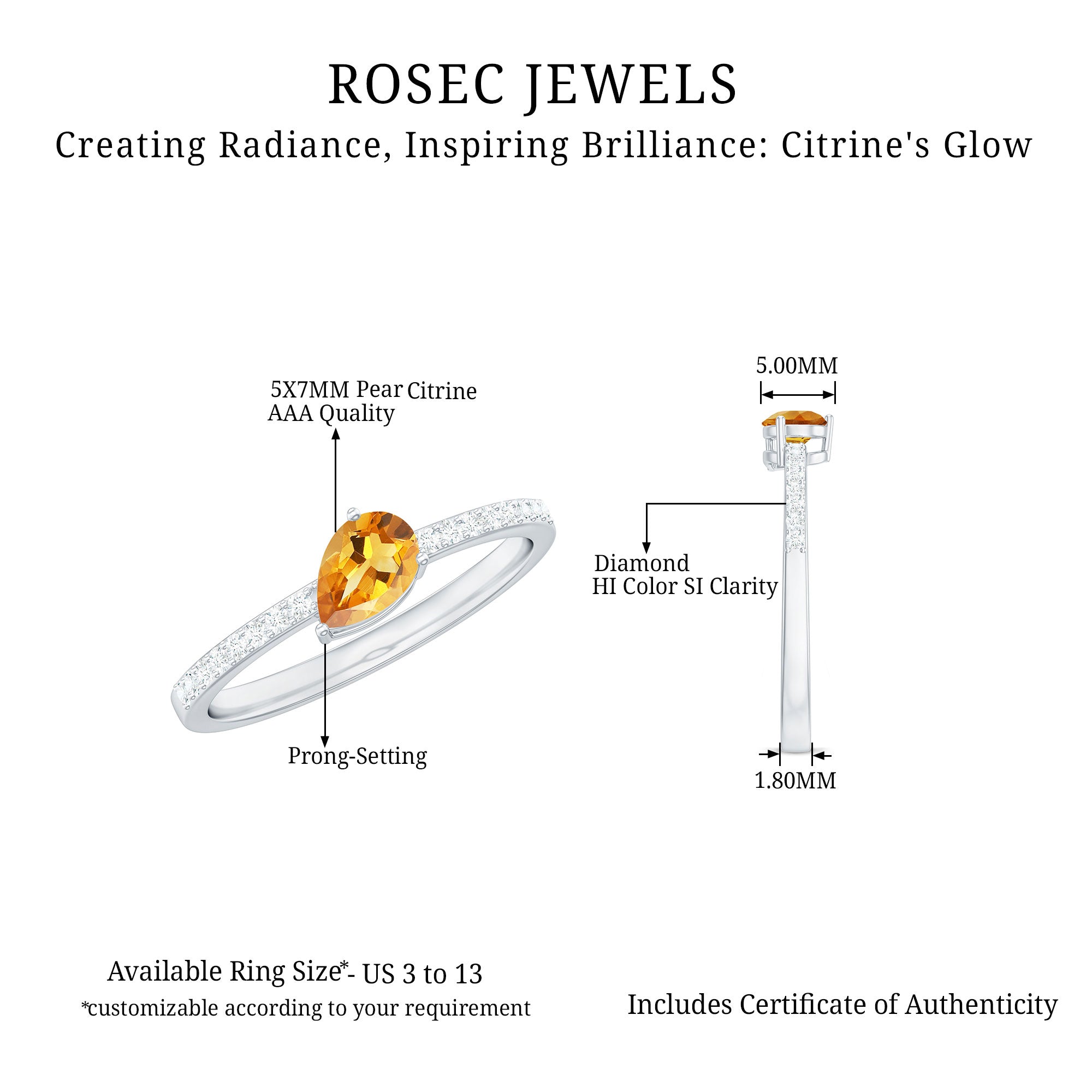 • Pear-shaped natural citrine: offers an elongated, elegant profile.