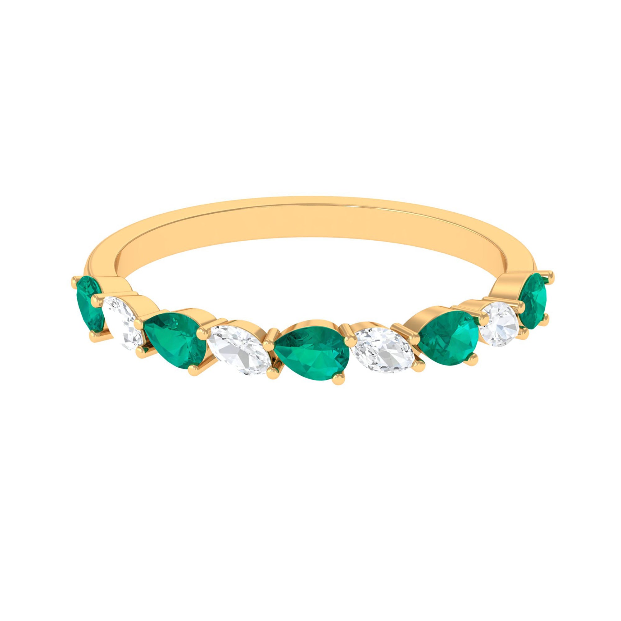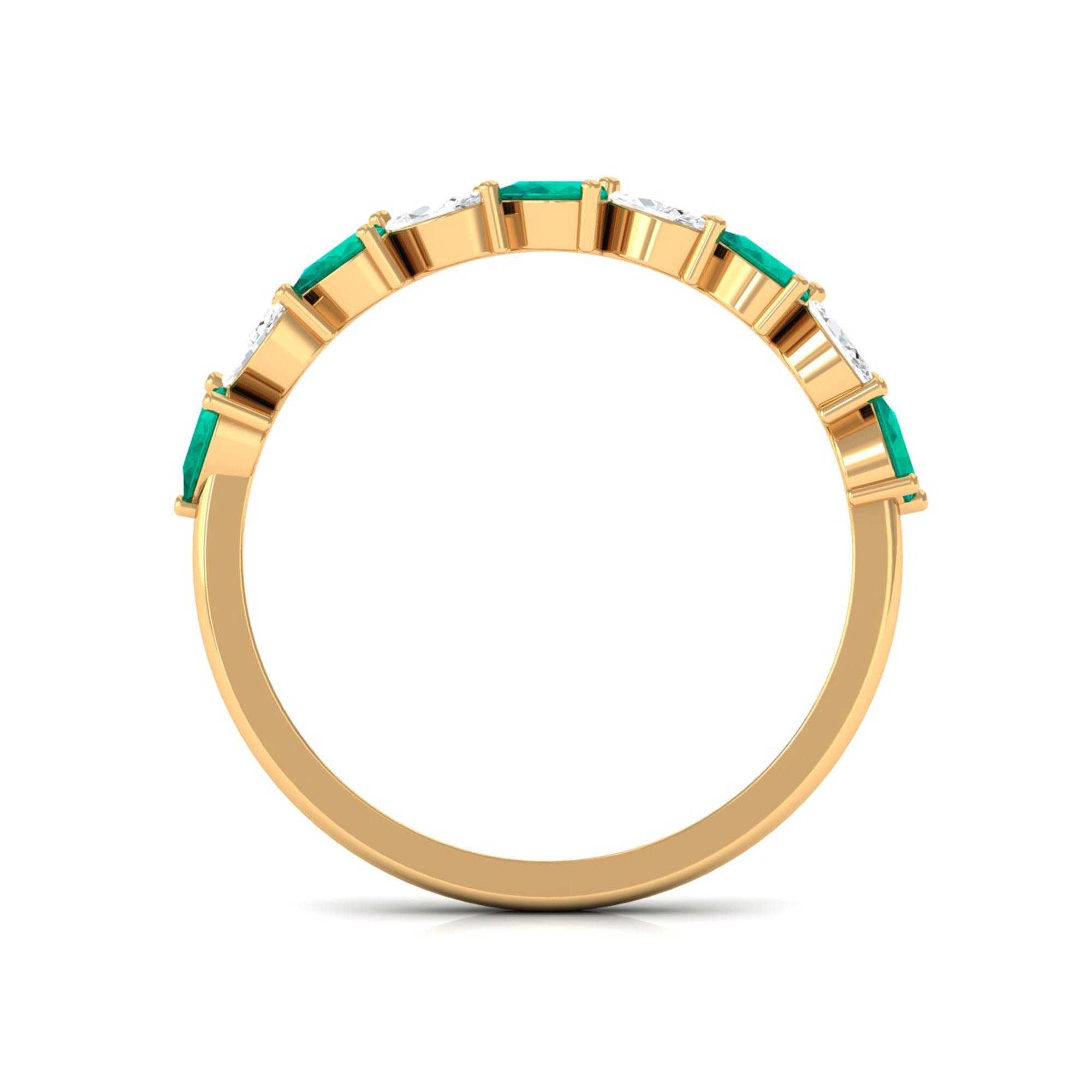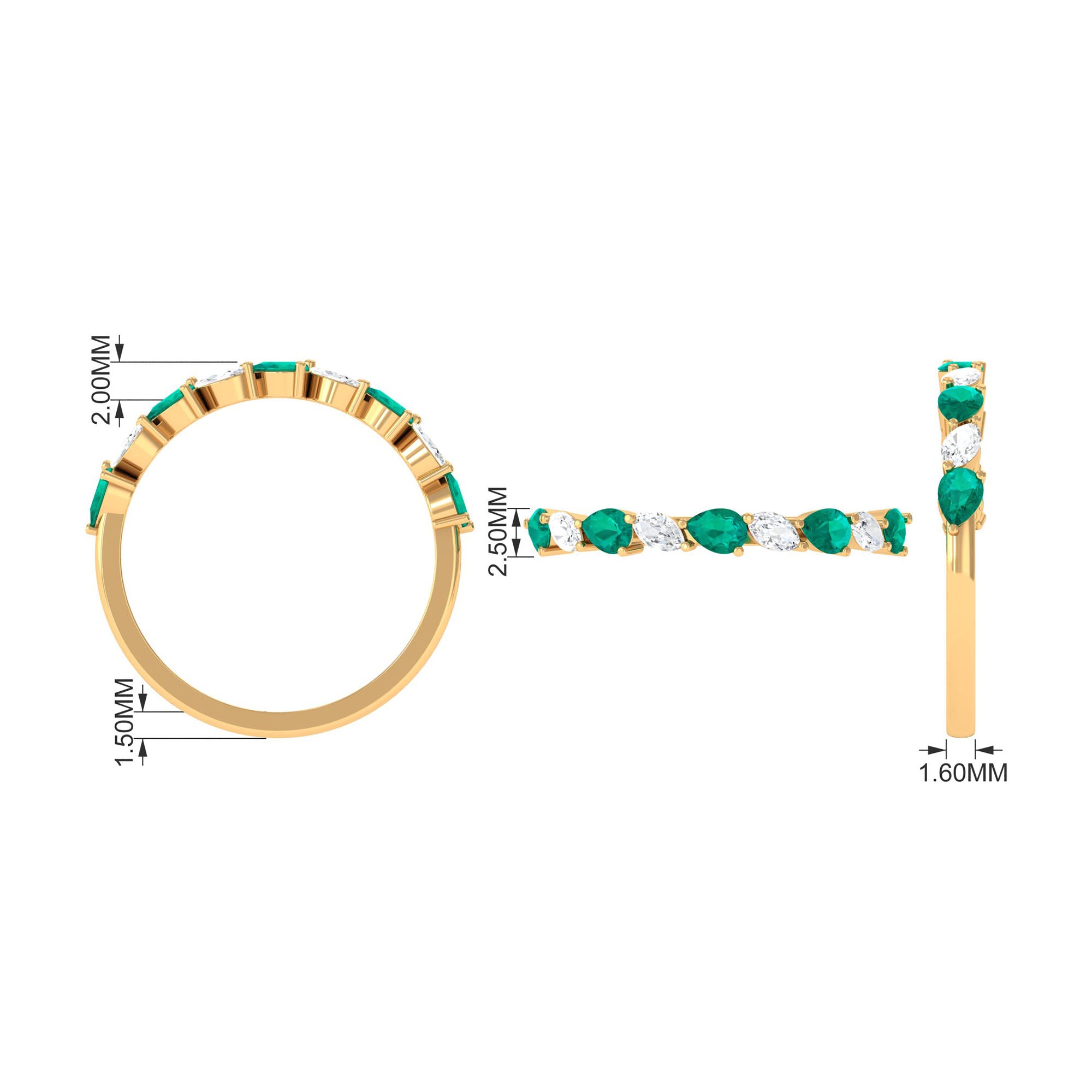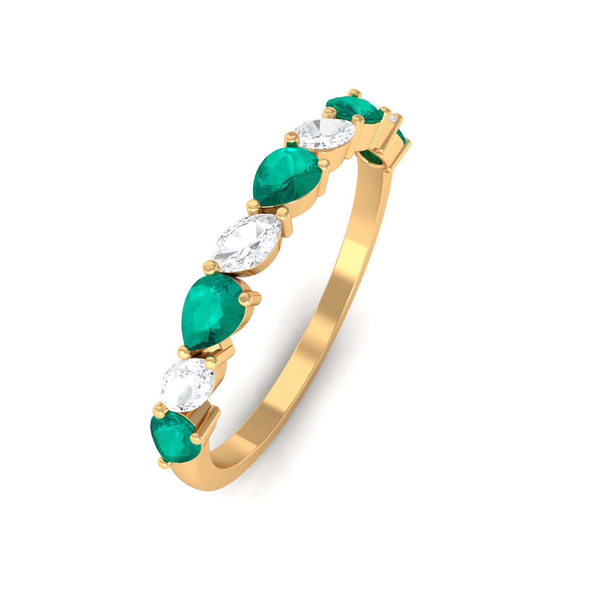 Embrace a love as rare and sparkling as this Half Eternity Ring, a true celebration of passion and elegance. Designed in an East-West style, this Fine Ring captures the perfect harmony between lush green and the brilliance of eternal light. Alternately placed in Prong Setting, the Pear Shape Emerald stones of AAA Quality glimmer with a deep green hue, that symbolizes growth, renewal and heartfelt devotion, while the Marquise Shape Moissanite stones of D-VS1 Quality reflect every spark of your love story. Ideal for an anniversary, milestone or romantic surprise, this Emerald Moissanite Ring is a statement piece she will treasure for lifetime. Thoughtfully presented in a signature jewelry box and available in various ring sizes, this East West Ring is ready to gift and ready to become a symbol of love that never stops glowing.