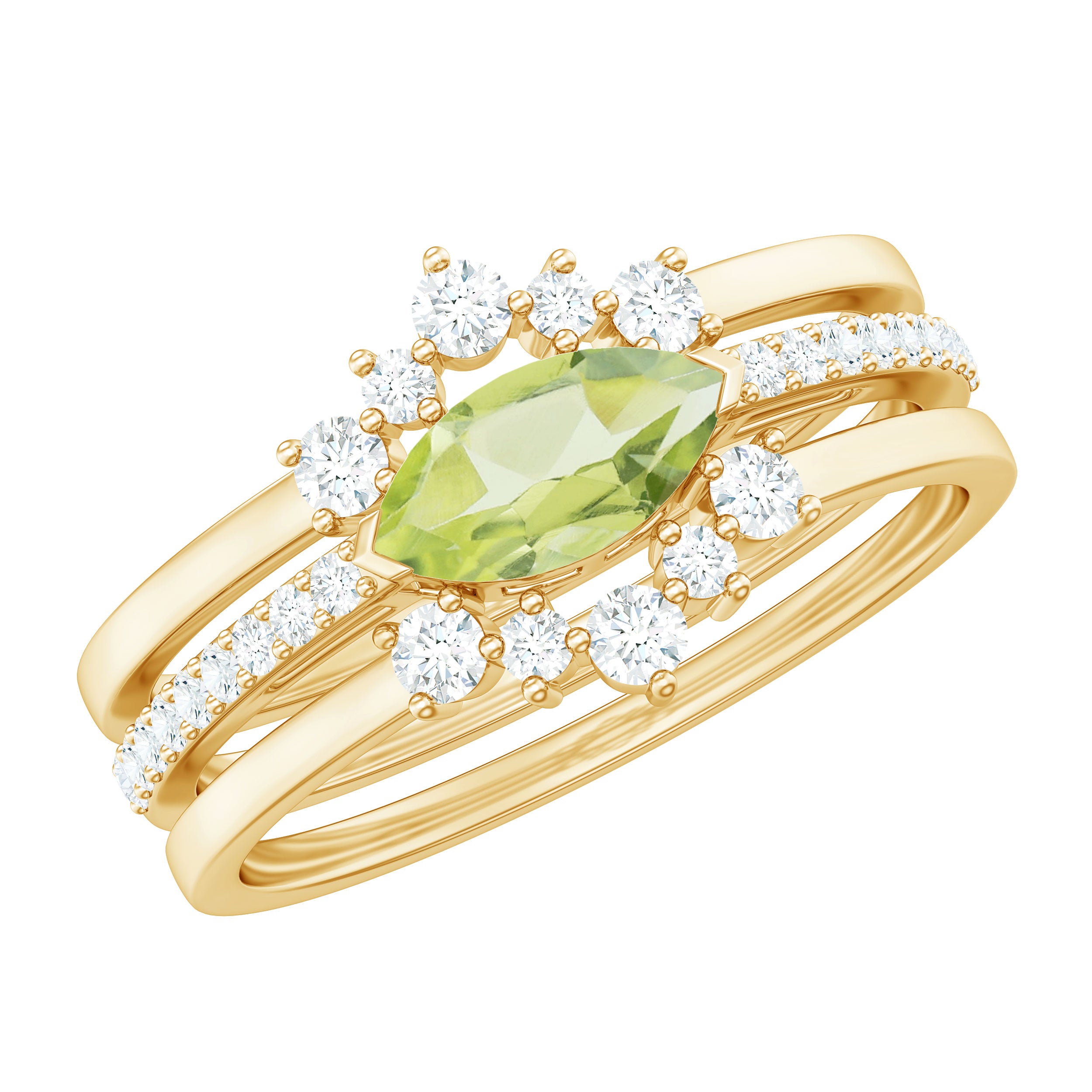 Embrace the beauty of nature with this enchanting Ring Set of 3, featuring a Peridot gemstone and brilliant Diamond gemstones. Elevate your style with this captivating piece, symbolizing growth, renewal, and eternal love. Whether for a special occasion or daily wear, this unique ring set will effortlessly enhance your grace and individuality.