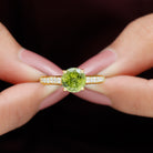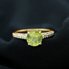 Celebrate the beginning of your new journey with this stunning solitaire engagement ring, expertly crafted from gold. Designed for women, the ring features a beautiful round peridot gemstone set as the centerpiece in a prong setting, creating a simple yet elegant look. Petite round Diamond stones are added as side stones in a prong setting, enhancing the rings overall beauty and sophistication. A perfect choice for your special day, this engagement ring is sure to captivate and leave a lasting impression.