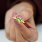 Natural Peridot Solitaire Engagement Ring with Diamond Side Stones
