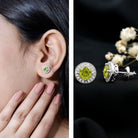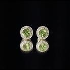 Natural Peridot Stud Earrings with Diamond Halo