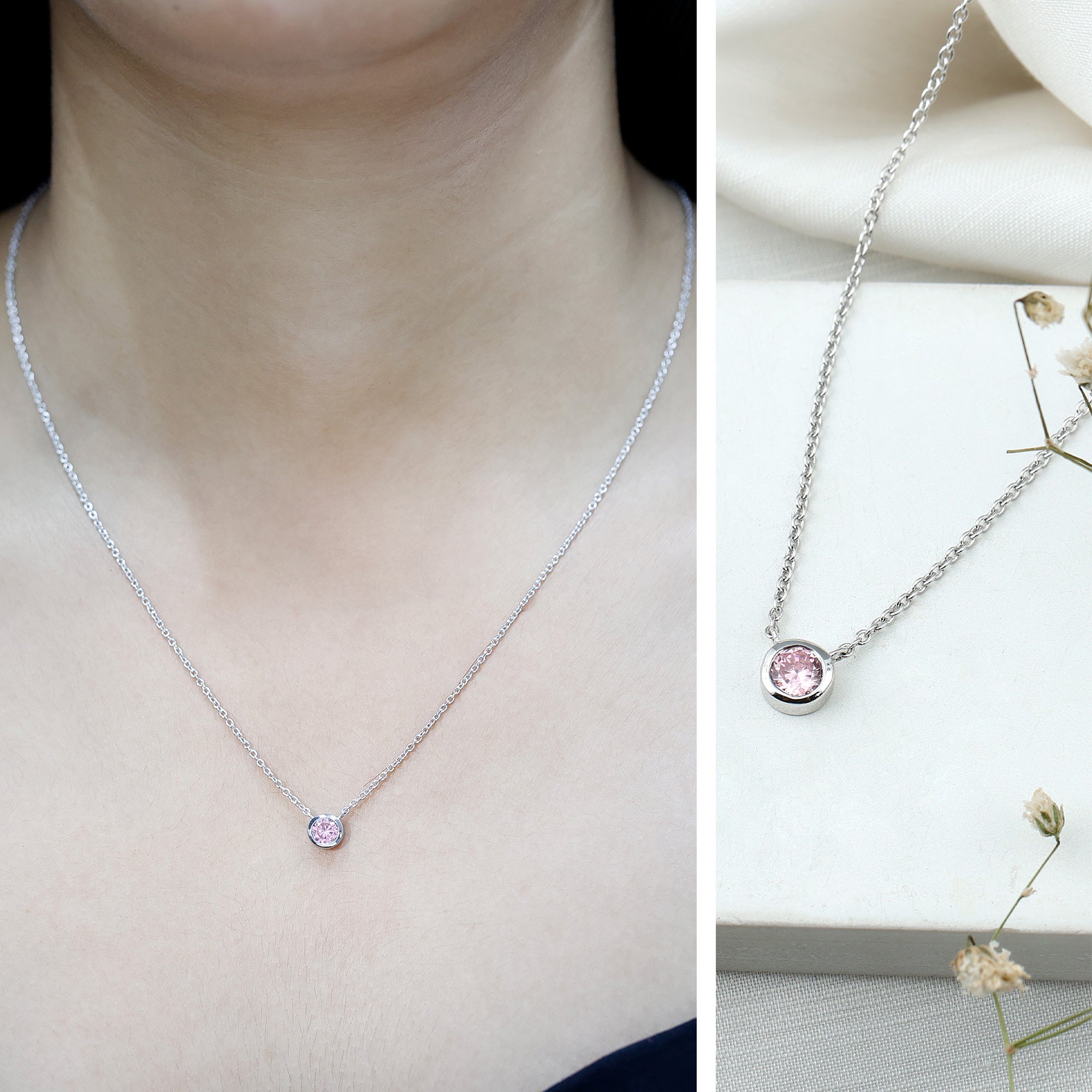 Why just celebrate your birth month once a year, when you can wear it every day? This Pink Sapphire Solitaire Necklace is the kind of everyday sparkle that feels personal and effortlessly stylish. Made for the September-born soul or anyone who just loves that bold pop of pink, this piece brings together meaning and minimalism in the best way. Set in 14k white gold plated sterling silver, the Solitaire Necklace features a 5 MM round shaped Pink Sapphire of AAA quality, secured in sleek bezel setting. It hangs from a strong cable chain that feels delicate but durable, perfect for layering with your favorite pieces or letting it shine solo. Whether you are heading to work, brunch, or somewhere special, this Pink Sapphire Necklace brings a subtle pop of color and a whole lot of charm. Pink Sapphire is not just pretty, it is also known to symbolize love, strength, and wisdom. This September Birthstone Necklace also makes a thoughtful and personalized gift for a birthday, graduation, Valentine’s Day, Christmas, or even a special surprise. Timeless and easy to wear, this Bezel Set Necklace is a sweet little luxury that you will keep reaching for, no matter the season or occasion.