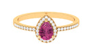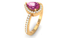 Natural Pink Tourmaline Teardrop Ring with Diamond Halo