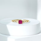 Experience the charm of our exquisite Red Ruby Ring, graced by a 4 MM captivating princess-cut ruby, securely set in a Four Prong Setting, and adorned with a Celtic knot band. This Solitaire Ring is not just a piece of jewelry; its a symbol of enduring beauty and sophistication. This simple Promise Ring is a symbol of forever love. This Celtic Band Ring beholds the shine of AAA Quality Ruby which makes the celebration brighter and her smile wider. This Princess Cut Ruby Ring is the perfect present for July-born ladies.