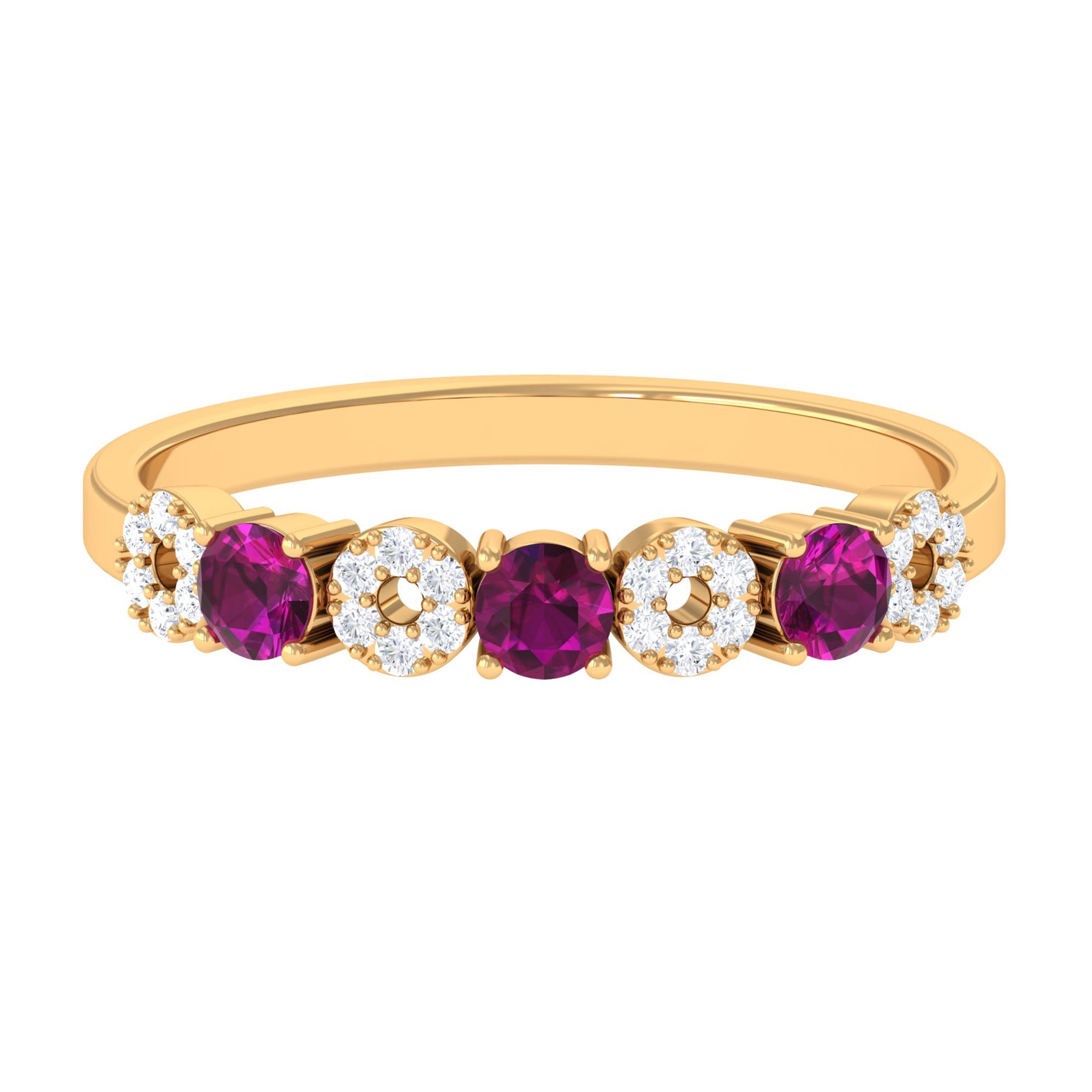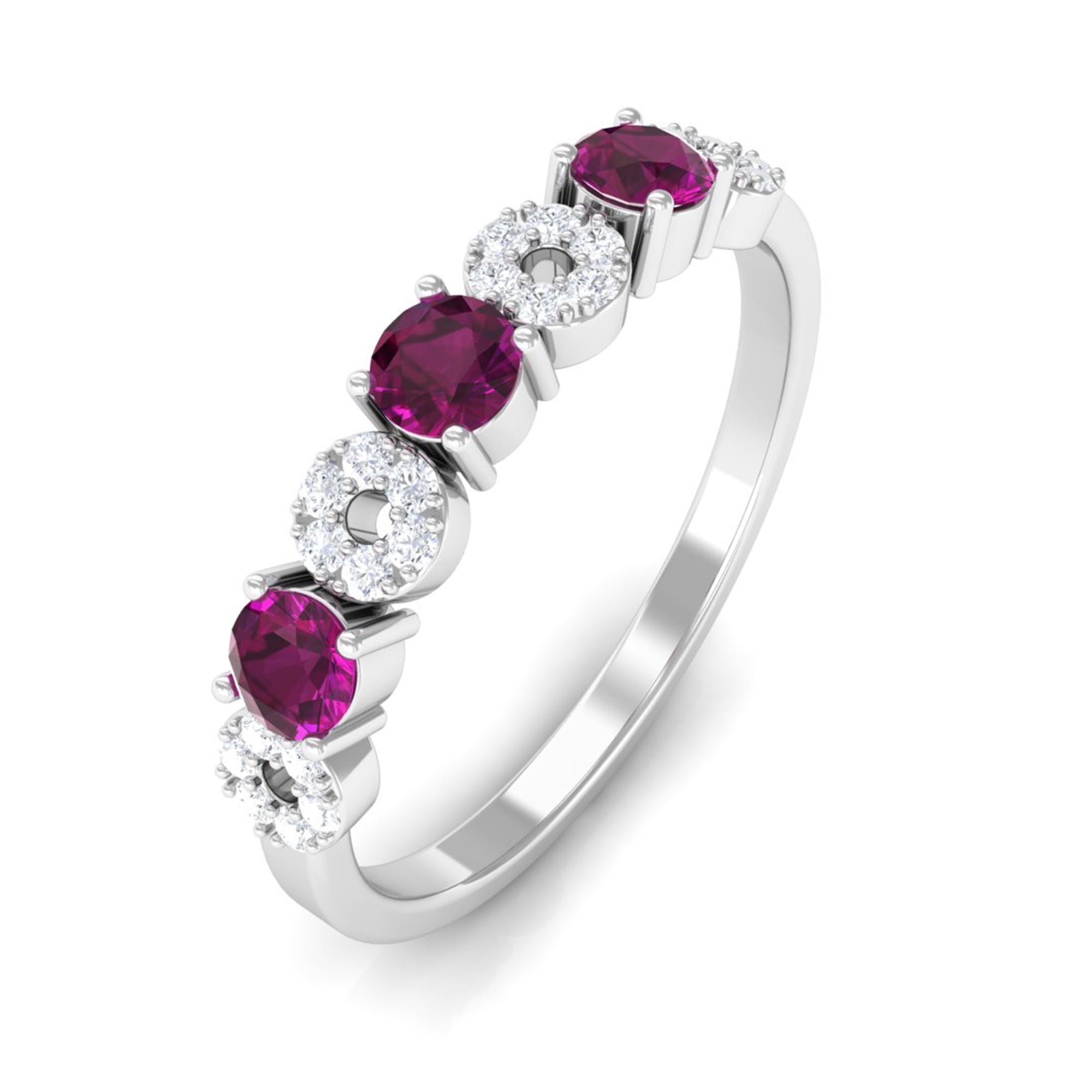 Embrace the captivating beauty of this Rhodolite and Diamond Half Eternity Ring. The half eternity design symbolizes eternal love and commitment, making this ring a meaningful token for special occasions or anniversaries. Revel in the timeless elegance of this Rhodolite and Diamond ring, a symbol of your cherished affection and everlasting devotion.