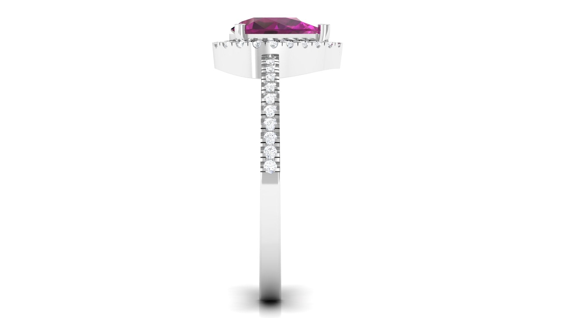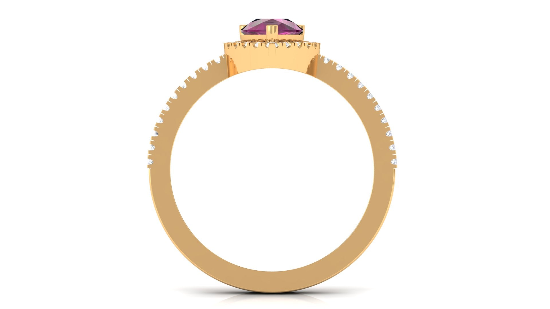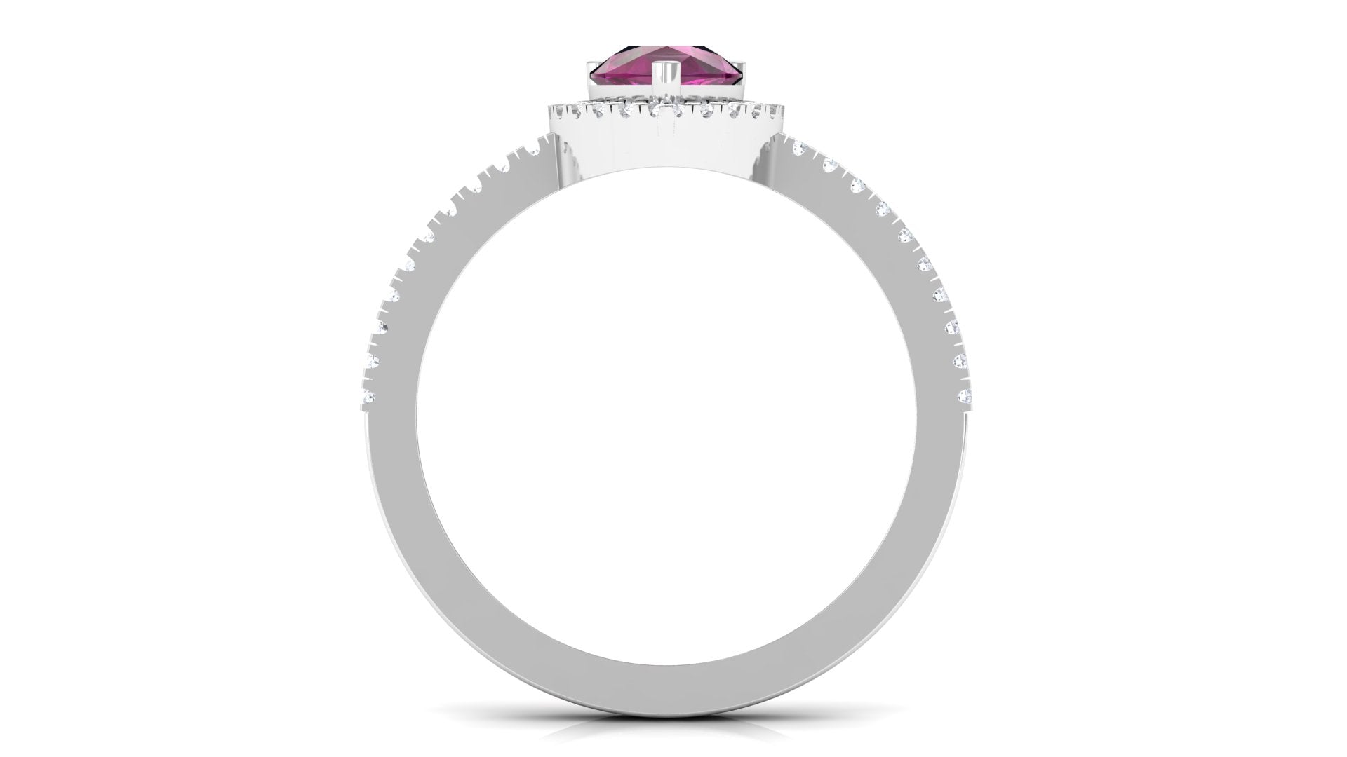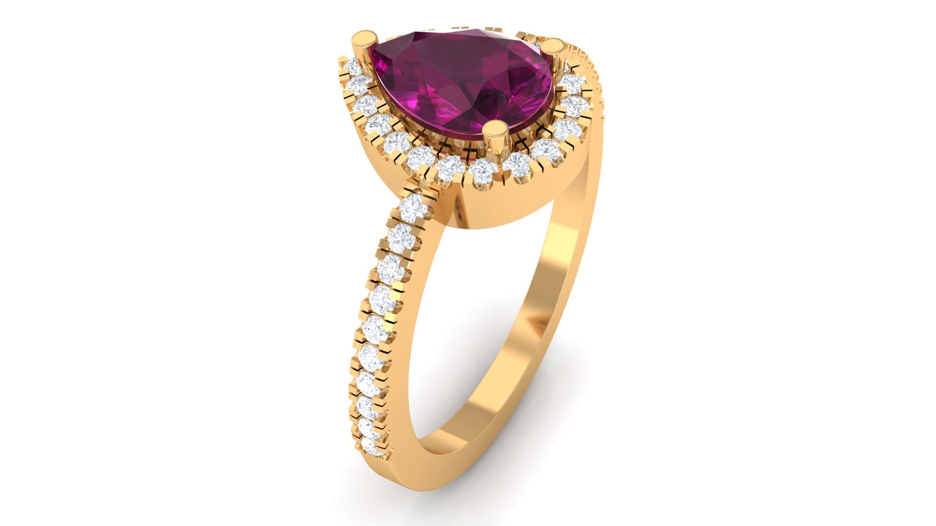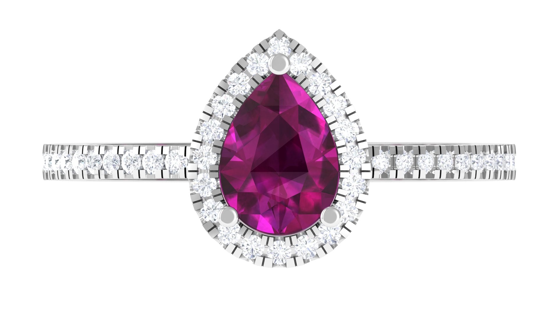 Natural Rhodolite Teardrop Halo Ring with Diamond