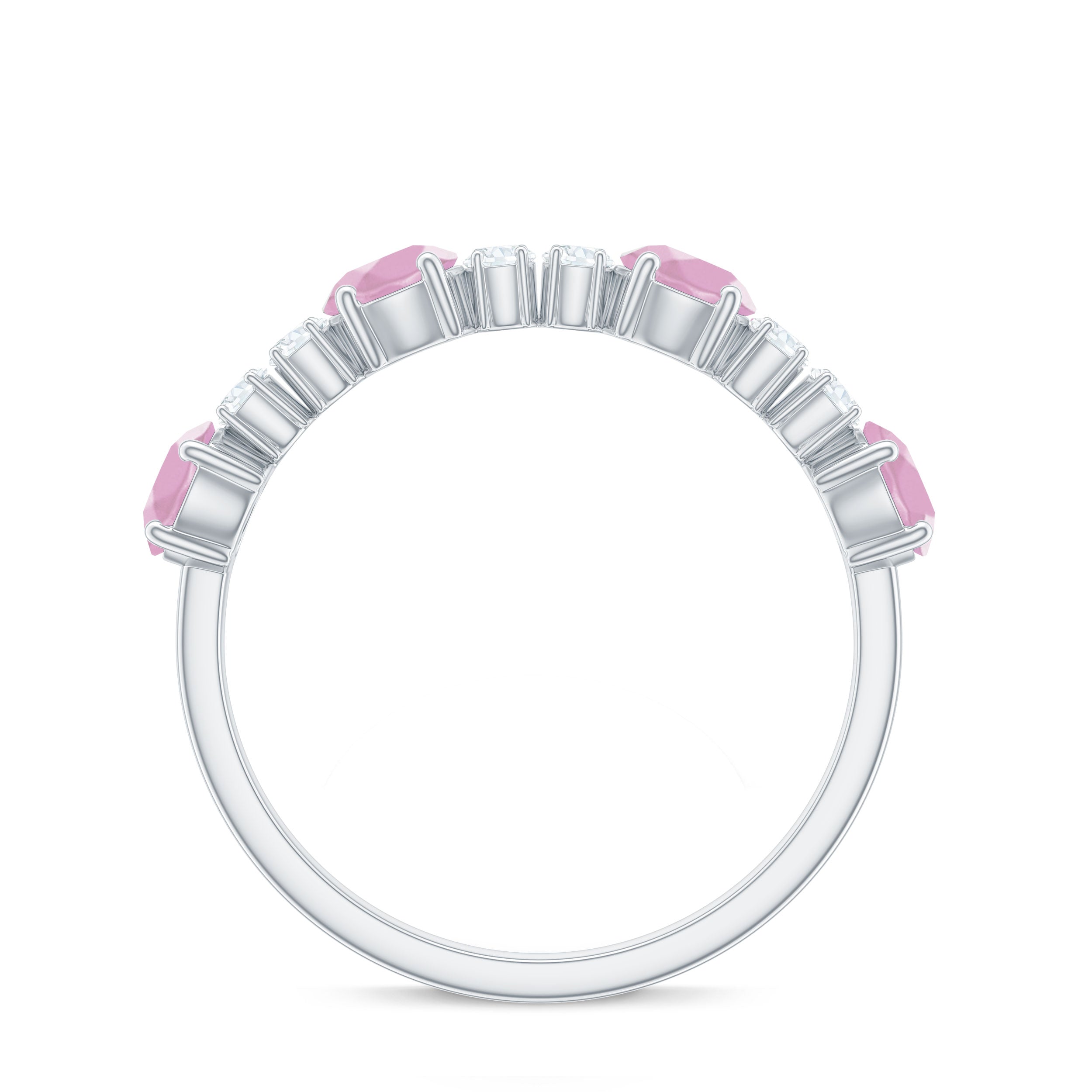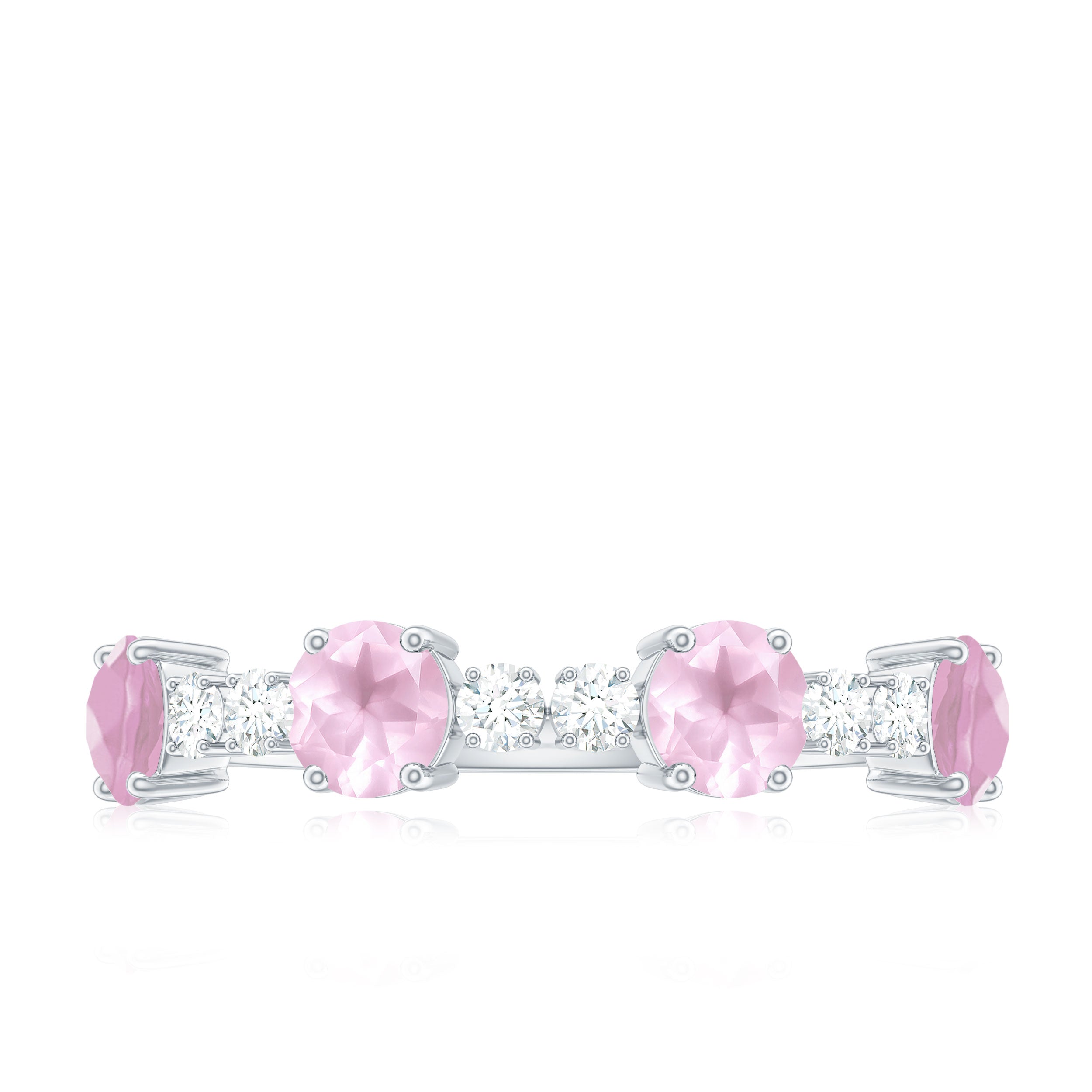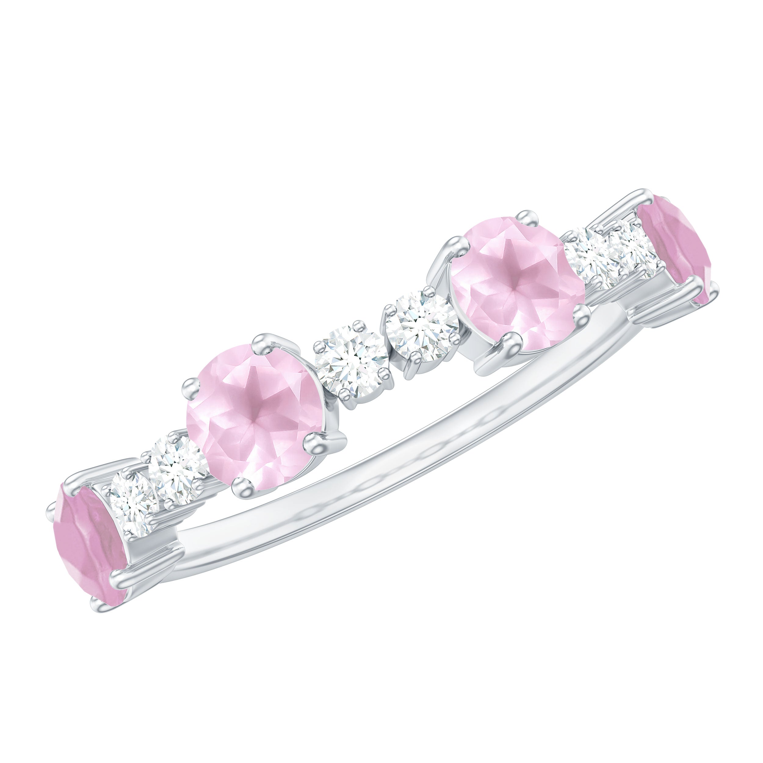 Natural Rose Quartz and Diamond Half Eternity Ring