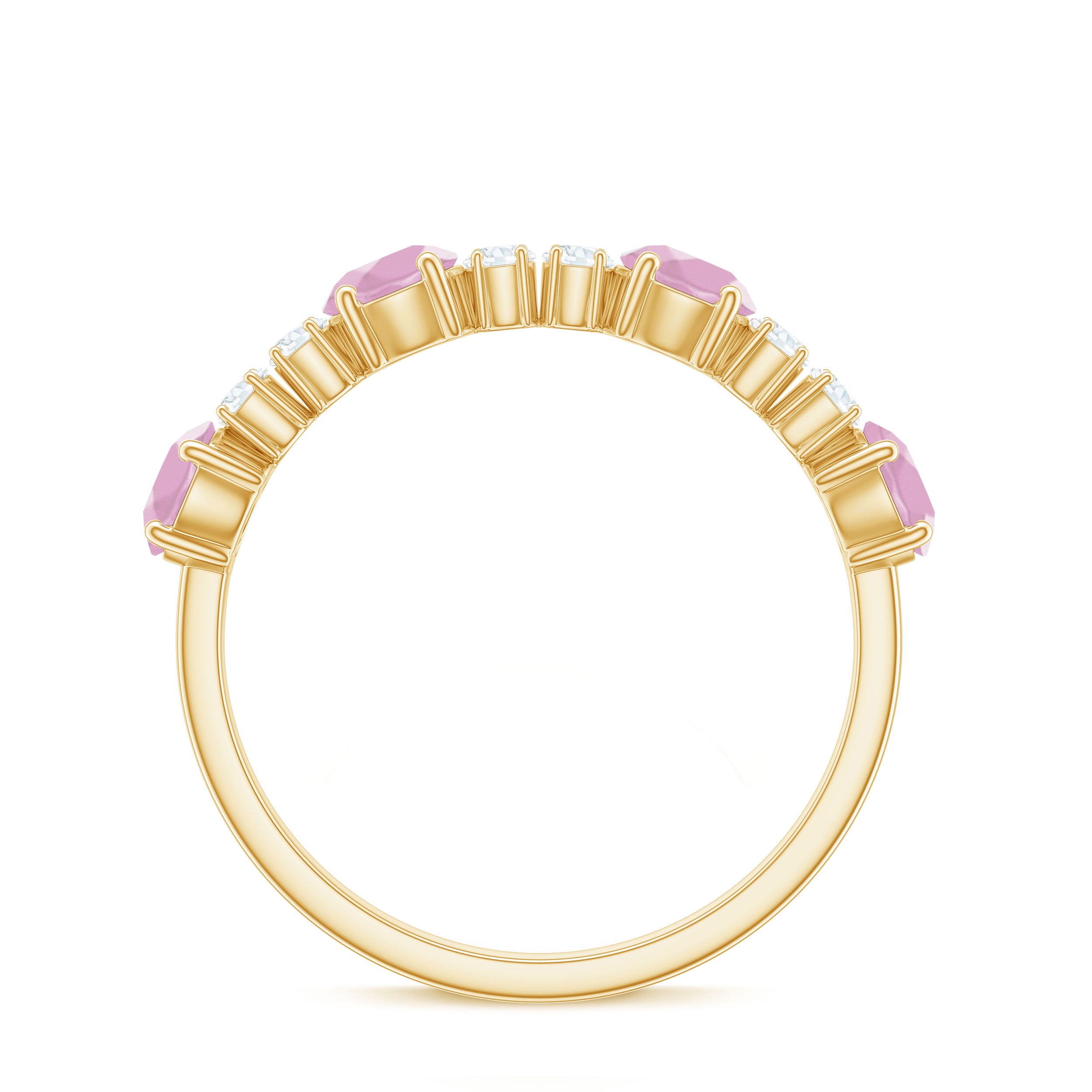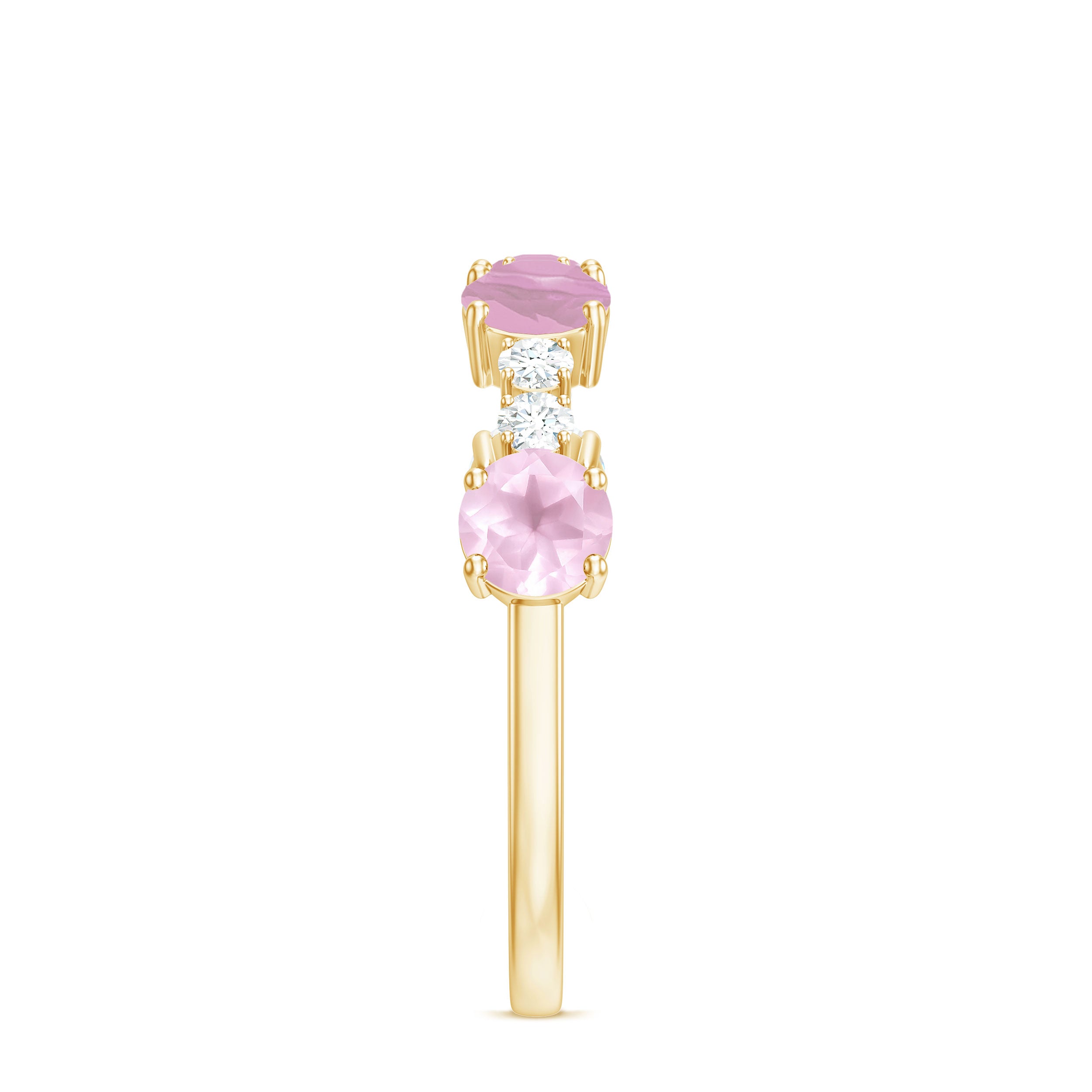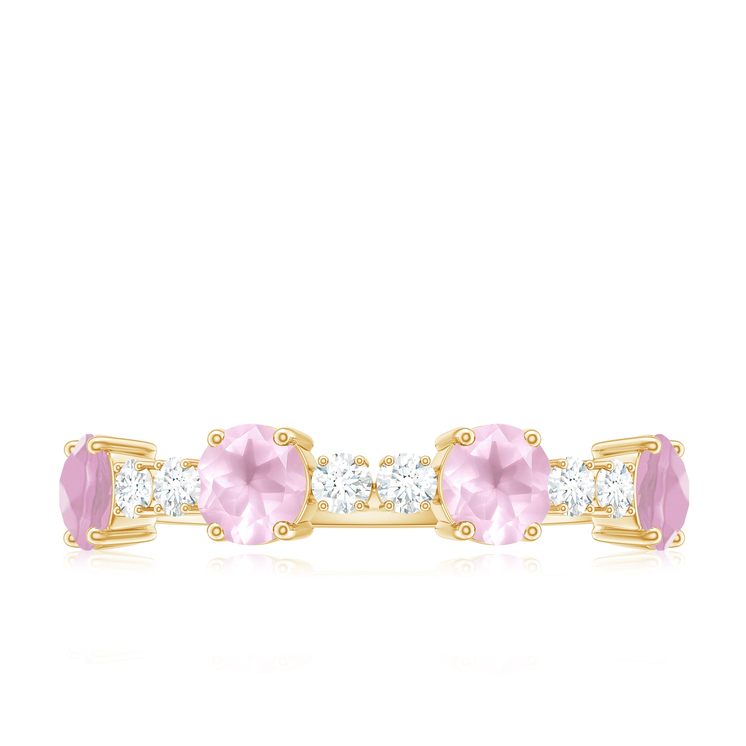 Natural Rose Quartz and Diamond Half Eternity Ring