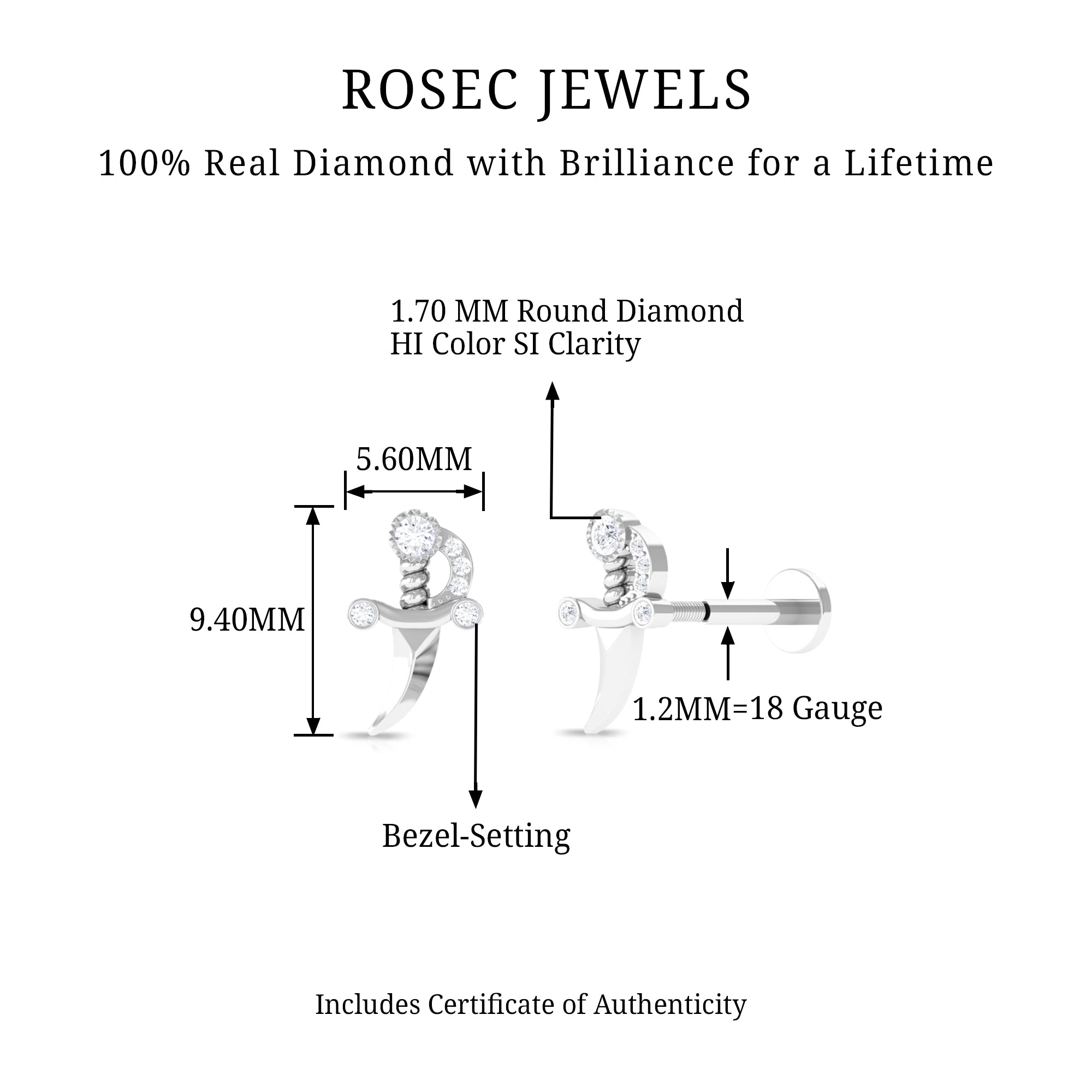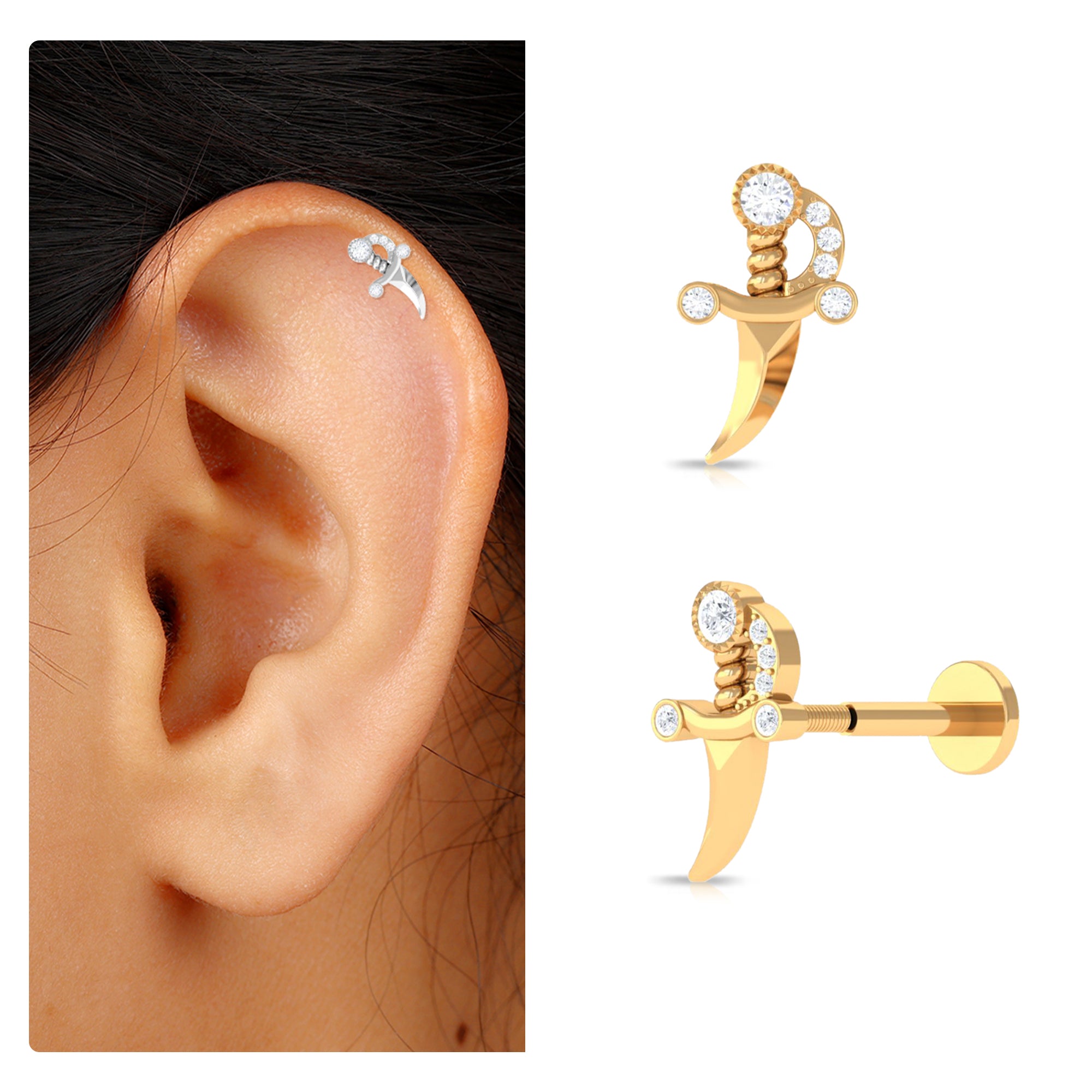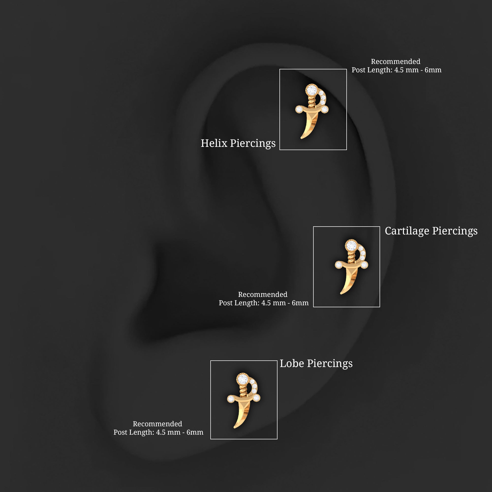 Create unique and stunning looks with our Diamond Dagger Helix Earring. Decorated with Round Cut Diamonds studded on the dagger design. Wear this Diamond Earring on your Helix, Cartilage, Conch, or Upper Lobe Piercing. Stack this Cartilage Earring with other accessories and stand out from the crowd.