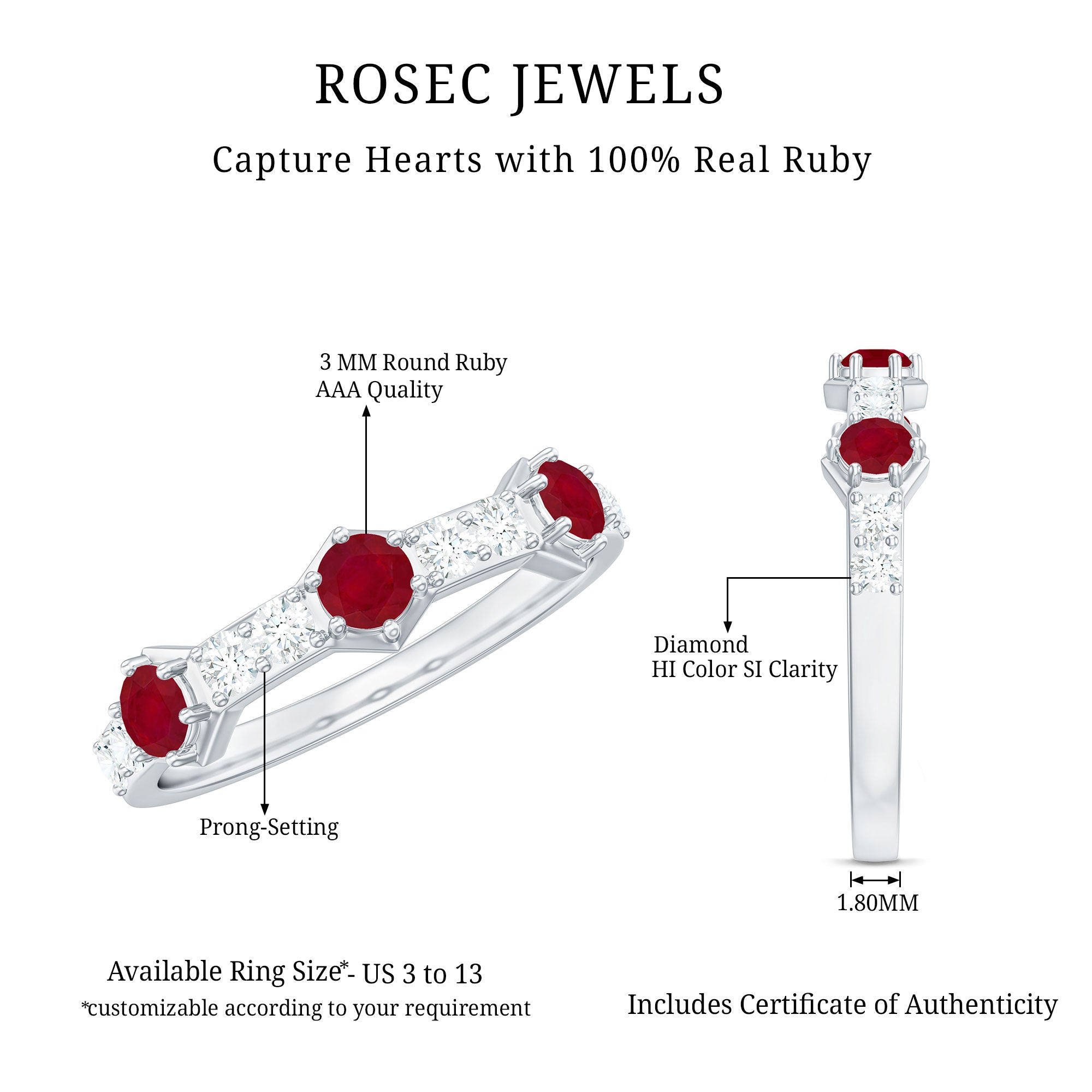 Celebrate everlasting love with this Minimal Half Eternity Ring adorned with Ruby and Diamond gemstones, a perfect blend of simplicity and sophistication.