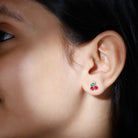 Brighten your style with a pair of playful earrings that bring a fun pop of color to any day. These cute Cherry Studs are designed for anyone who loves jewelry with charm. Each earring features a lively mix of round rubies forming the cherry shape, paired with marquise shaped emeralds that sit gently to create a leaf. A small touch of moissanite and sleek metal bars adds a little sparkle, giving the design a cheerful shine. The prong setting keeps each stone secure while allowing plenty of light to shine through. The result is a playful yet polished look that can be worn with casual outfits, weekend styles, or even something dressy when you want a fun twist. The screw back closure makes these Ruby Stud Earrings safe and comfortable for daily wear. They stay in place, so you can enjoy the cute design without worrying about them slipping out. Whether you are adding a fresh touch to your jewelry collection or searching for a sweet gift for someone special, these Fruit Earrings make a delightful choice. They bring color, charm, and a hint of whimsy to any moment, perfect for someone who loves accessories that feel bright, joyful, and full of character.