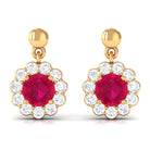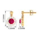 Natural Ruby Flower Drop Earrings with Diamond Halo