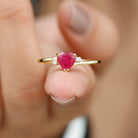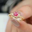 As an eye-catching statement of love, this Heart Shaped Ruby Ring creates a radiant effect inspired by the love that connect the two hearts symbolizing harmony and unwavering between two souls. Celebrate your new and growing love with this meaningful Heart Promise Ring. It is adorned with 5 MM Heart Shaped Ruby in Prong Setting with HI-SI Diamond on the either side giving a thoughtful look of romantic warmth. Charm and delight with this elegant Ruby Diamond Promise Ring that has a gorgeous and elegant design generating a stunning sparkle that adds a touch of color to your look. Capture the essence of affection and heartfelt gesture with this romantic ring that is perfect for Valentines Day present, a promise ring, a minimalist engagement ring or a stunning July birthstone present.