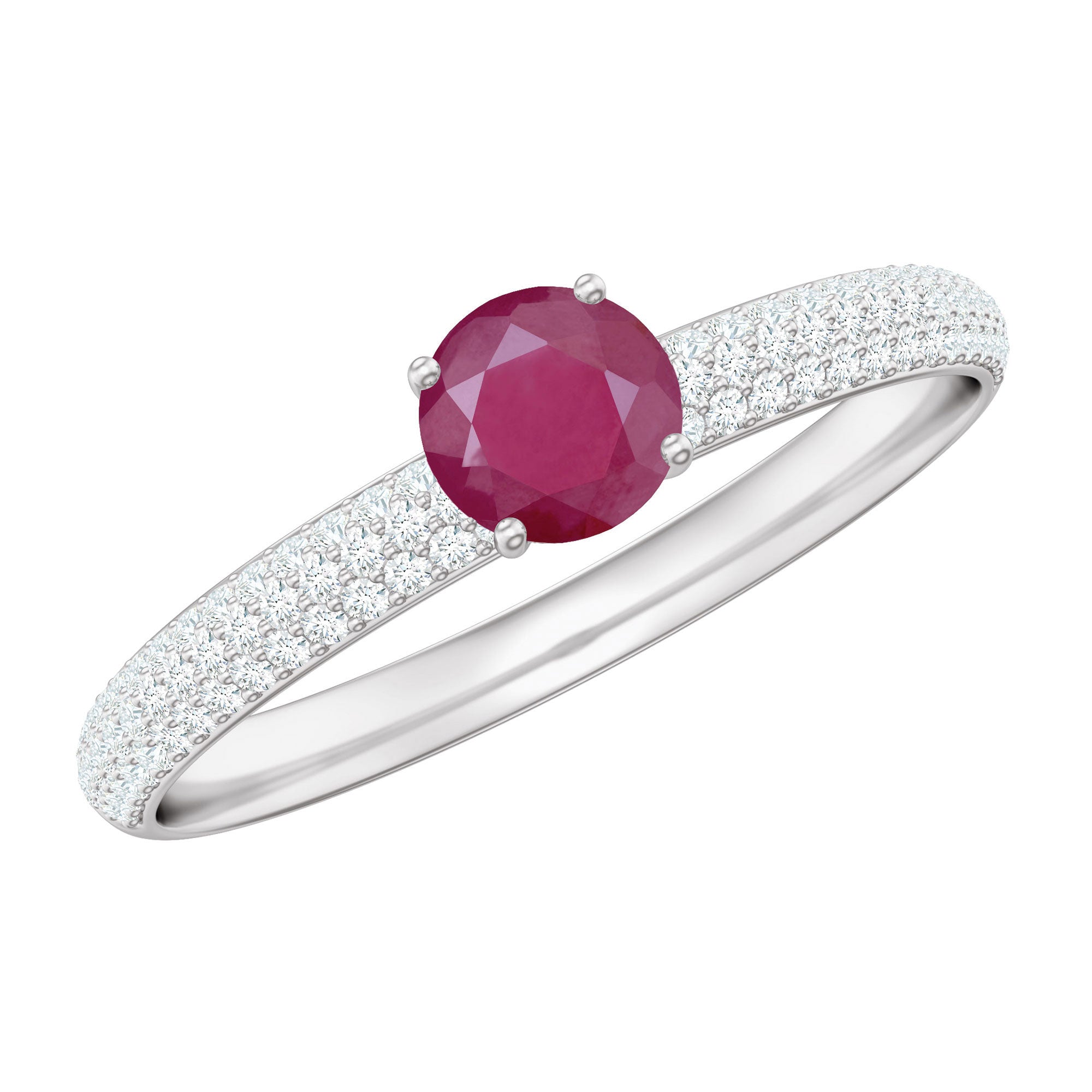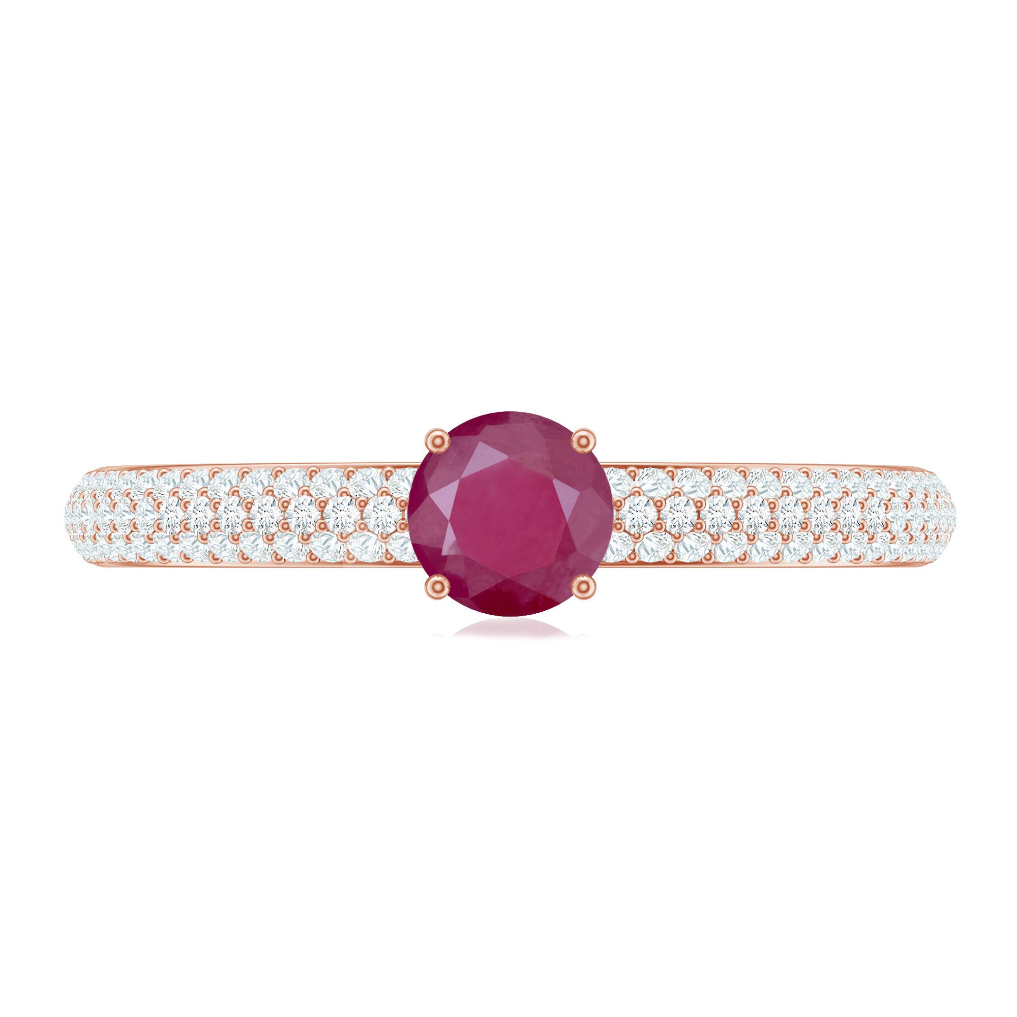 Natural Ruby Solitaire Ring with Diamond Side Stones