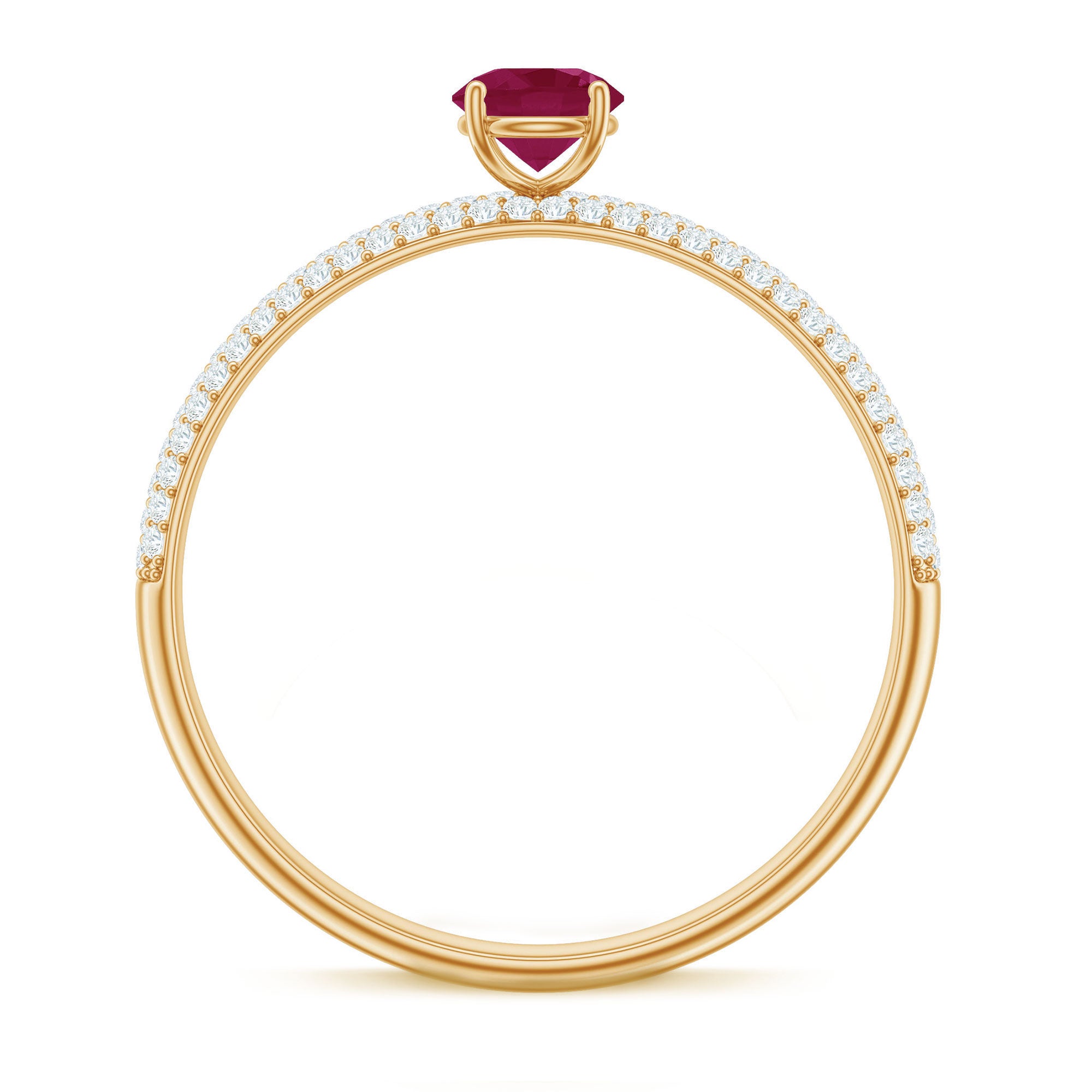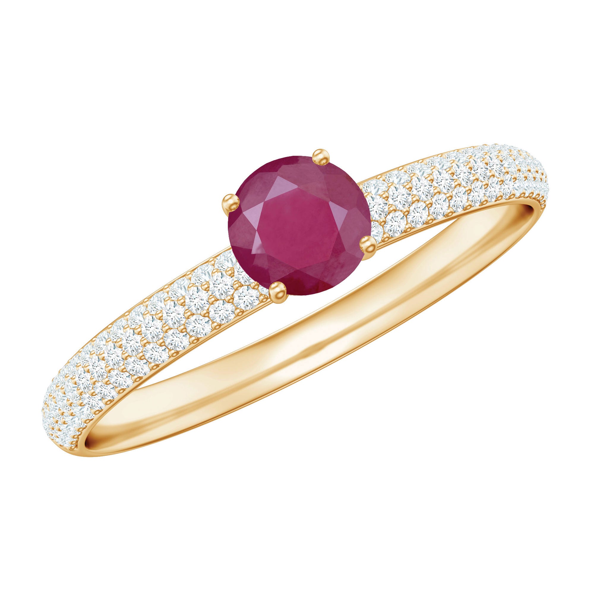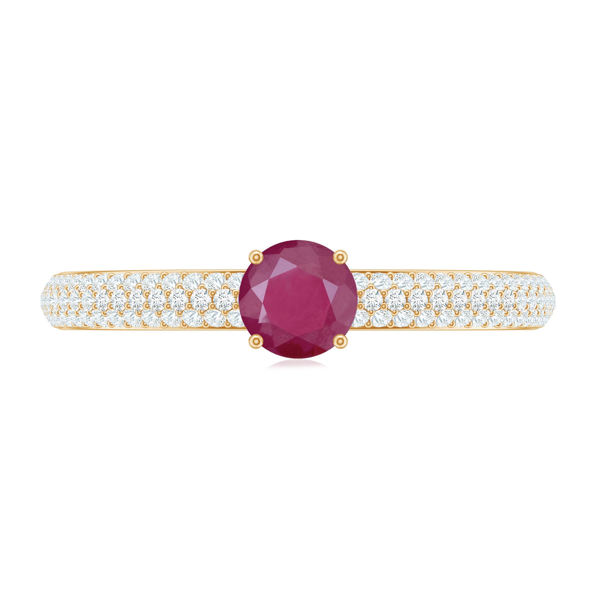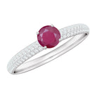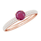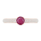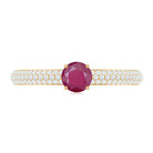 A gorgeous Ruby Cluster Ring that is sure to make a statement. Featuring a stunning round solitaire ruby at the center surrounded by small round Diamond stones in a pave setting, this party wear ring is crafted in gold. An ideal gift for weddings and anniversaries, it is a timeless piece that will be treasured for years to come.