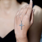 Natural Sky Blue Topaz Cross Pendant With Silver Chain
