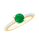 Natural Solitaire Emerald Promise Ring with Diamond Side Stones