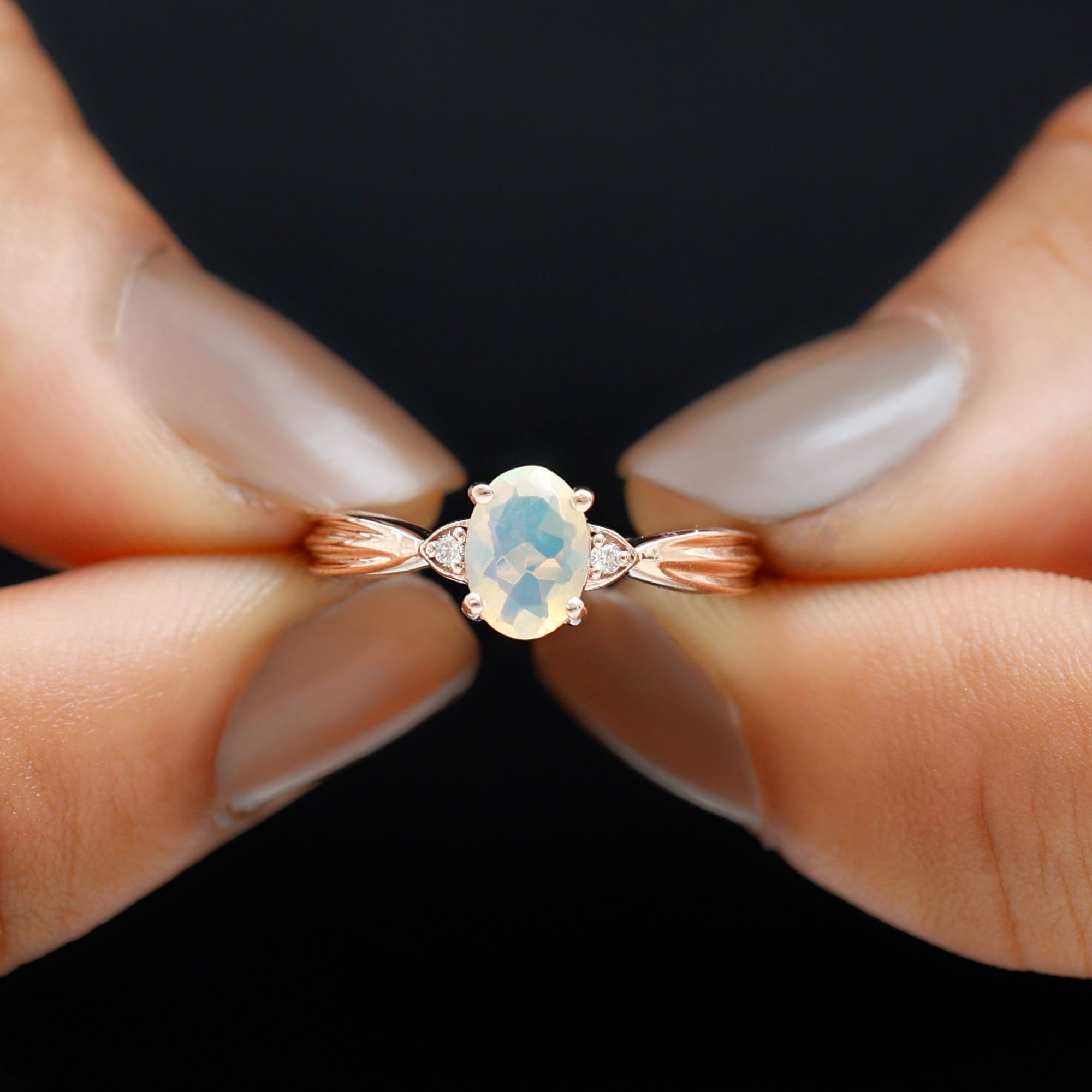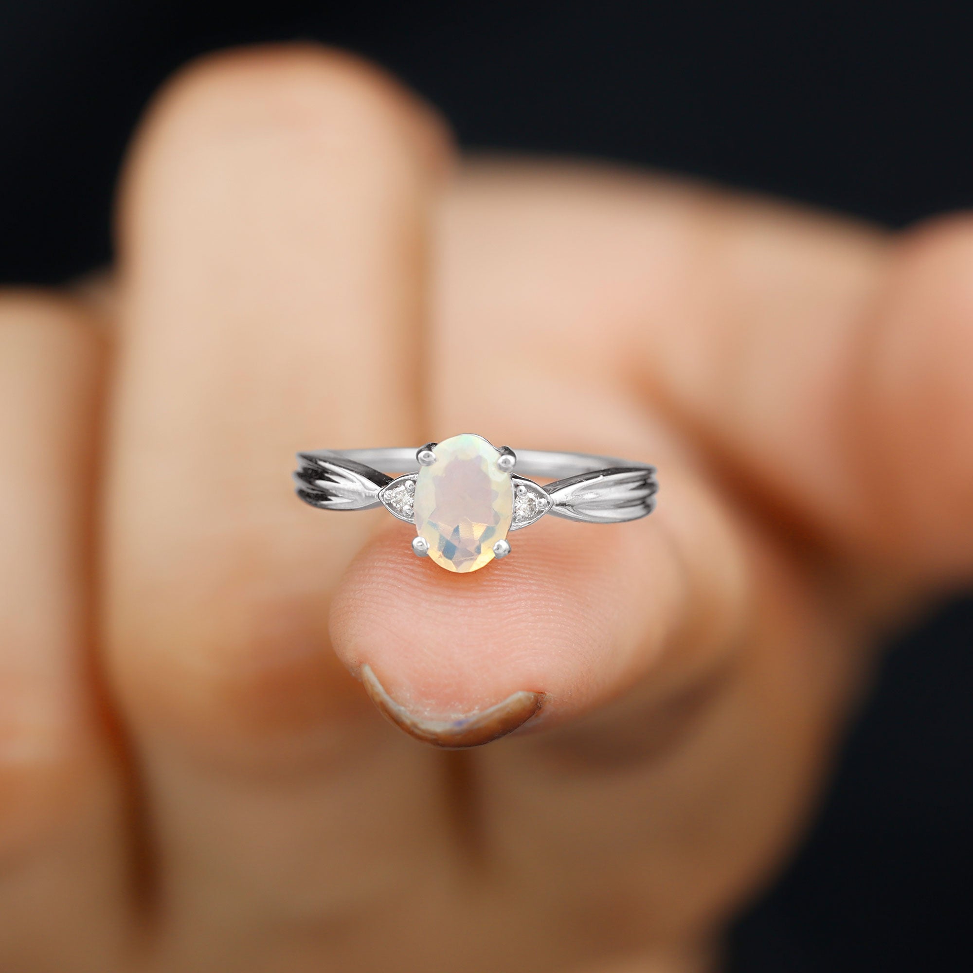 Simple, stunning and unforgettable, this Ethiopian Opal Engagement Ring is the definition of understated elegance with a touch of magic. Featuring a mesmerizing 5X7 mm Oval Shape Ethiopian Opal at the center in Prong Setting, this Solitaire Engagement Ring glows with an ever-changing play of color, symbolizing a love that is vibrant, evolving and eternal. Framing the Opal is a sparkling Diamond, delicately placed on either side for just the right hint of brilliance. The Pinched Shank design adds a graceful, modern design that draws the eye to the center stone, making it feel effortlessly refined. Whether you are planning a heartfelt proposal or gifting a promise of forever, this Oval Engagement Ring with Opal speaks volumes in the most meaningful way. Designed to be timeless yet unique, this Opal Diamond Engagement Ring is a perfect fit for anyone who believes that true love simply shines. Packaged in a beautiful jewelry box and available in multiple sizes, this Opal Diamond Ring is ready to become a cherished part of your story. Romantic, radiant and refreshingly real, this Oblong Engagement Ring is a moment, a memory and a forever kind of feeling.