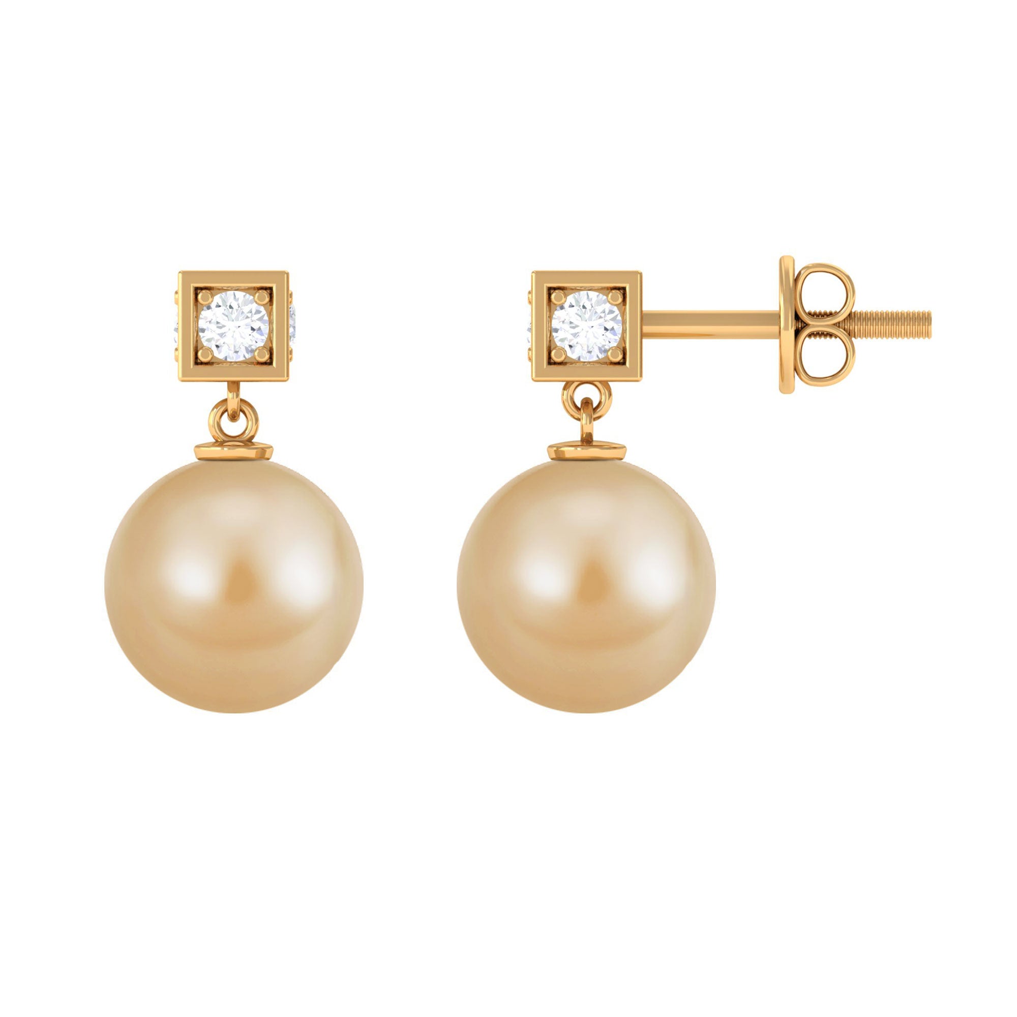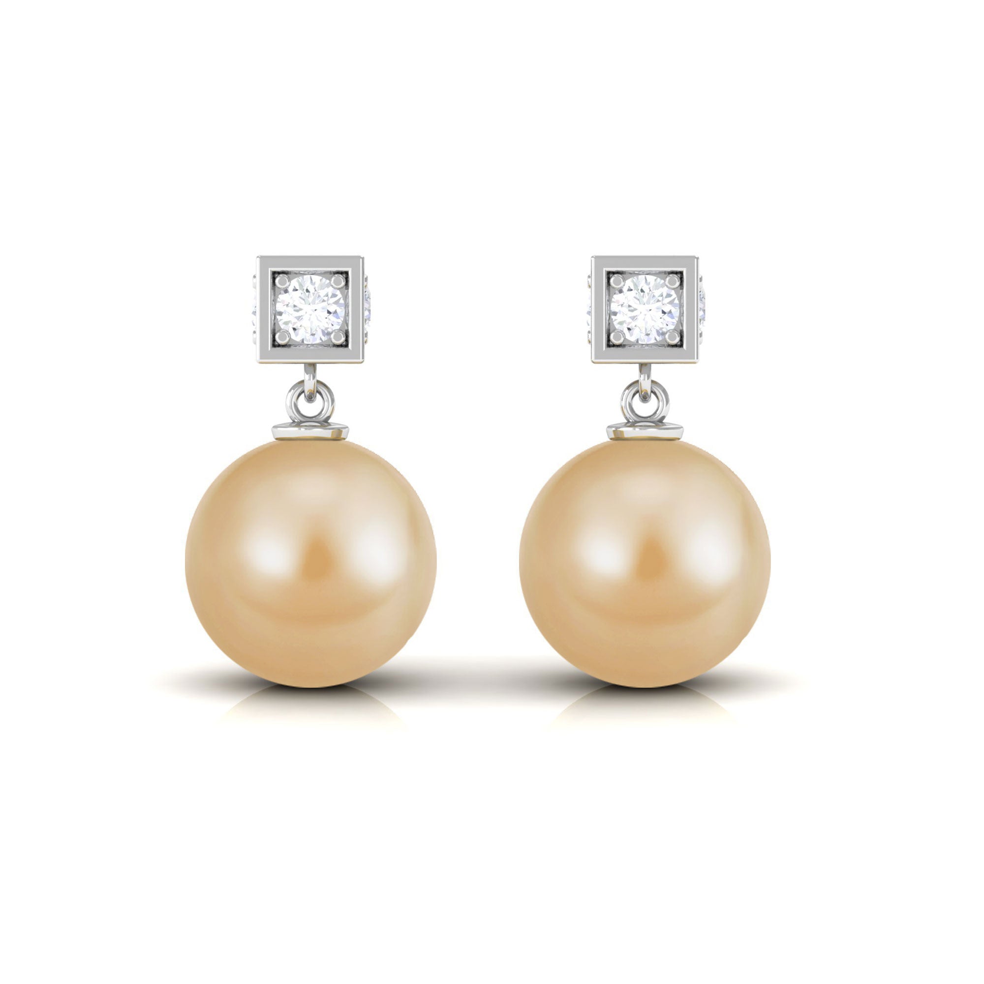 A spectacular and stunning Diamond South Sea Pearl Earring is embellished with a Round Diamond. The solitaire South Sea Pearl is captivating and attention-grabbing. Add oomph to your personality with this South Sea Pearl shimmering centerpiece.