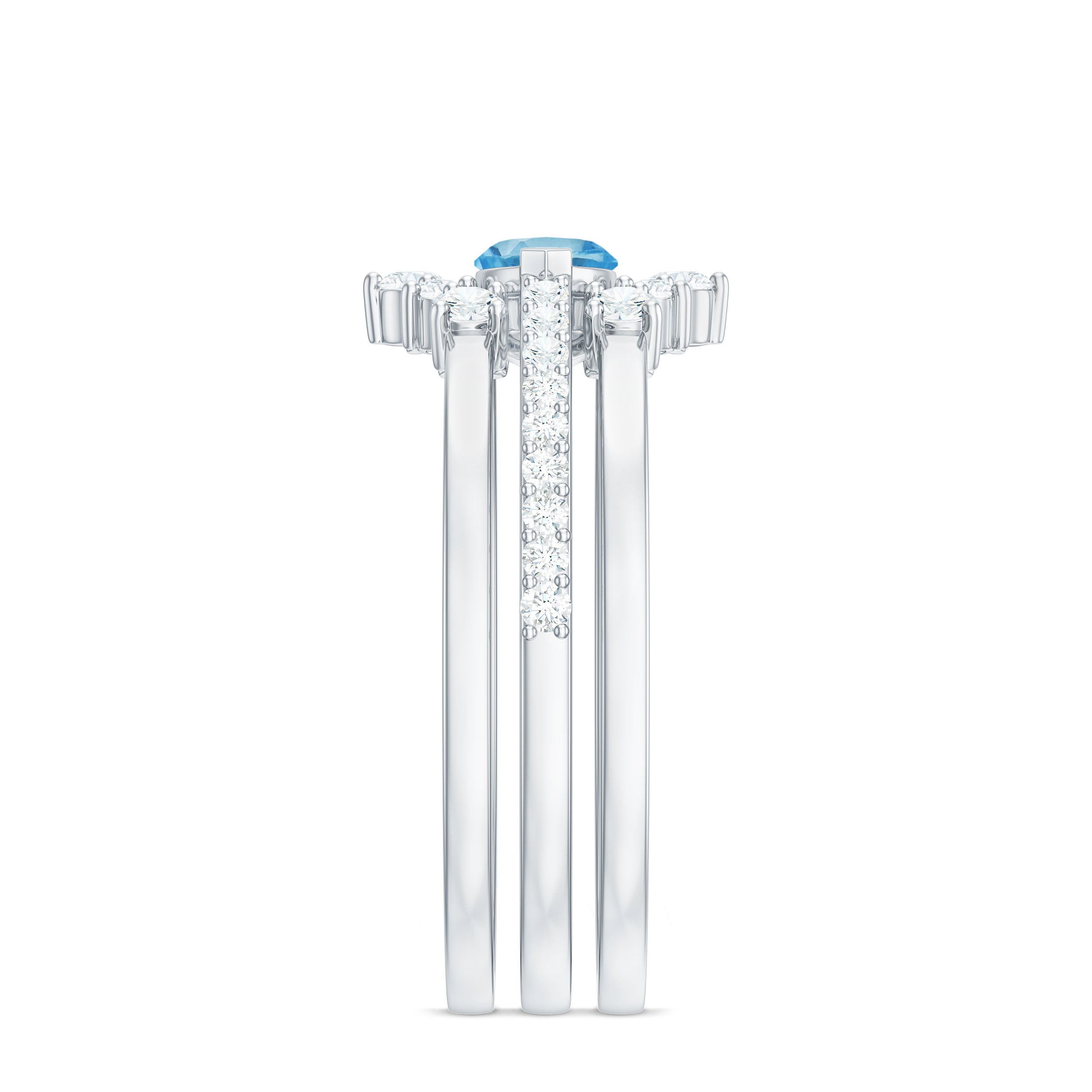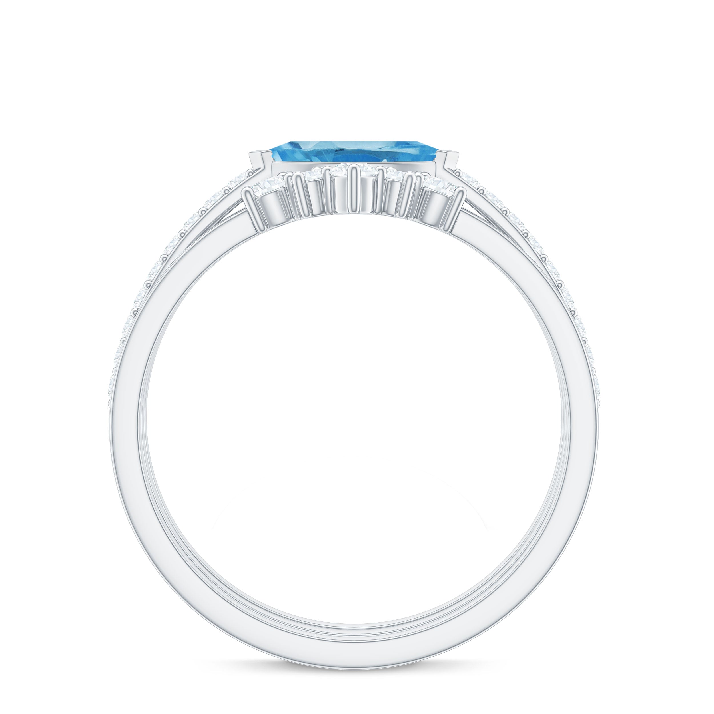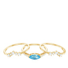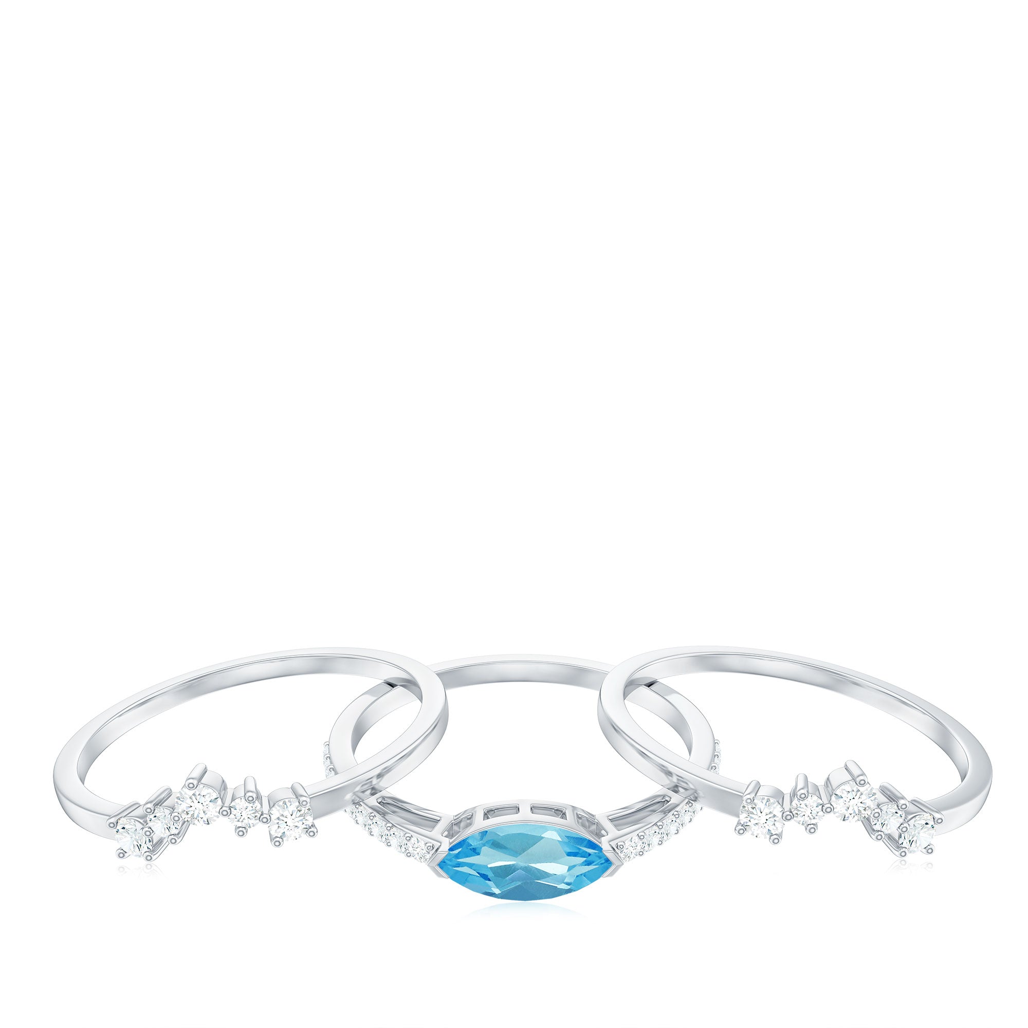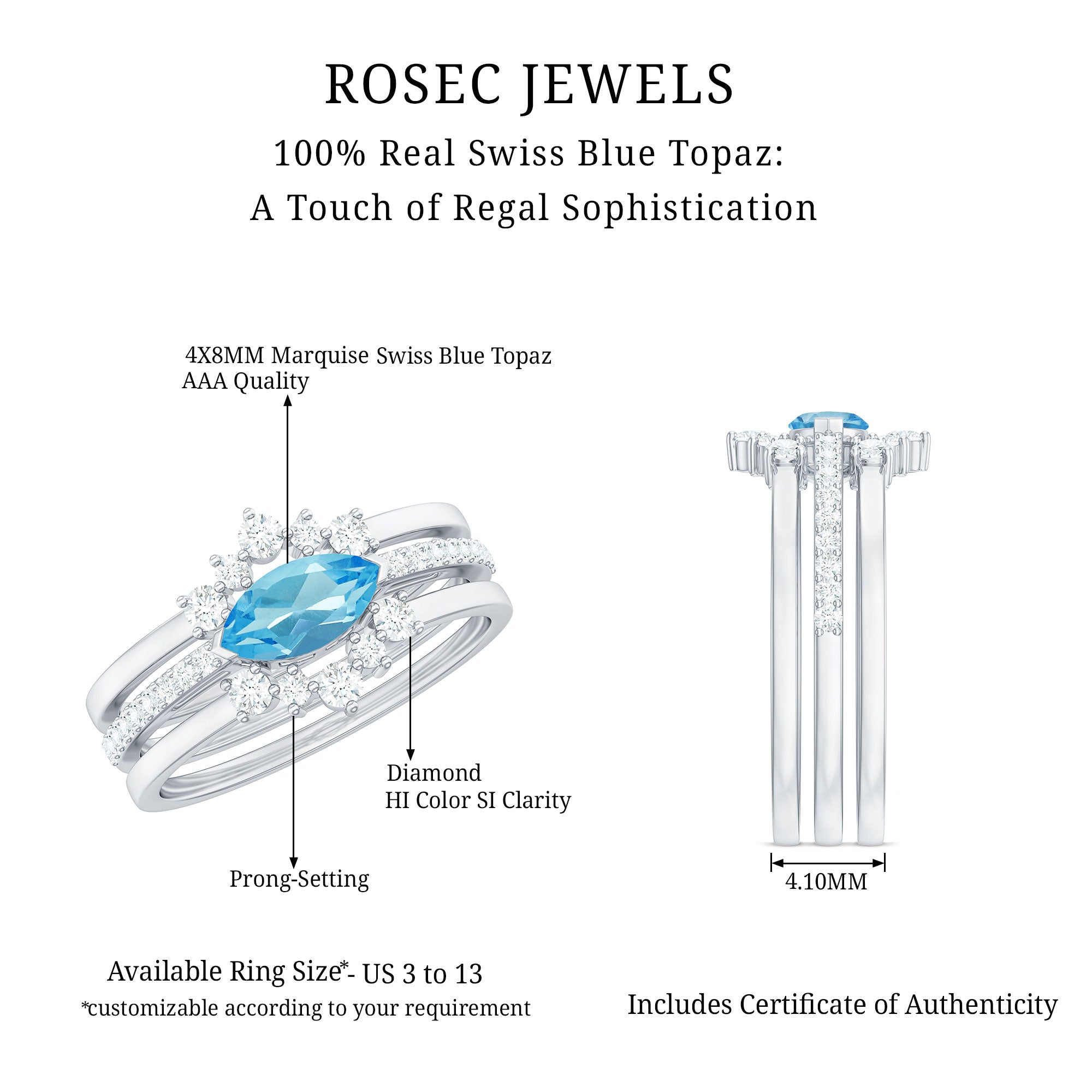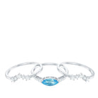 Experience the divine phenomenon with this Ring Set of 3, where enchantment meets brilliance. The mesmerizing Marquise Shape Swiss Blue Topaz gemstone is set horizontally in Prong Setting with sparkling Diamond gemstones. Embrace the magic of this Blue Topaz Ring Set, a symbol of eternal love and timeless allure.