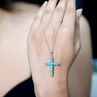 Natural Swiss Blue Topaz Cross Pendant Necklace with Chain