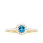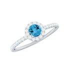 Bedazzle everyone when you flaunt this Solitaire Ring studded with a 4 MM Swiss Blue Topaz Solitaire in the center accentuated by a Round Brilliant Diamond Halo and Side Stones making this ring as unique as you.