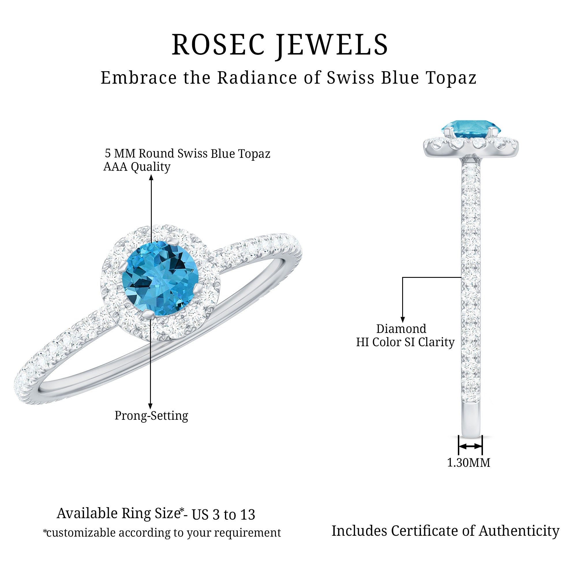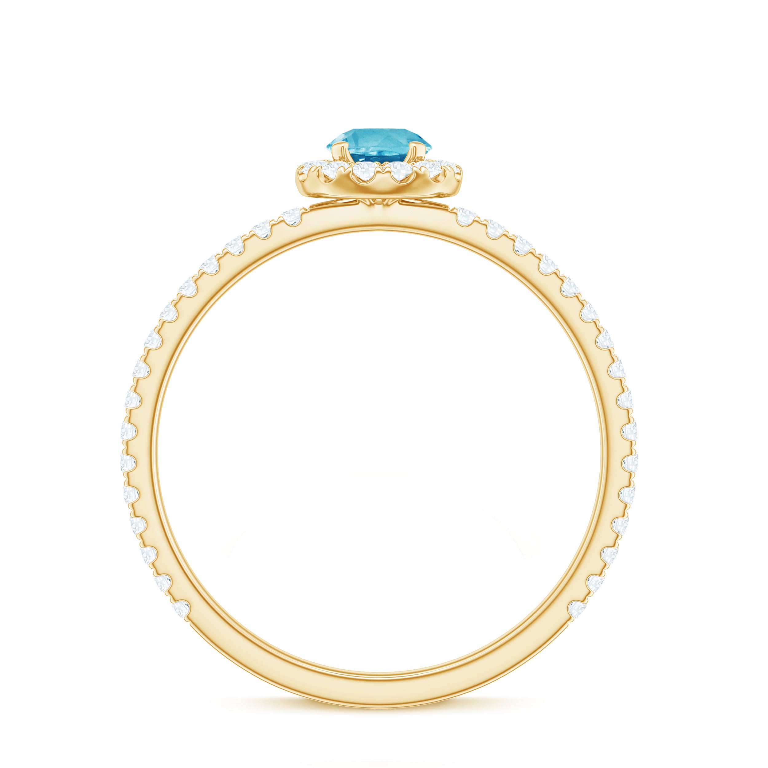 Natural Swiss Blue Topaz Halo Engagement Ring with Diamond
