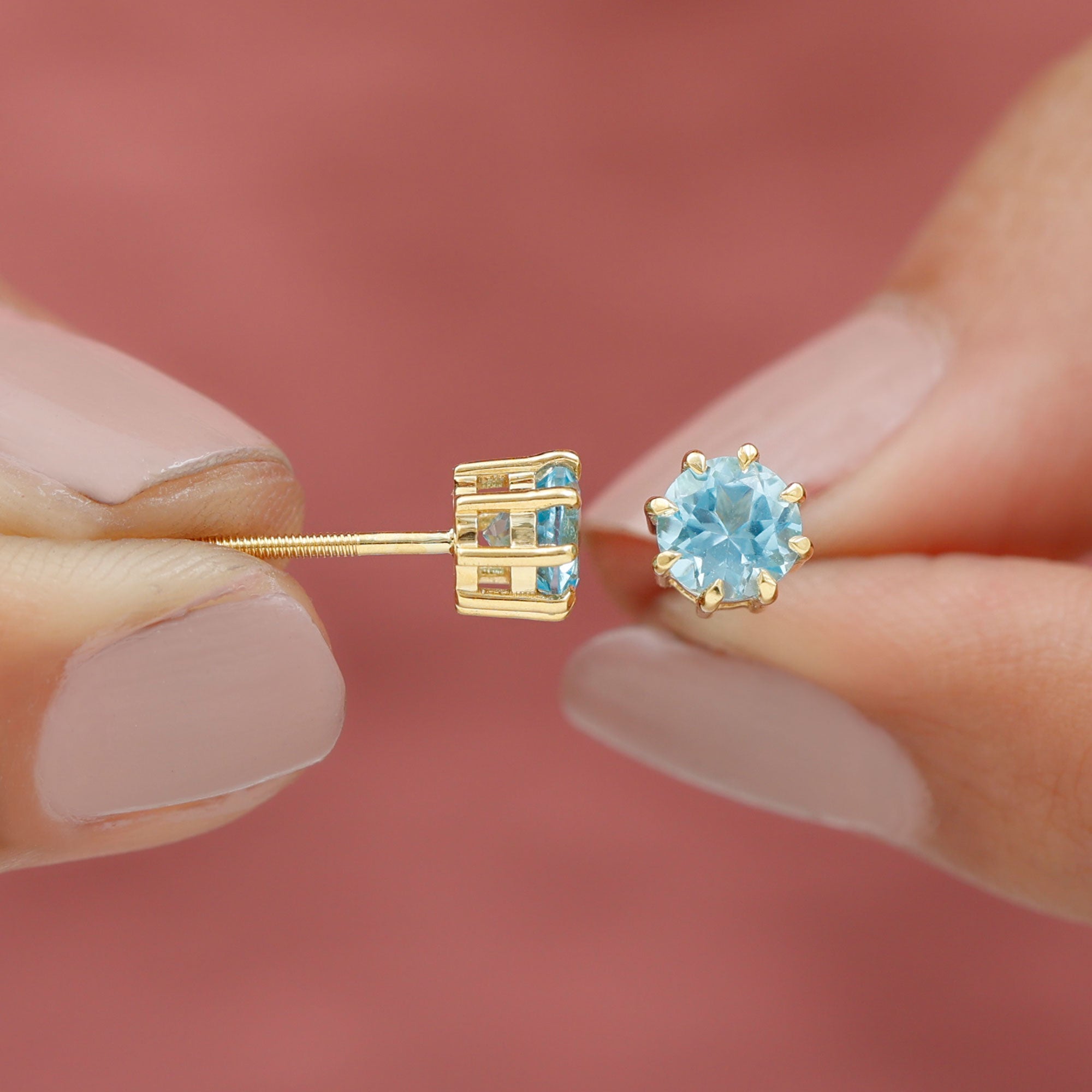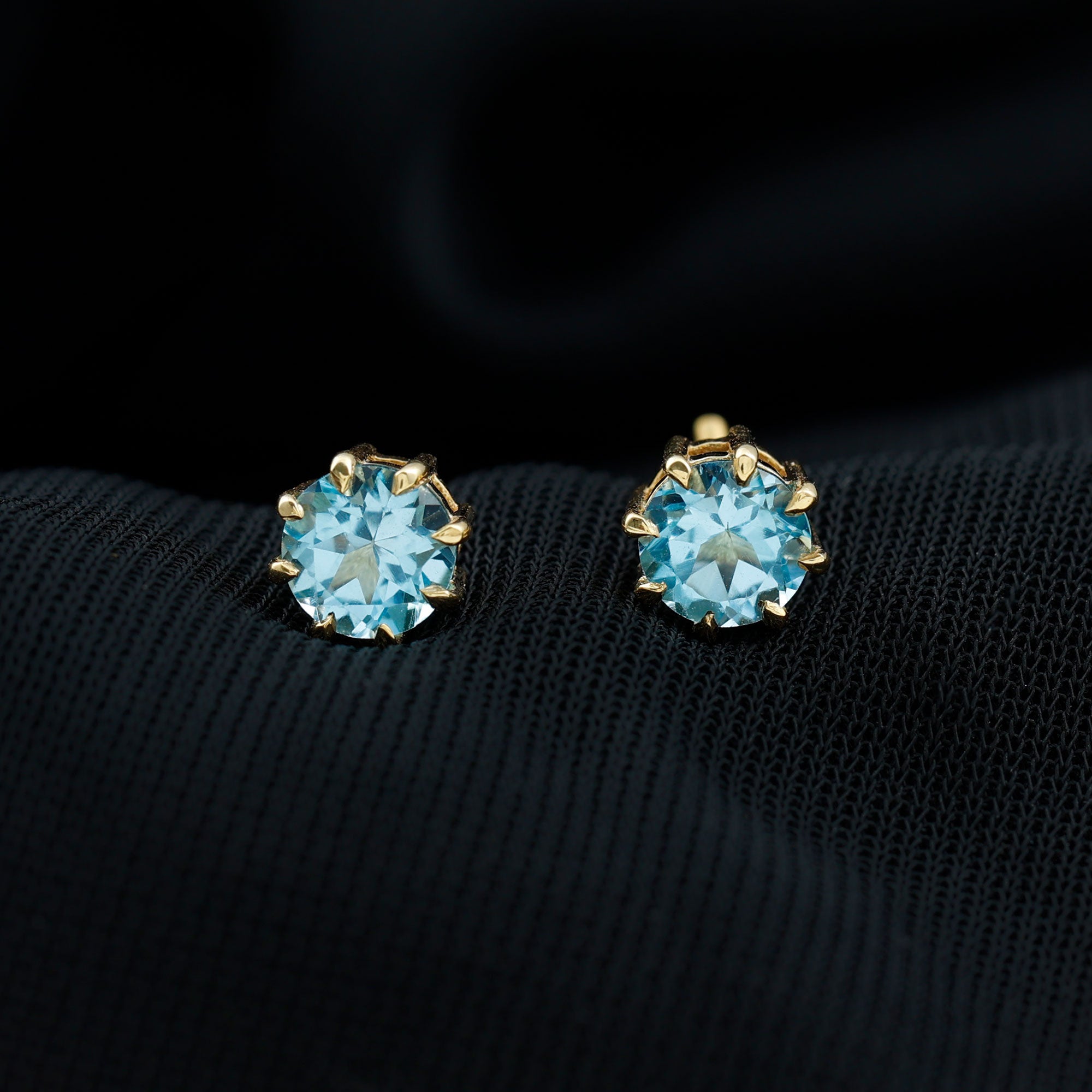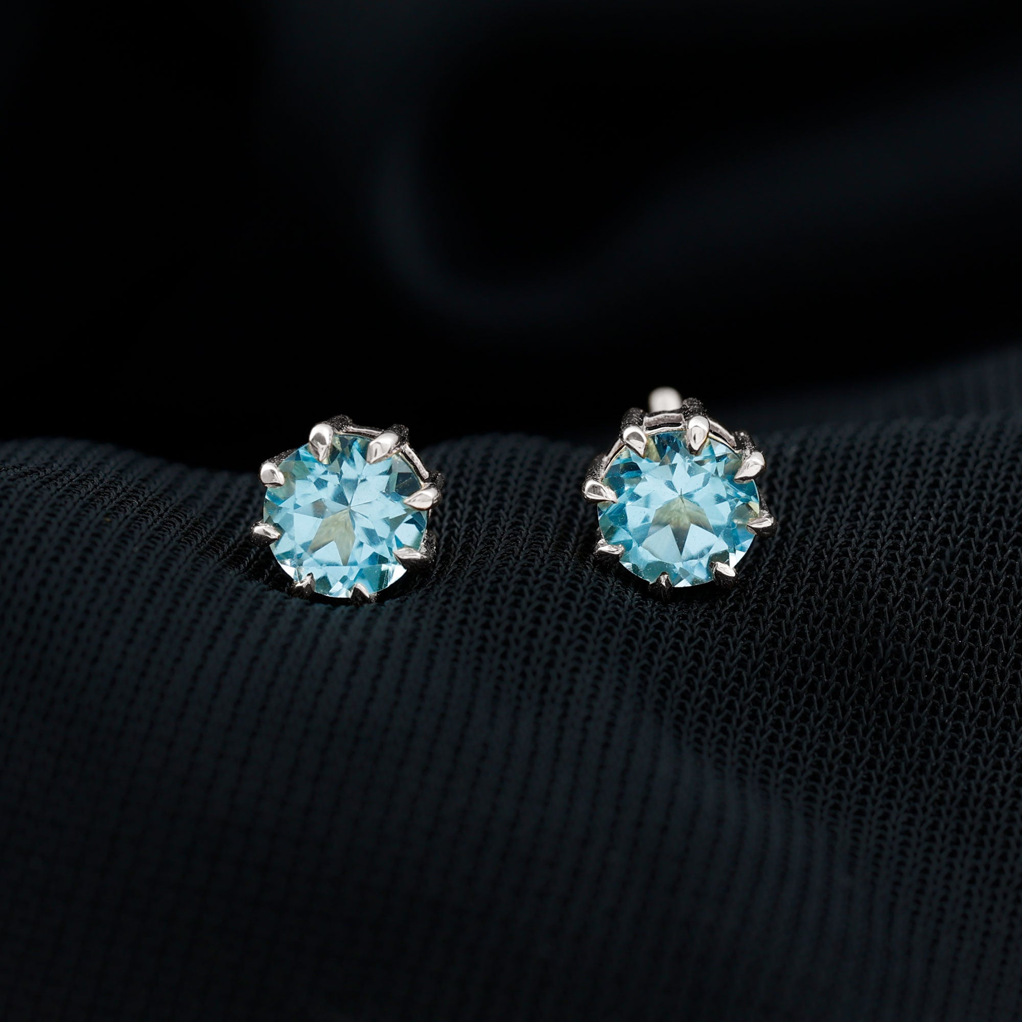 Natural Swiss Blue Topaz Solitaire Stud Earrings in 8 Claw Prong Setting