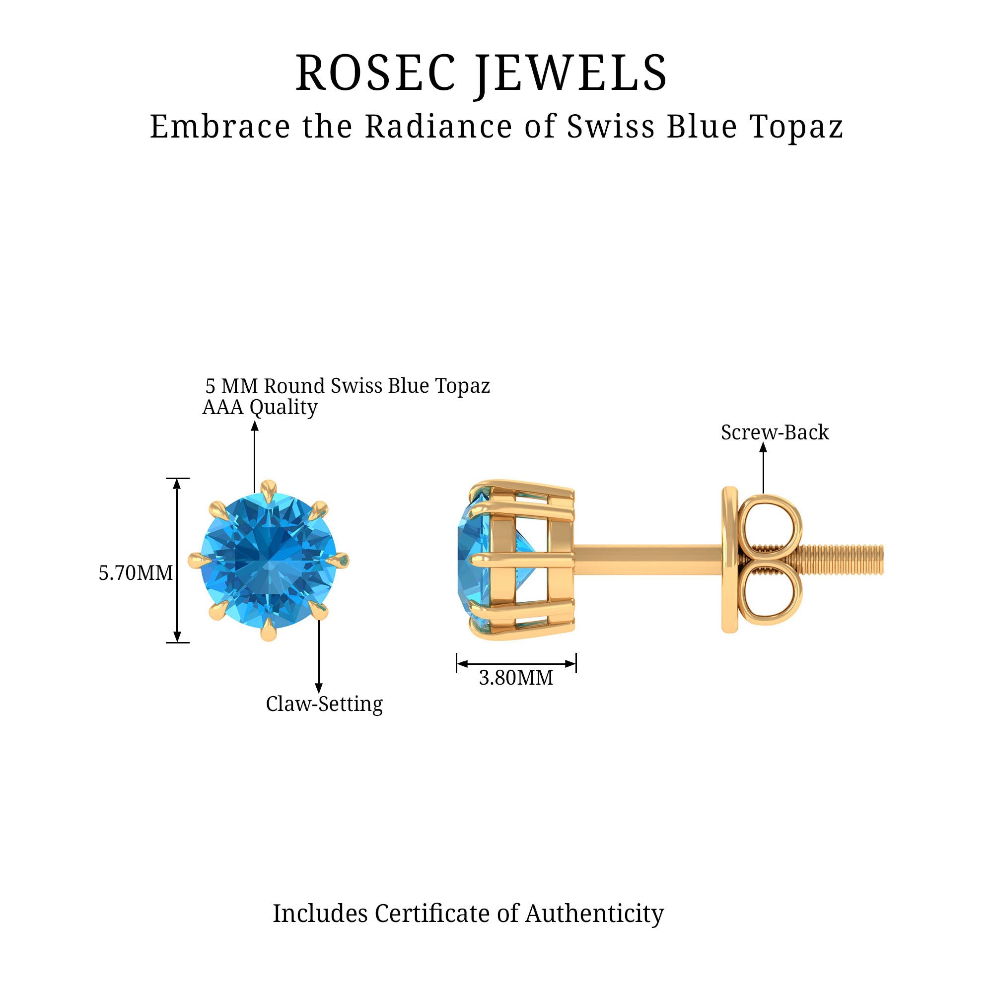 Elevate your style with these exquisite Solitaire Earrings, adorned with brilliant round shape Swiss Blue Topaz gemstones securely nestled in an elegant 8 Claw Prong Setting. These stud earrings are the ideal choice for those seeking fine jewelry that effortlessly enhances simple and subtle looks, adding a touch of sophistication and grace to any ensemble.