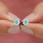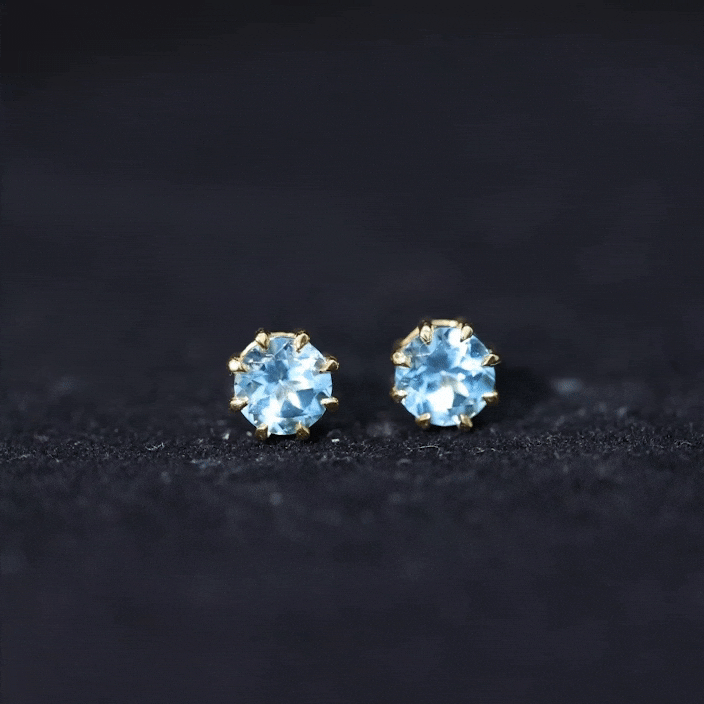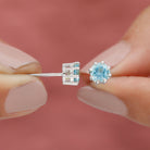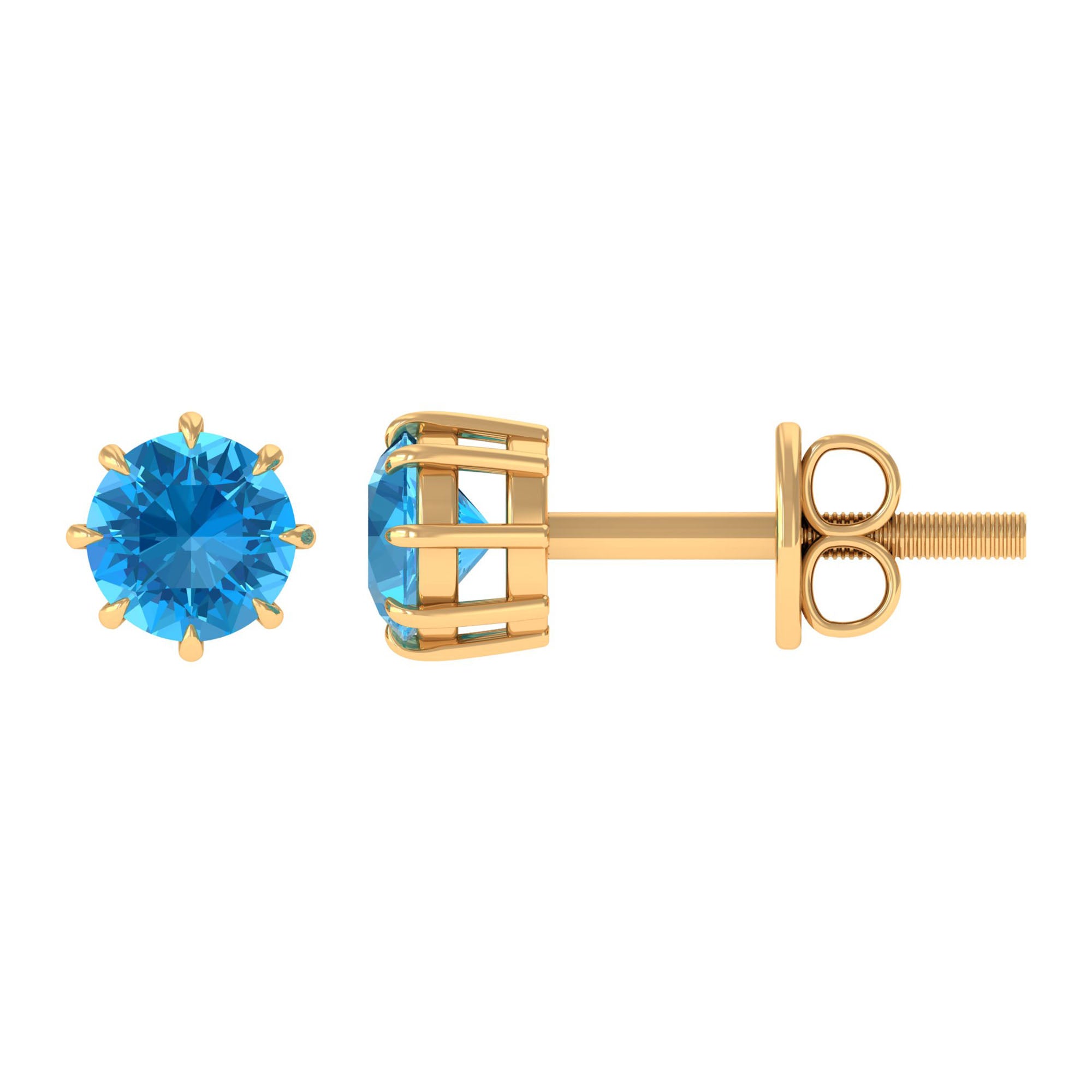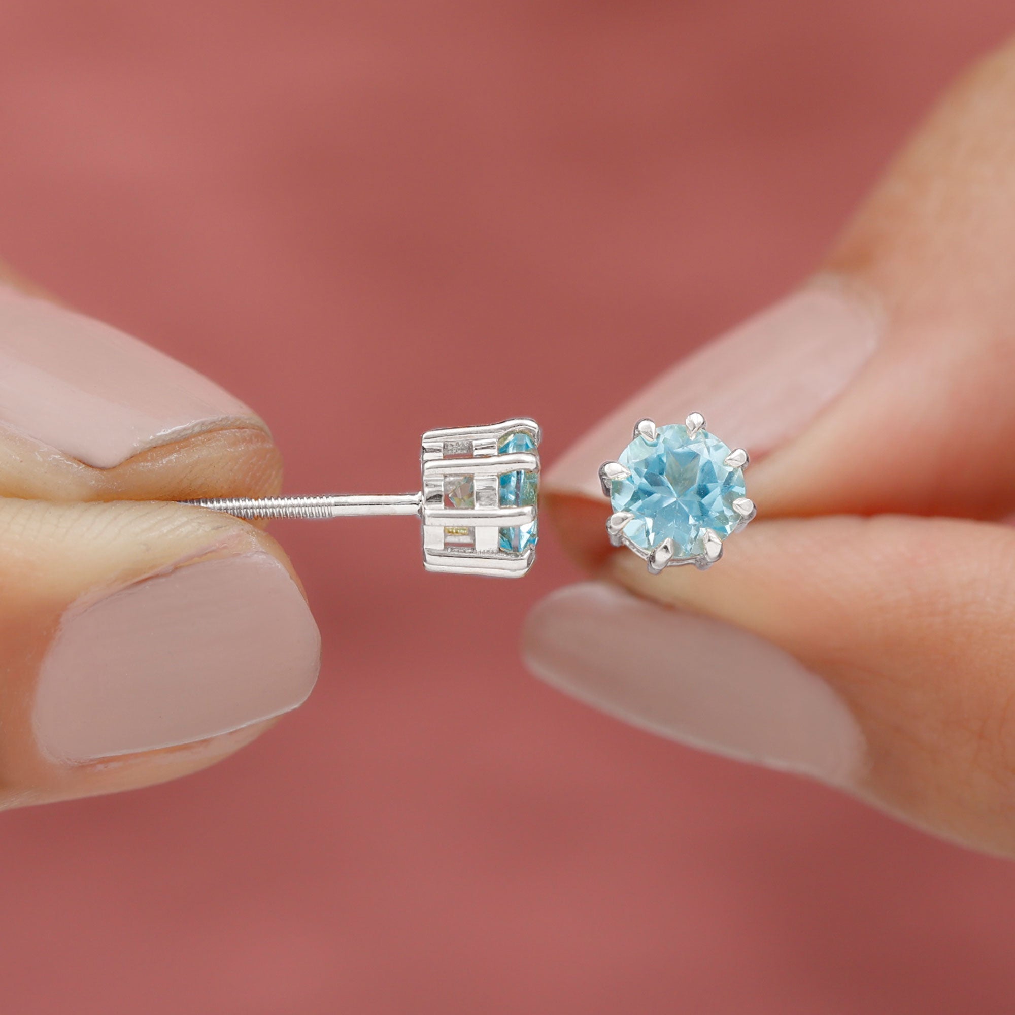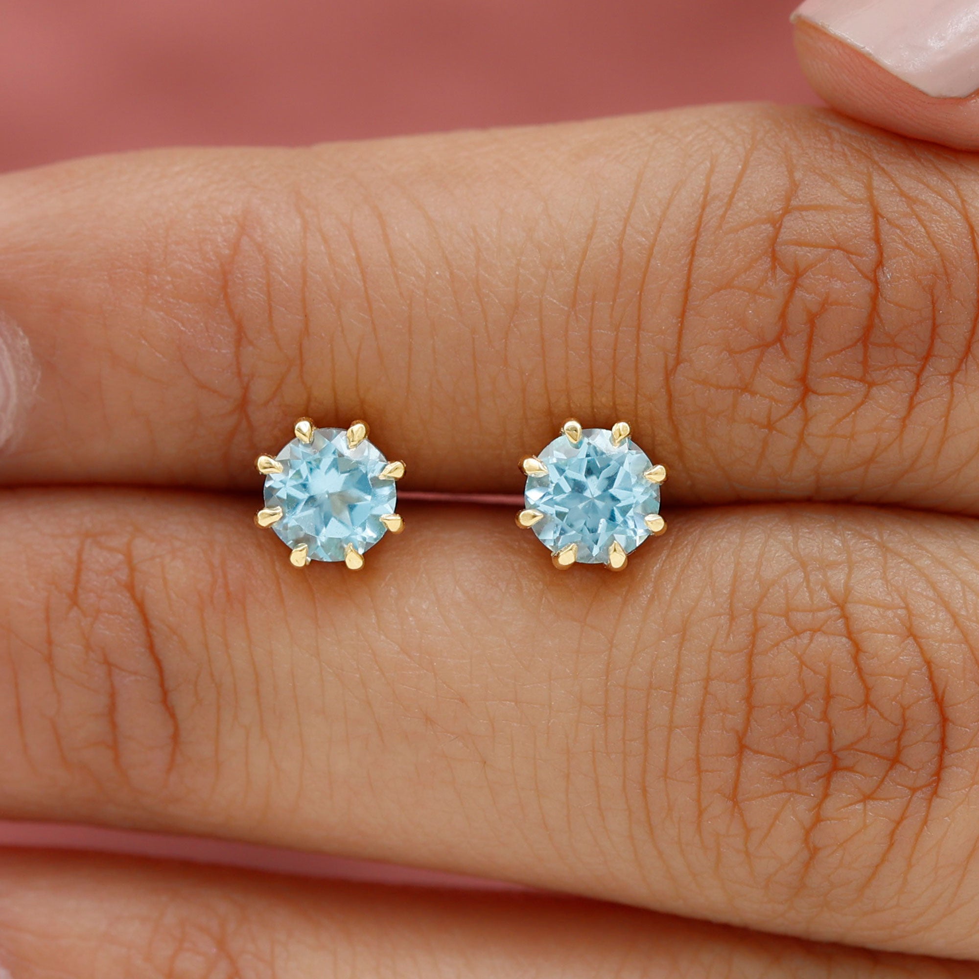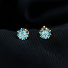 Natural Swiss Blue Topaz Solitaire Stud Earrings in 8 Claw Prong Setting