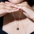Highlight your neckline with this exquisite Pearl Drop Pendant featuring a breathtaking 10 MM Round Shaped Tahitian Pearl (AAA quality), dangling from a unique arrangement of round cut moissanite stones. Suspended from a fine chain, this Black Pearl Necklace is a testament to both luxury and classic choices. This Dangle Pendant Necklace makes an ideal anniversary or birthday gift, perfect for celebrating the love and connection you share. Whether walking down the aisle or celebrating a special moment, this Bridal Necklace is the ideal accessory to add grace and glamour to your big day. Also, it comes with a Certificate of Authenticity, ensuring exceptional craftsmanship and quality.