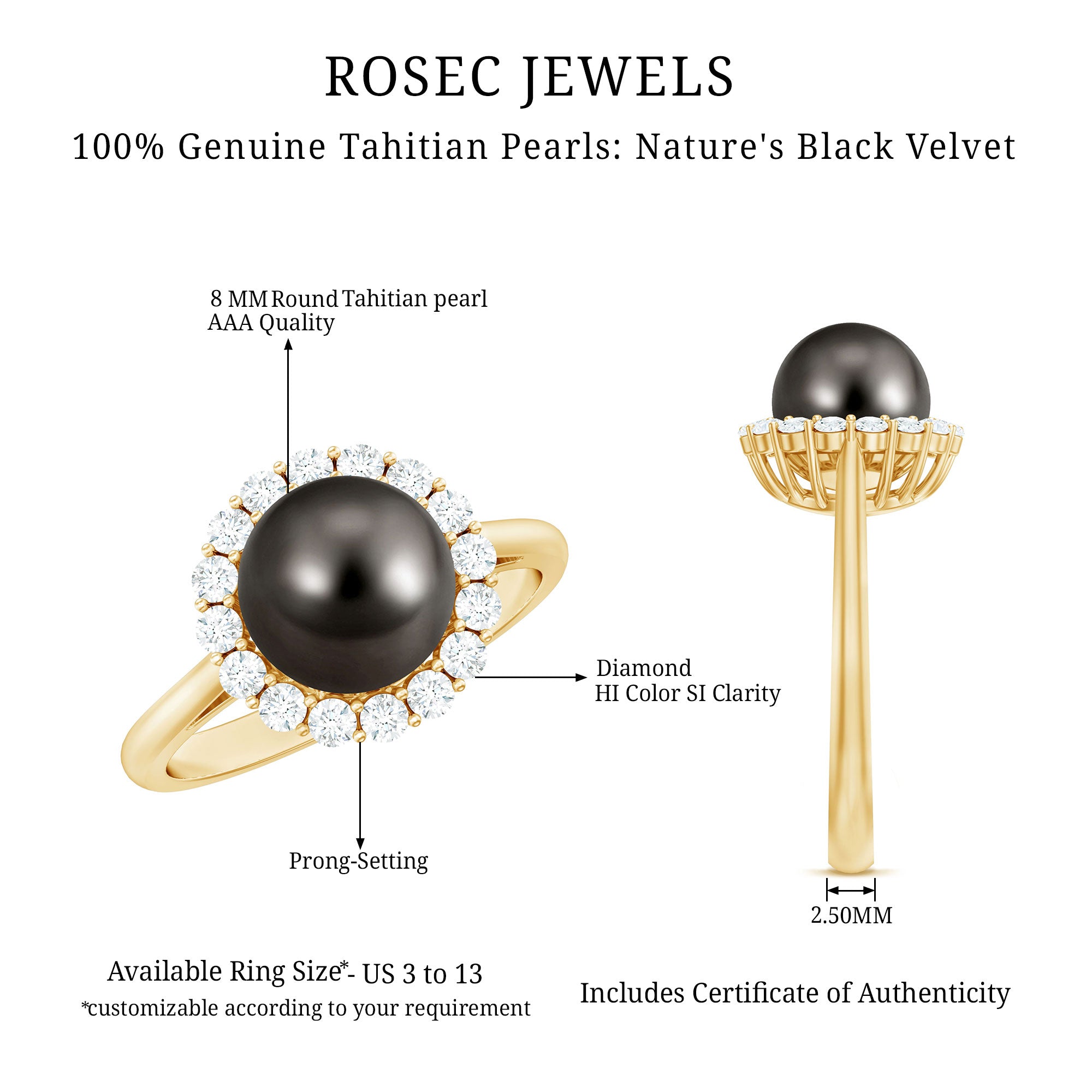 Tahitian pearls are formed naturally within certain species of oysters and are admired for their rich color and unique luster. Unlike traditional white pearls, Tahitian pearls display darker tones that offer a dramatic and sophisticated look.