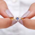 Promise your love and commitment to your special someone with this exquisite Tanzanite Diamond Promise Ring. The 5 MM Round Shape Tanzanite stone is beautifully adorned in a Claw Setting, and the addition of Diamond stones adds even more charm to this stunning ring. Show your devotion and promise to never leave her side with this beautiful and timeless piece of jewelry.