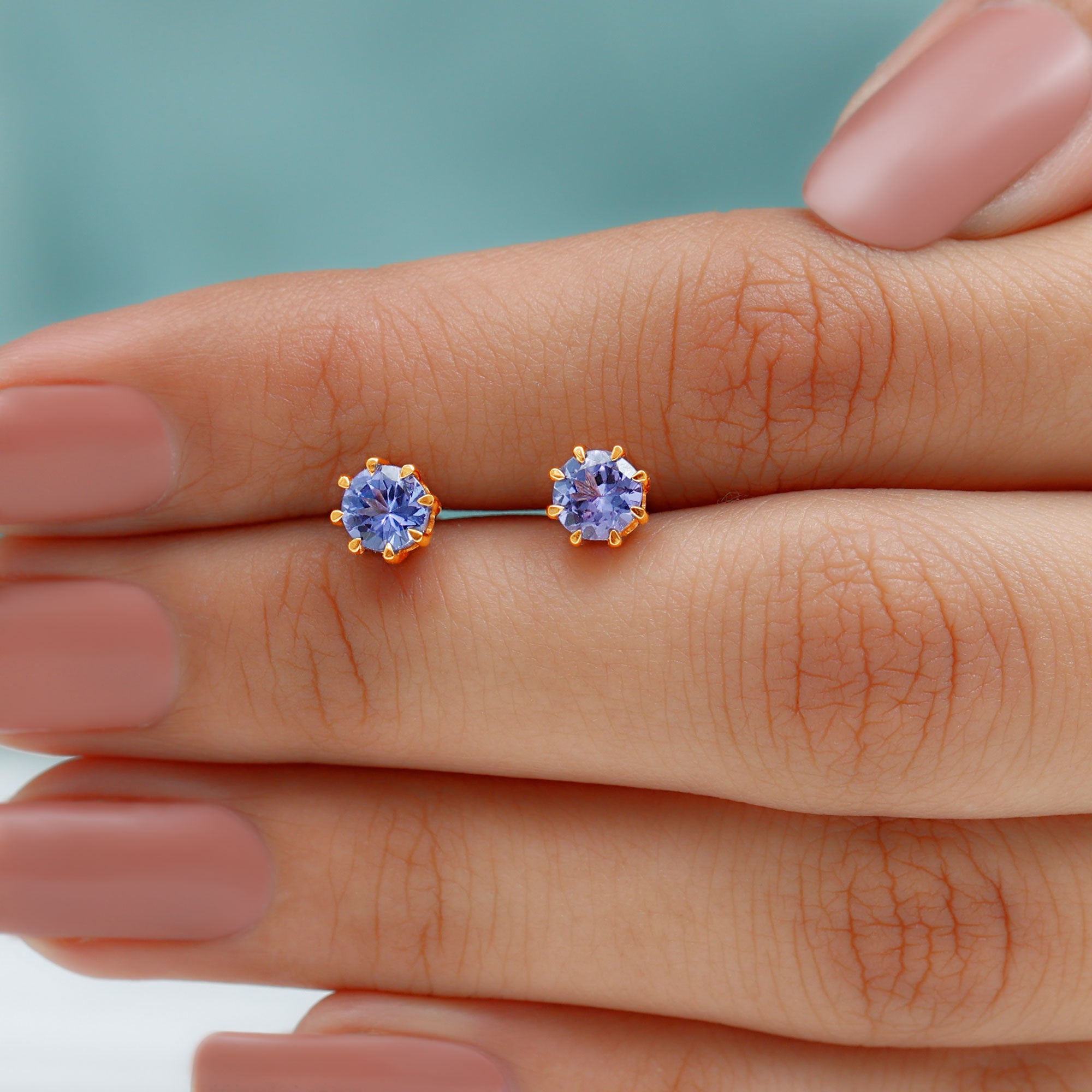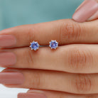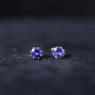 Natural Tanzanite Solitaire Stud Earrings in 8 Claw Prong Setting