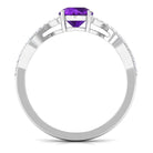Pop the question with an Amethyst Engagement Ring as elegant as her! It displays the grand center stone of 7 MM Round Shape Amethyst secured by Prong Setting that very effortlessly manages to steal the limelight with its royal pop of purple. It is nestled atop a band inspired by the lush flora of nature, the beauty of which is best brought out by the embellishment of Round Shape Diamond over it. Let this Certified Amethyst Engagement Ring forever serve as the true testament of your timeless love.