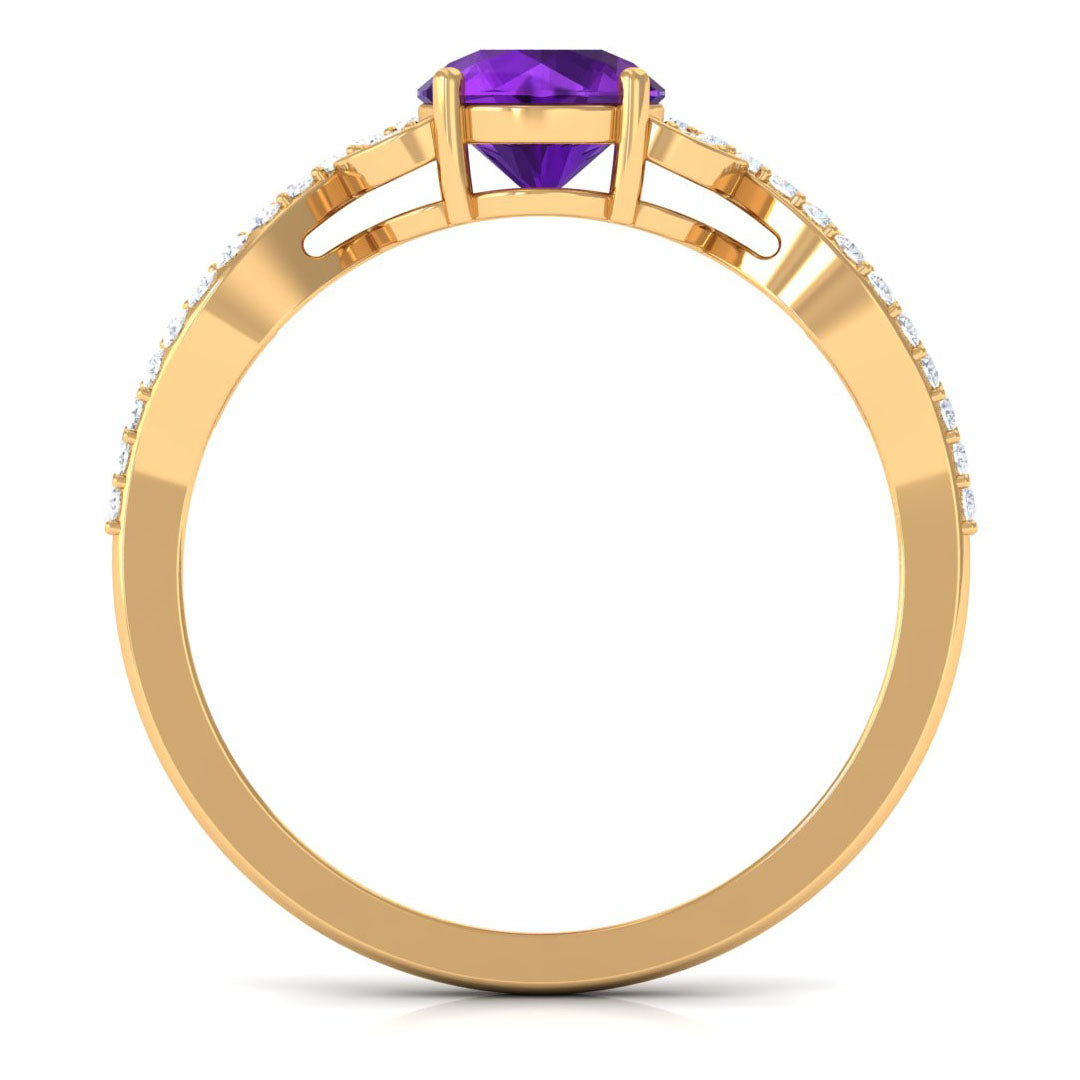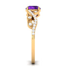 Nature Inspired Amethyst and Diamond Solitaire Engagement Ring