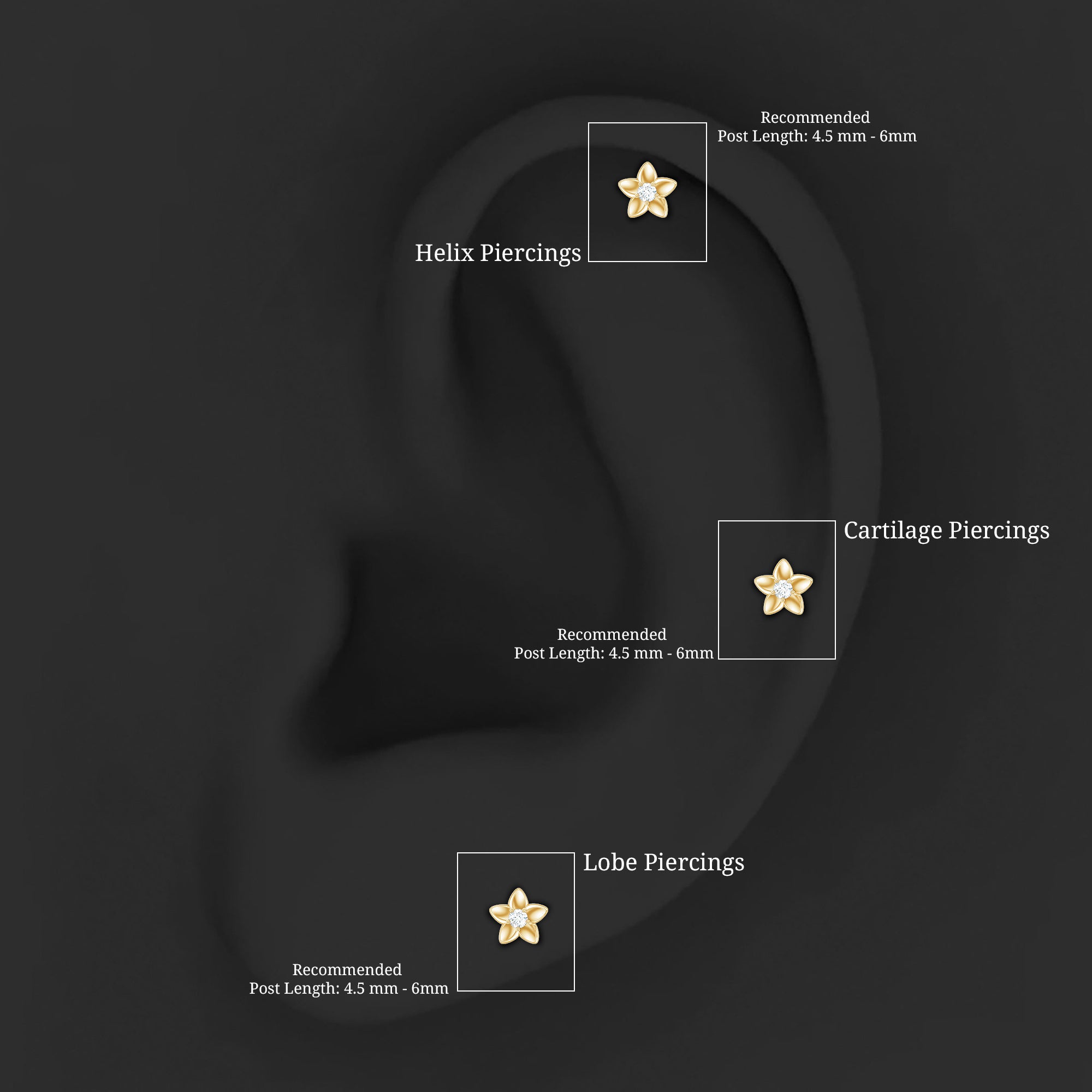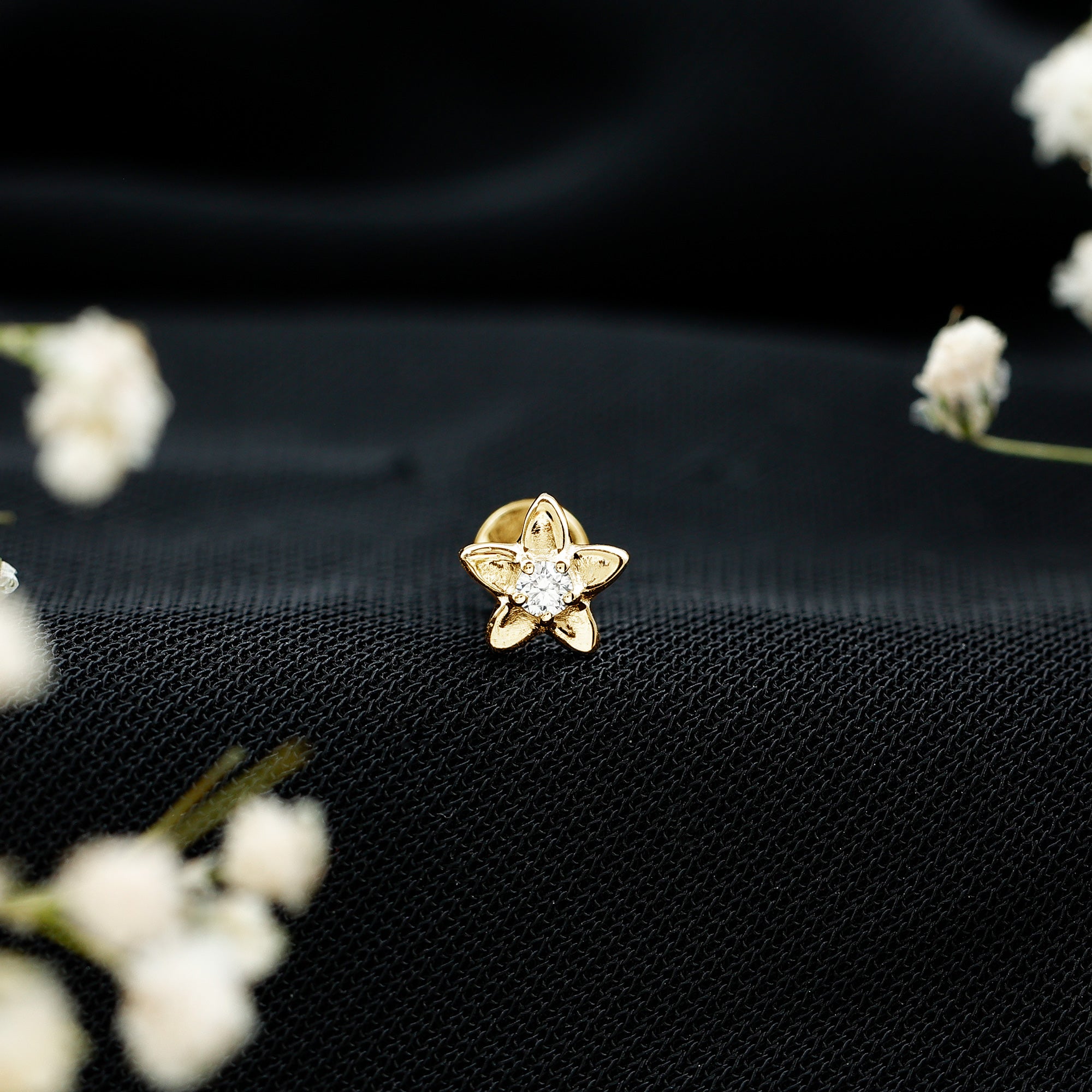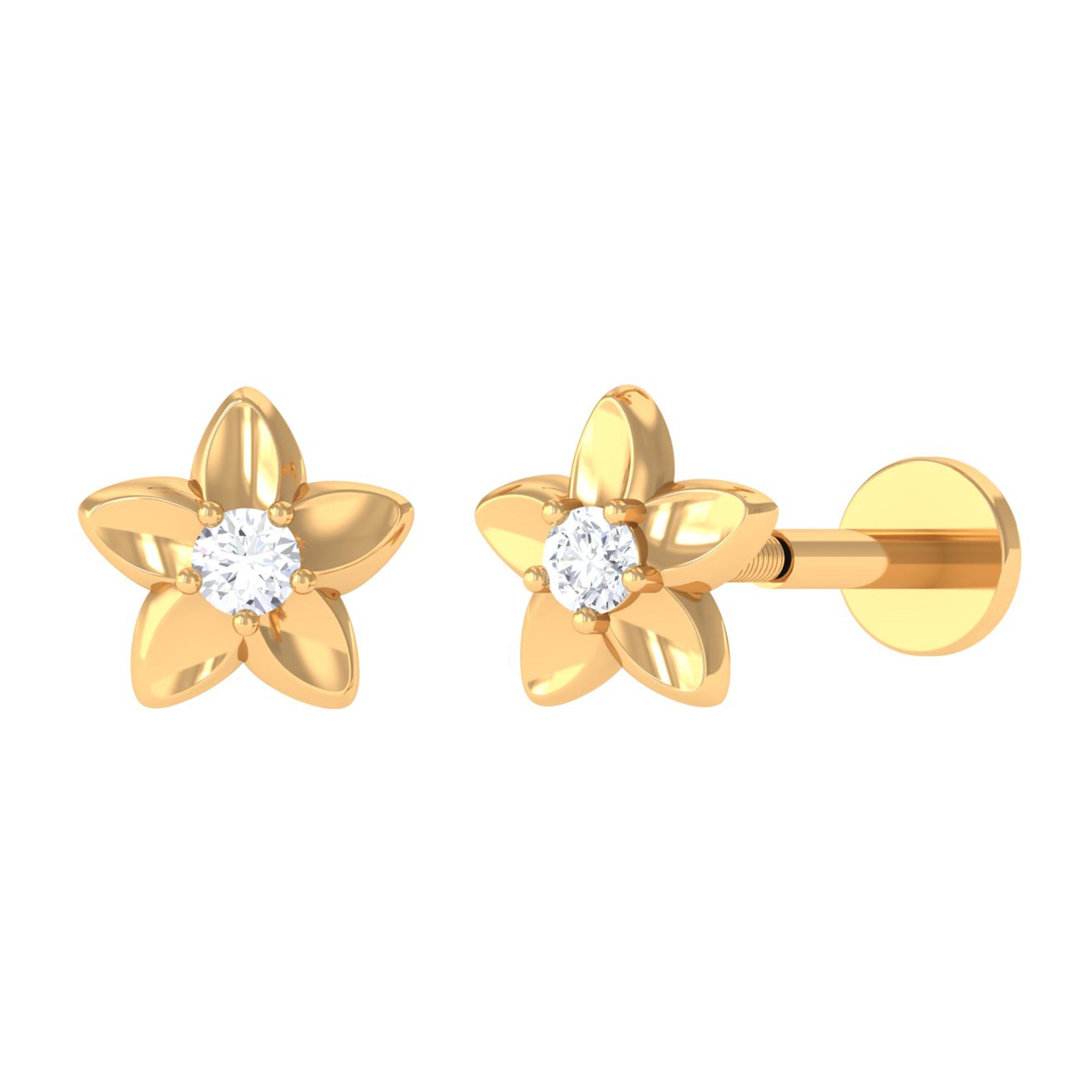 Inspired by nature – introducing the Diamond Earring! Breathtaking Round Diamond secured by Prong Setting studded on a floral design, which possesses a feminine glamour. This bling is all about that snug fit in your Cartilage, Helix, or Upper Lobe Piercing, the simple flat back closure will keep it locked in place.Whether you are brunching with the crew or spicing up date night, our Floral Earring is your ride-or-die accessory. Get ready to slay, and let the leaves do the talking!Make your special ones day extra-lit with this stunning Piercing Earring. Its the ultimate gift for birthdays or anniversaries.