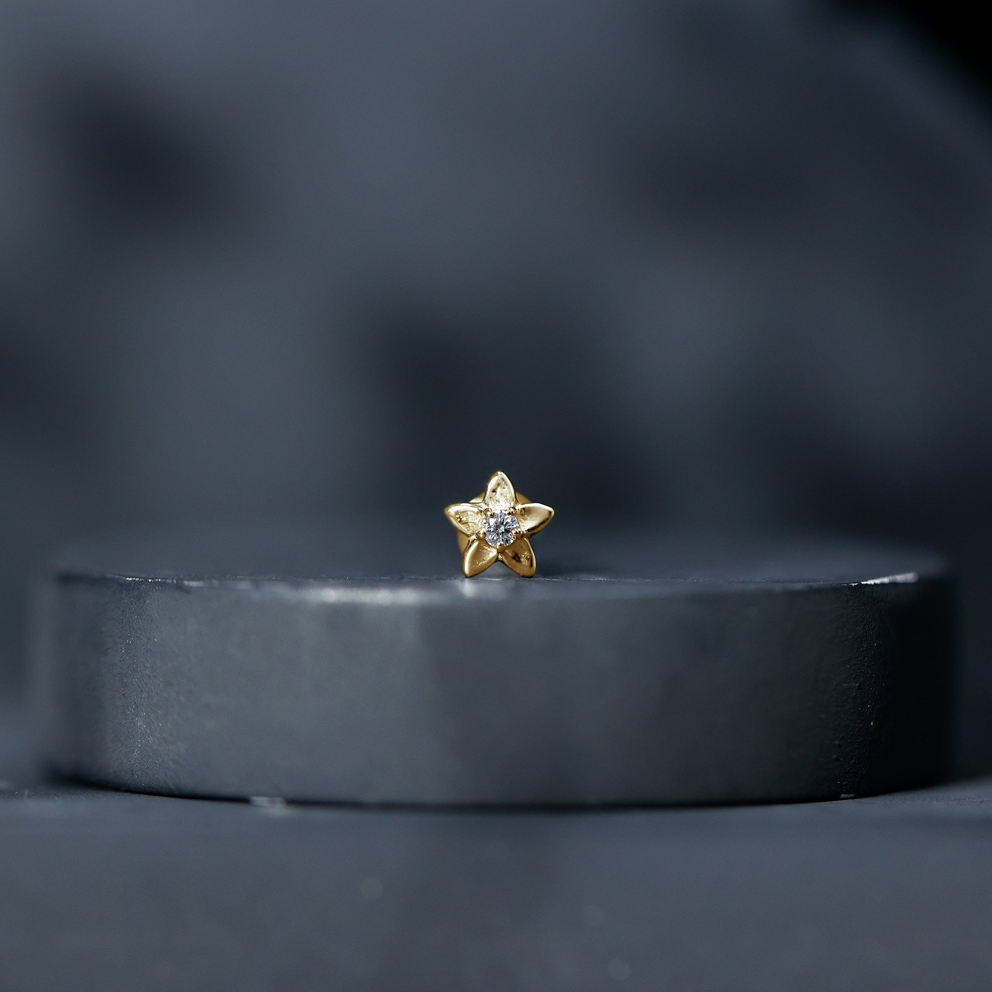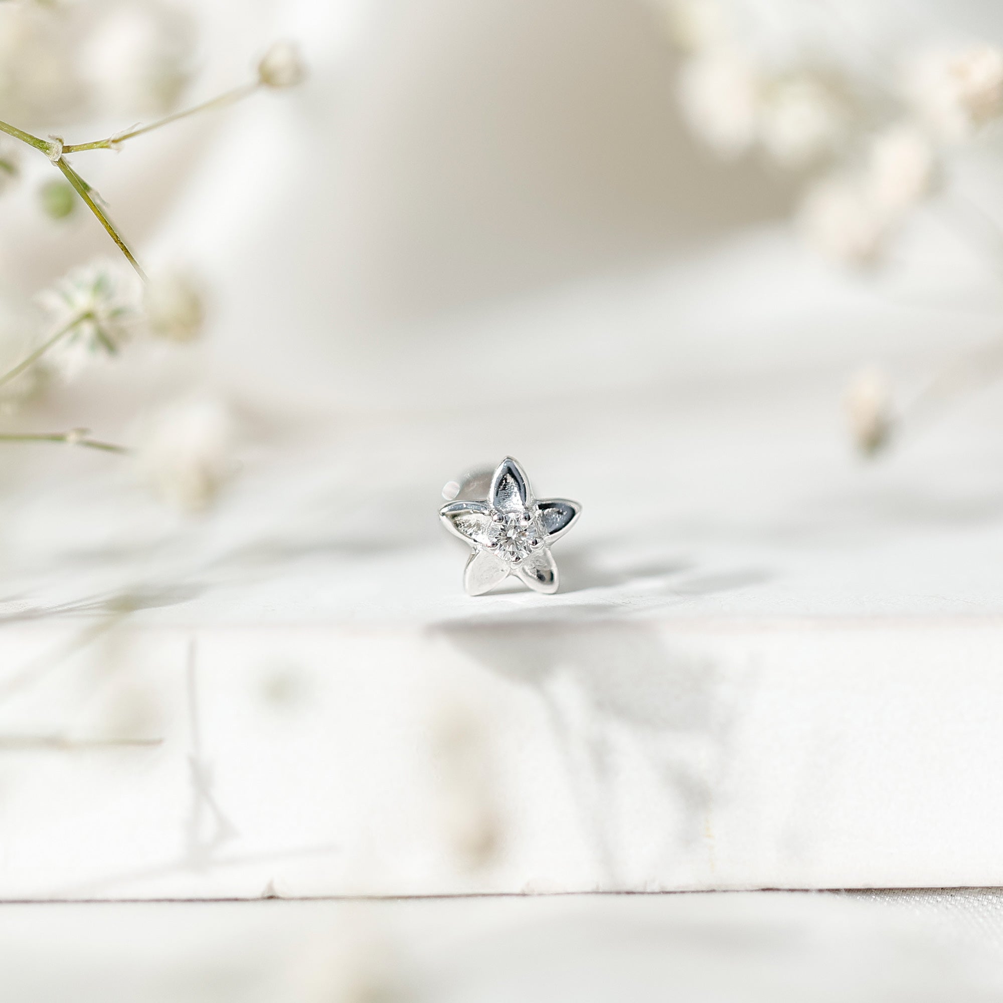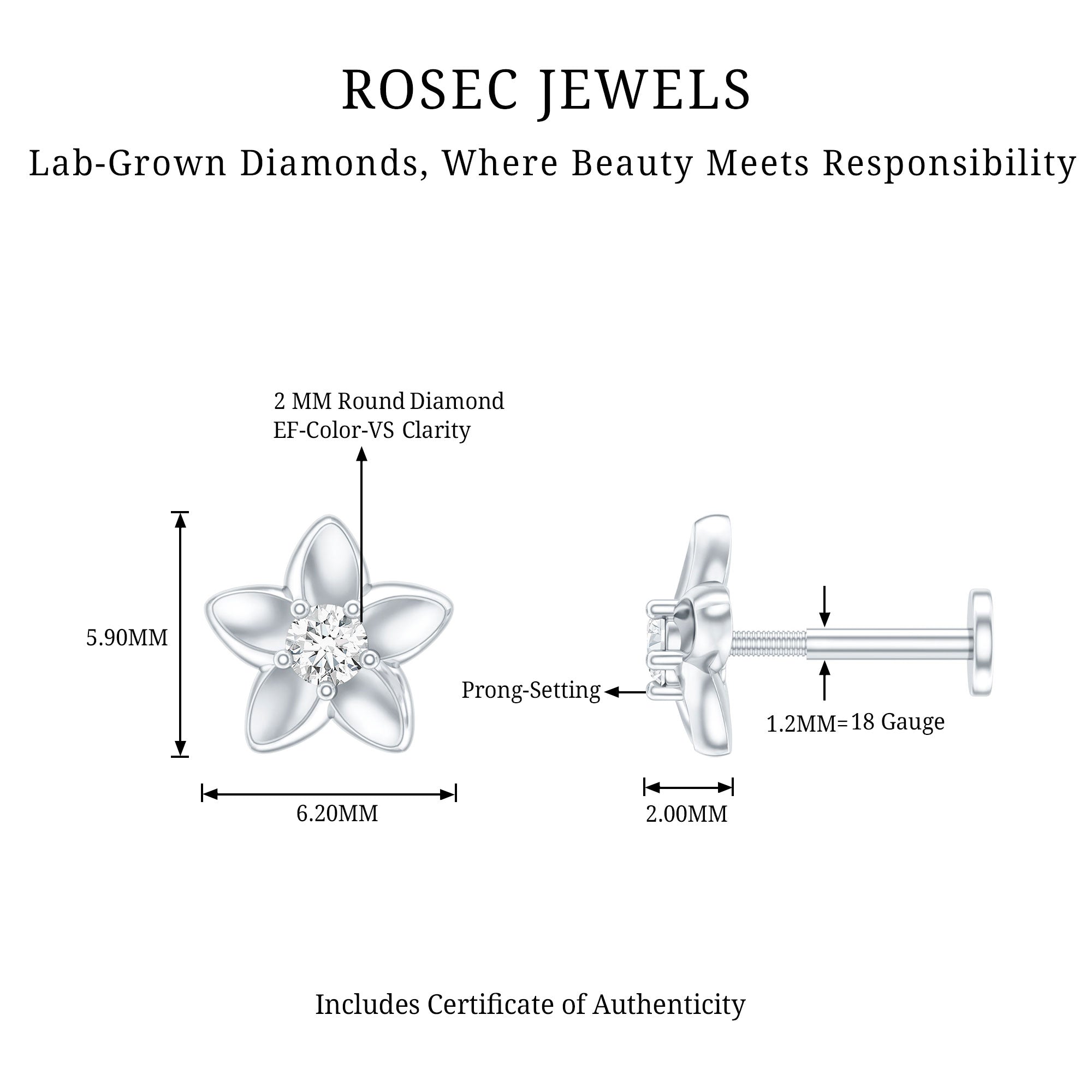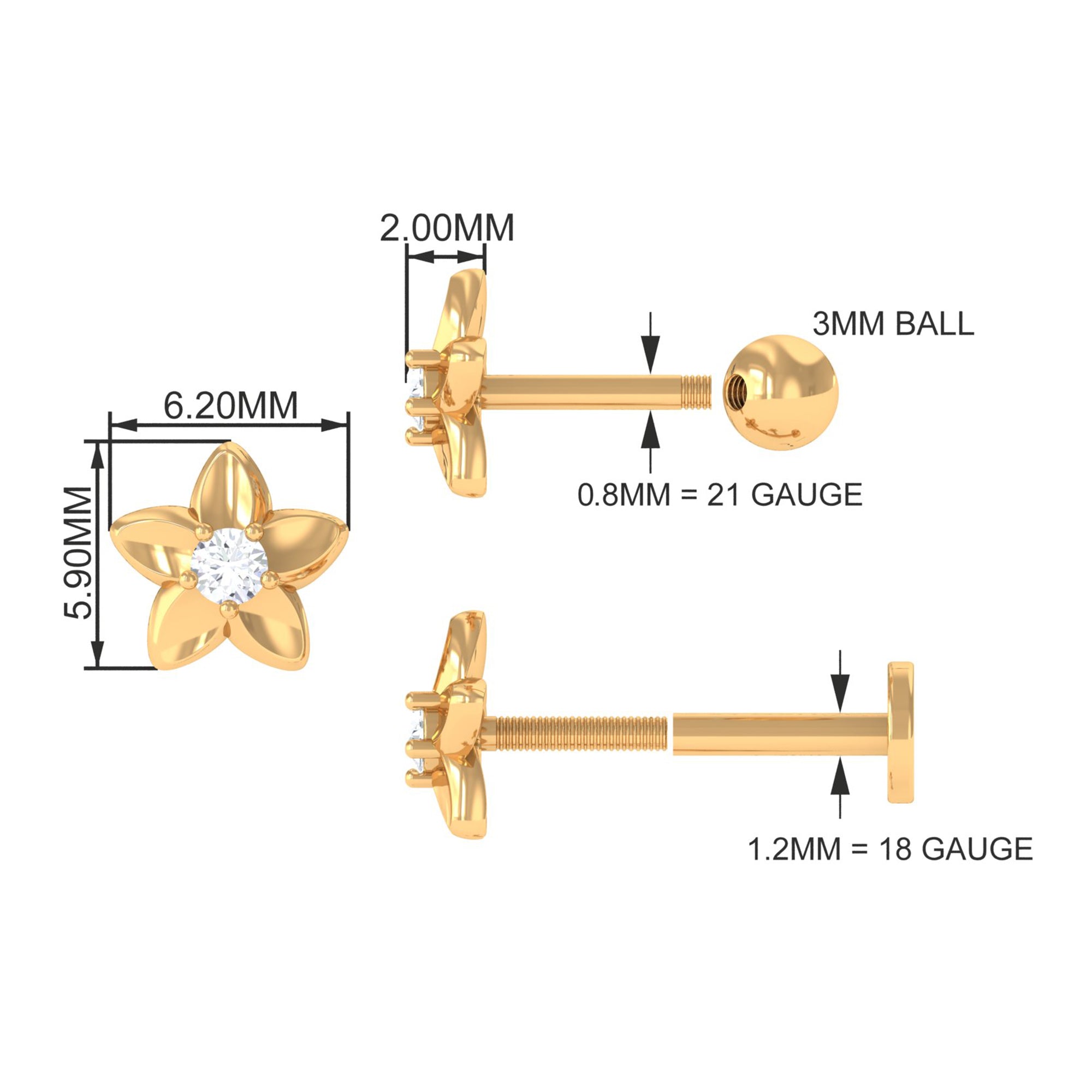 Inspired by nature – introducing the Diamond Earring! Breathtaking Round Diamond secured by Prong Setting studded on a floral design, which possesses a feminine glamour. This bling is all about that snug fit in your Cartilage, Helix, or Upper Lobe Piercing, the simple flat back closure will keep it locked in place.Whether you are brunching with the crew or spicing up date night, our Floral Earring is your ride-or-die accessory. Get ready to slay, and let the leaves do the talking!Make your special ones day extra-lit with this stunning Piercing Earring. Its the ultimate gift for birthdays or anniversaries.