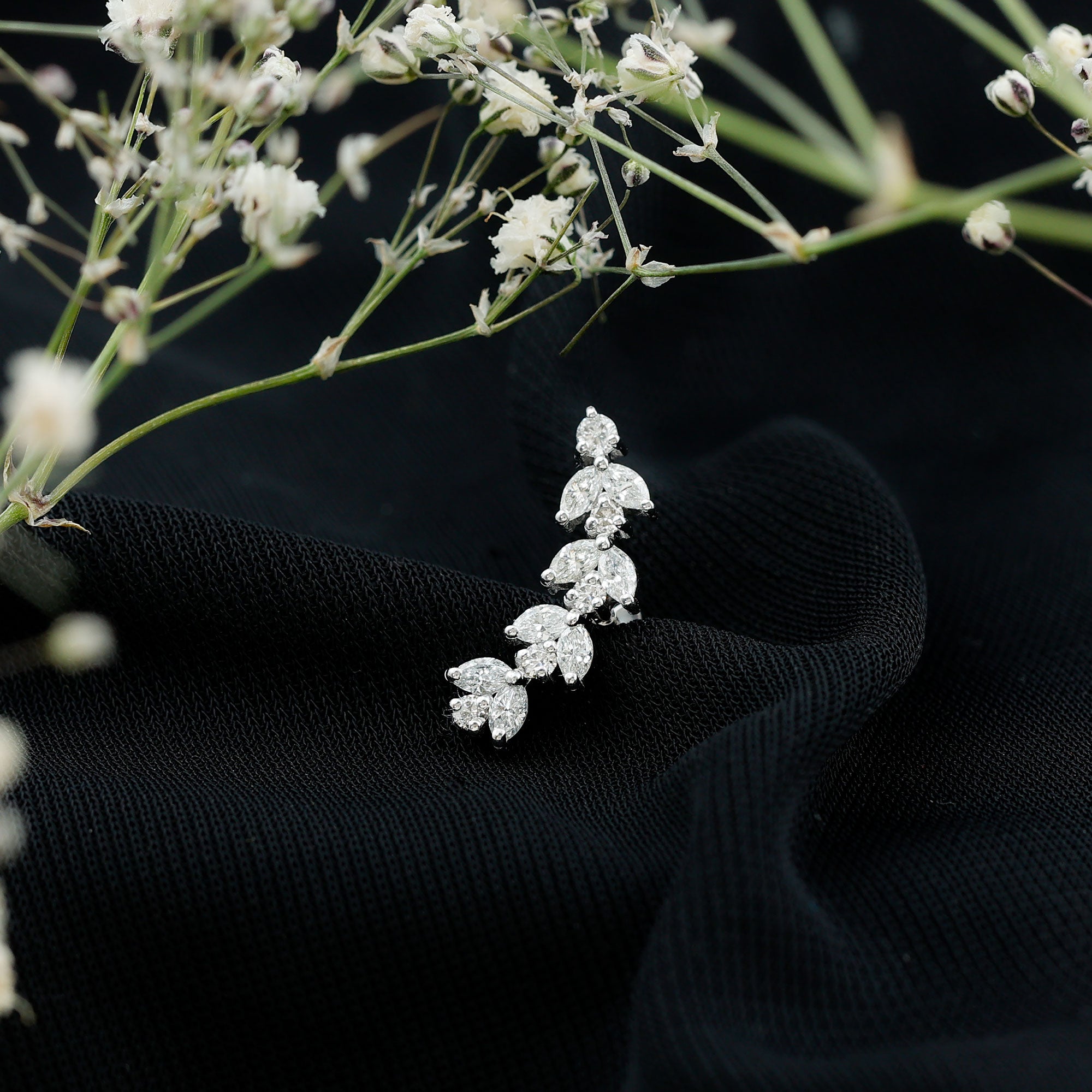 This cluster of leaves emits a divine glow. This leaf crawler earring features marquise and round diamonds secured in prong set. Secures comfortably with a flat back closure.