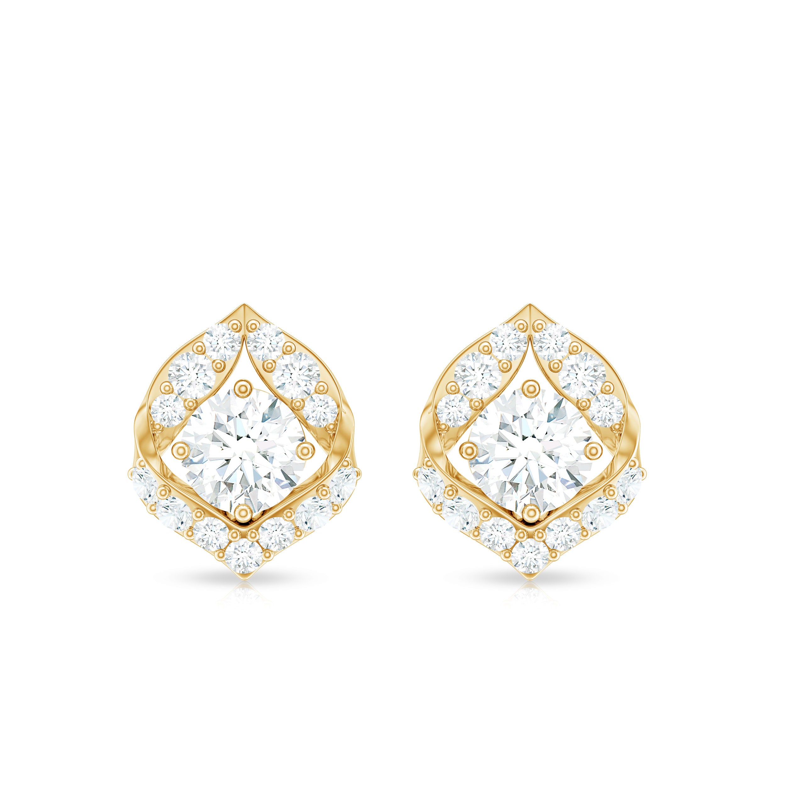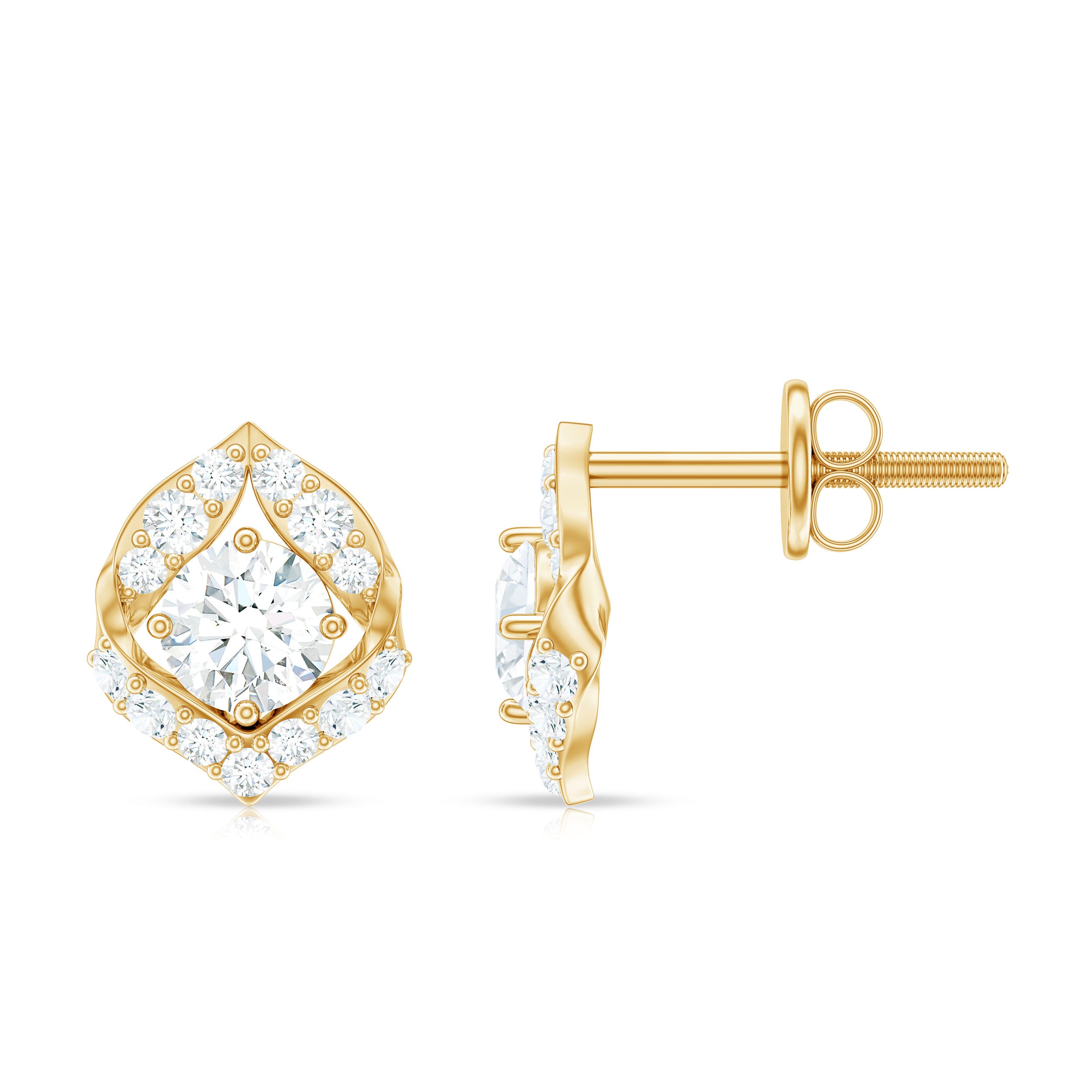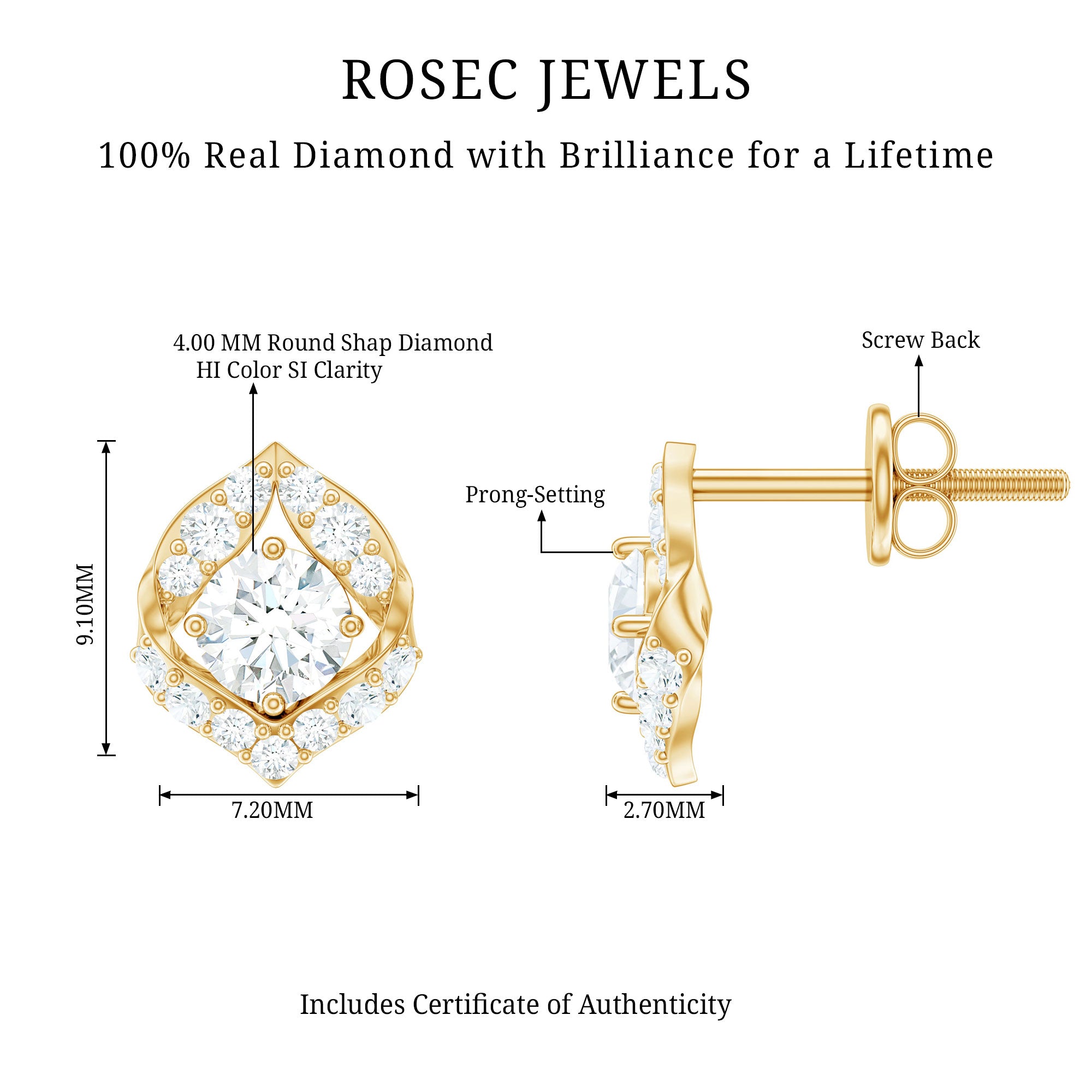 Turn heads effortlessly with these stunning Leaf Earrings, designed to bring a touch of elegance and charm to every outfit. Each earring features a delicate Leaf motif, perfectly crafted to capture the graceful curves of nature. At the center of the design, a sparkling 4 mm Round Shape Diamond catches the light beautifully, surrounded by tiny, shimmering stones that add just the right amount of sparkle. The Screw Back Closure ensures a secure and comfortable fit, making them perfect for all-day wear, whether you are headed to a brunch, a date night or a special event. Crafted with attention to detail, these Diamond Stud Earrings come in a sleek jewelry box, making them a thoughtful gift for someone you love or a chic treat for yourself. Celebrate your love for nature and shine with elegance wherever you go. Perfect for gifting or elevating your everyday look, these Diamond Studs are destined to become a treasured favorite in any jewelry collection.