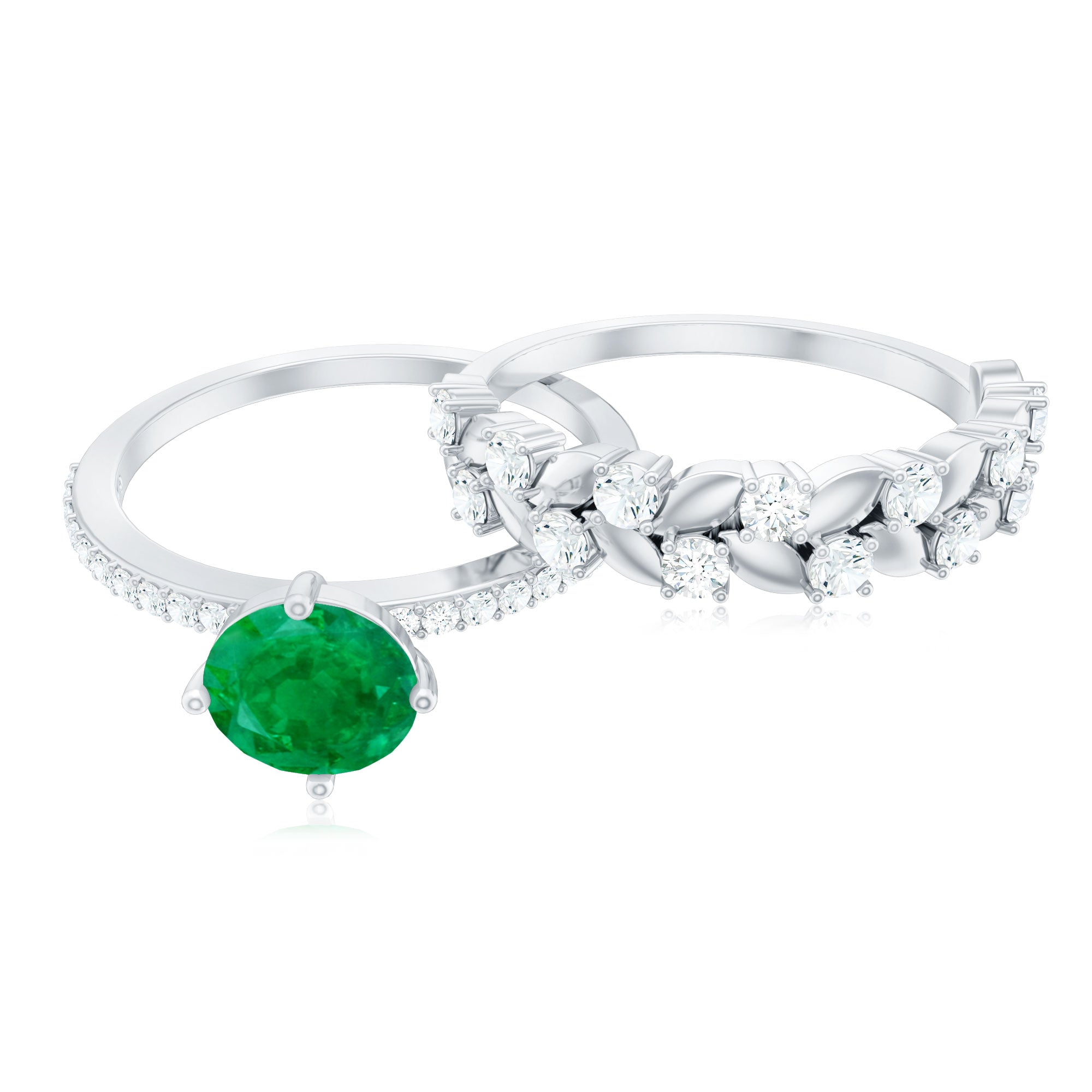 Nature Inspired Emerald Moissanite Wedding Bridal Ring Set of 2