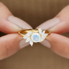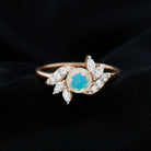 A ring that feels like it was plucked from an enchanted forest, this Opal and Diamond Engagement Ring is a breath of fresh air for the free-spirited bride. At its center is a luminous 6 mm Round Shape Ethiopian Opal set in Claw Setting, glowing with rainbow hues that are mysterious and utterly mesmerizing. On either side, delicate leaf motifs gently wrap around the center stone, each one adorned with sparkling Round and Marquise Shape Diamond stones that bring the design to life. This Leaf Engagement Ring is a perfect blend of nature inspired beauty and timeless sparkle, crafted for those who see love as an adventure rooted in nature and magic. Whimsical yet elegant, this Opal Engagement Ring is ideal for the one who dances to her own rhythm and believes in fairytales with a twist. Arrives in a gorgeous jewelry box, ready to gift or cherish and comes in a range of sizes for the perfect fit. This Opal Ring for Women symbolizes forever and captures the beauty of the journey.