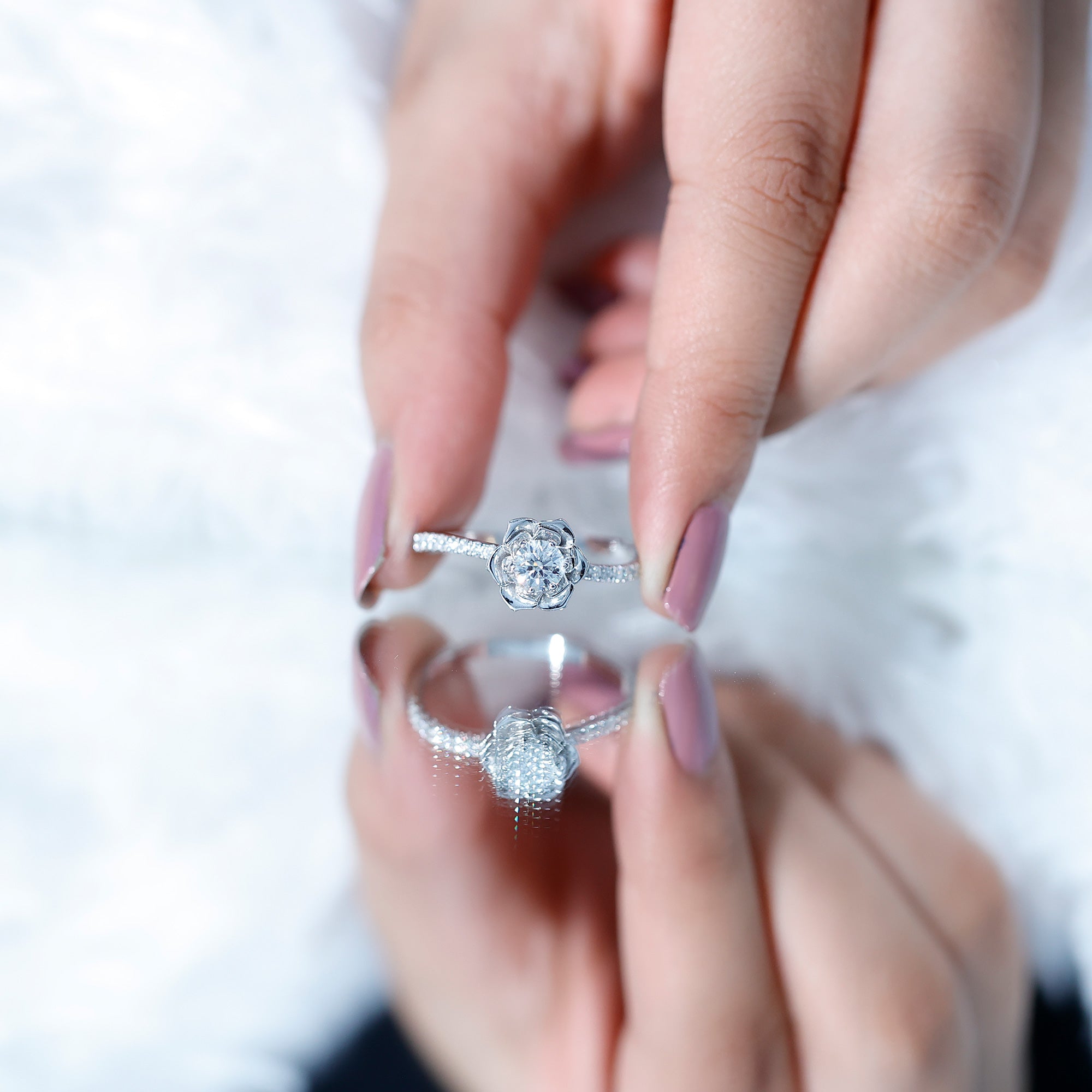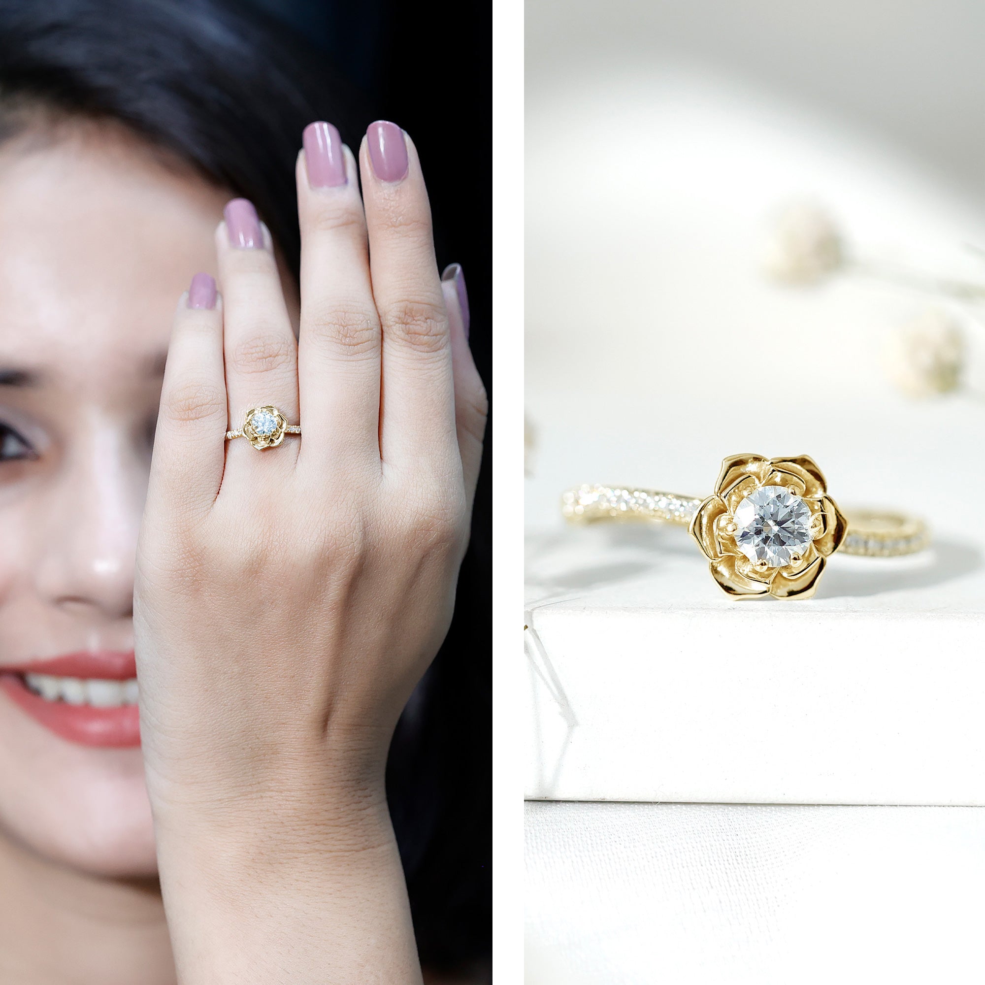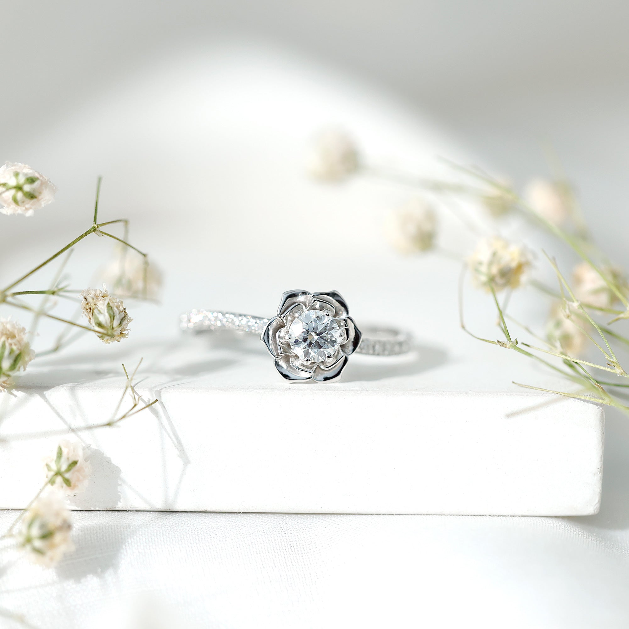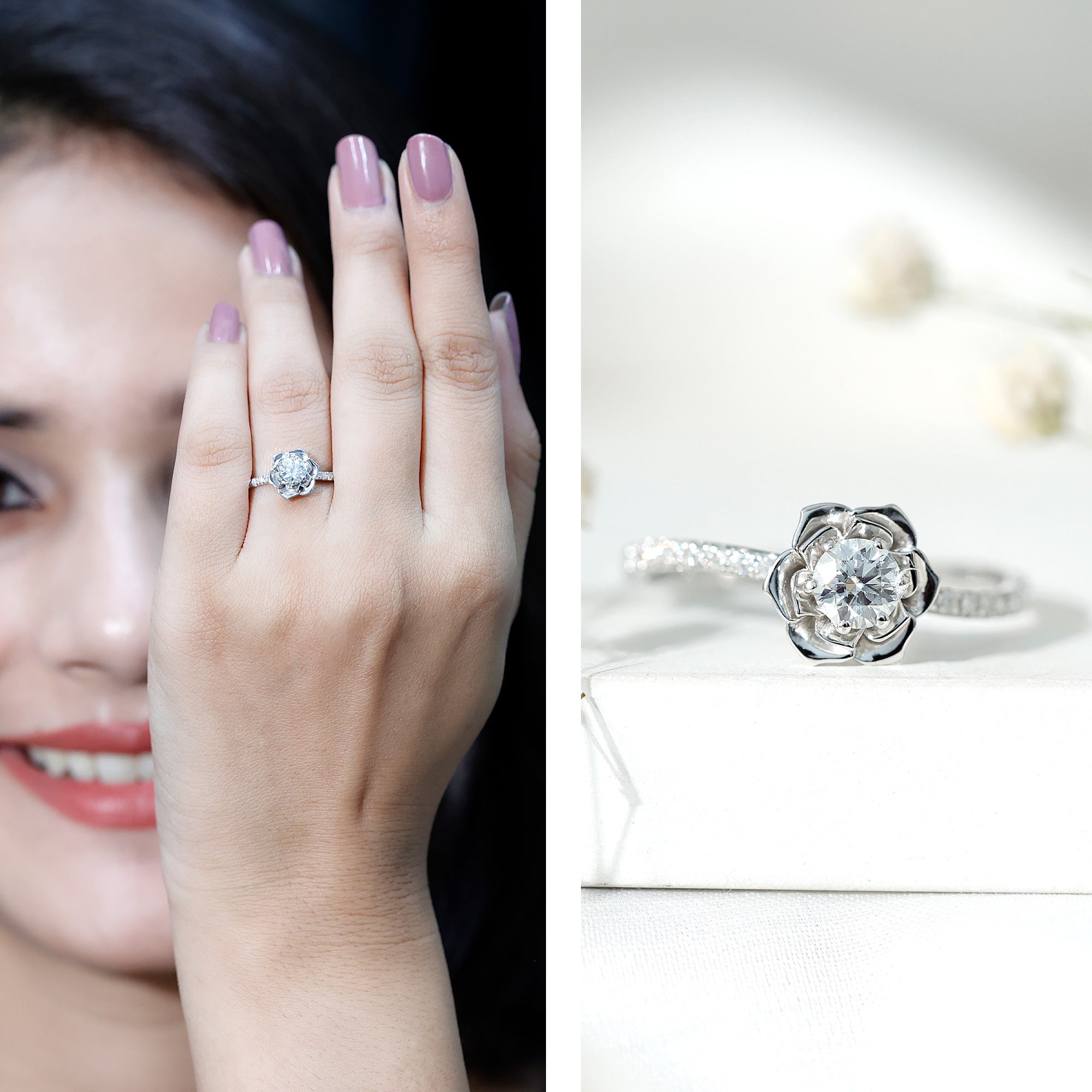 Nature Inspired Floral Engagement Ring with Lab Grown Diamond