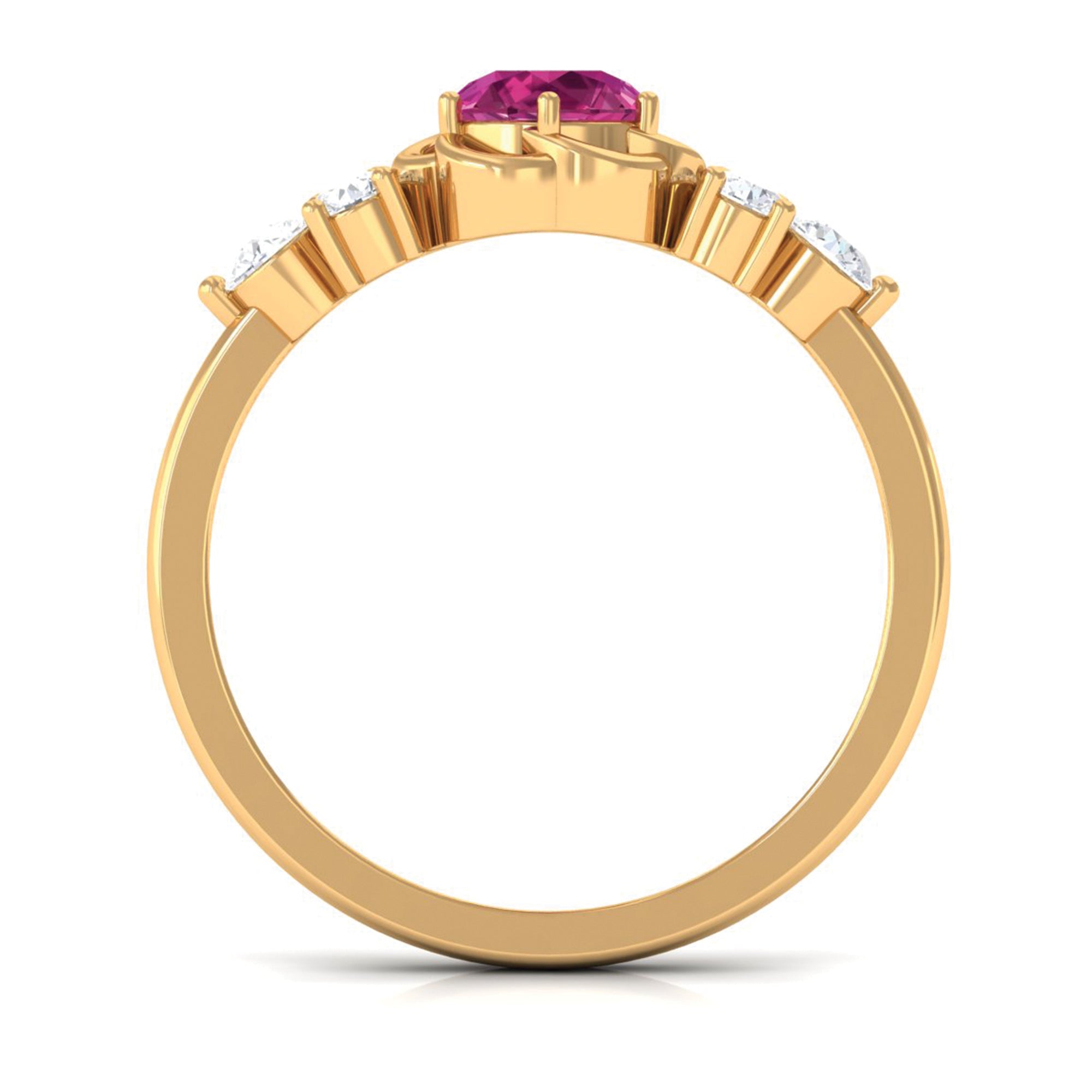 Nature Inspired Floral Ring with Pink Tourmaline and Diamond