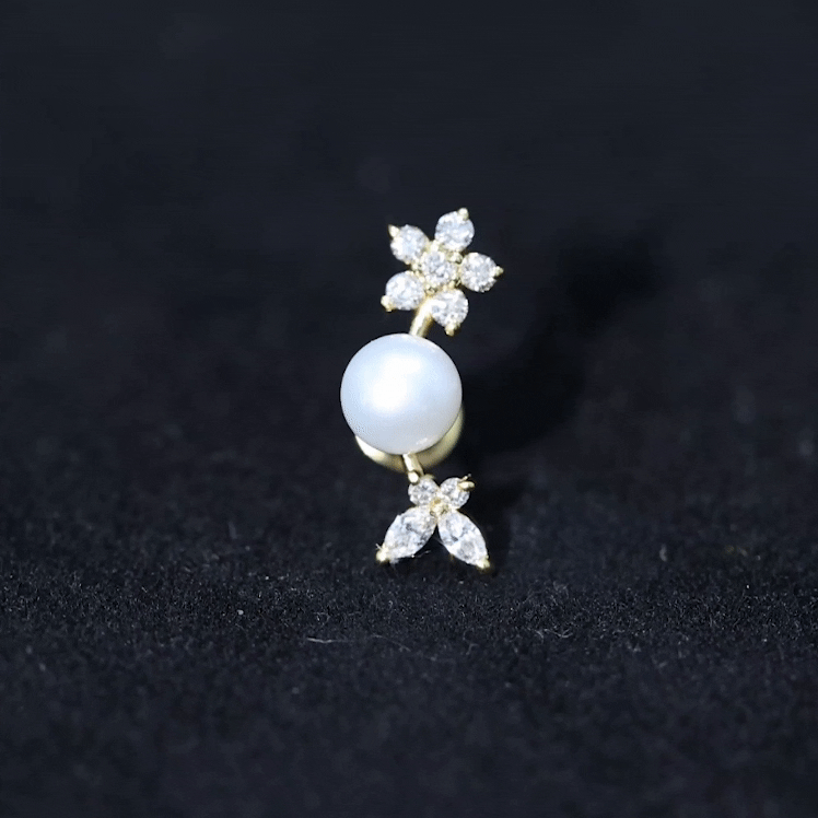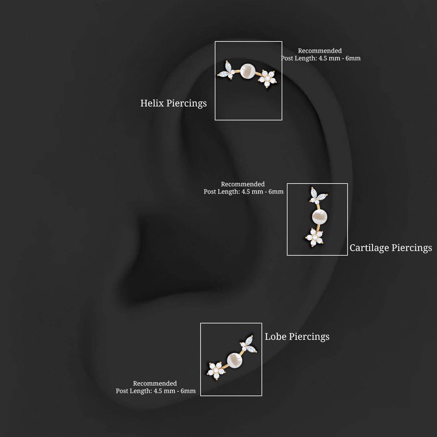 Make a stunning impression with this Climber Earring, boasting an elegant design that is sure to turn heads. Composed of Gold and adorned with a Round Shape Freshwater Pearl and Round Cut Moissanites set in Prong Setting, this Cartilage Earring is perfect for adding a touch of glamour to your Helix Piercing. You can also wear this versatile Body Jewelry as a Cartilage, Helix, or Conch Piercing.